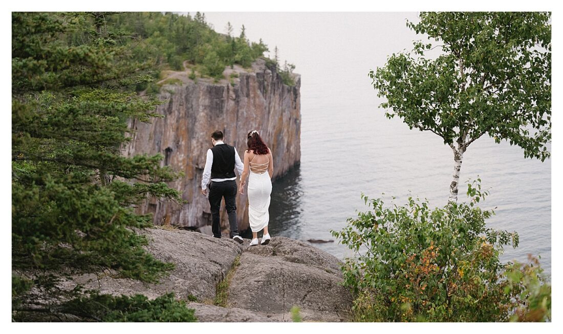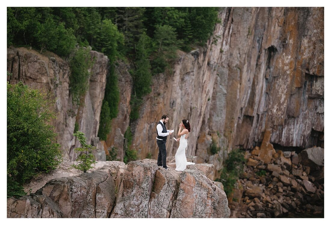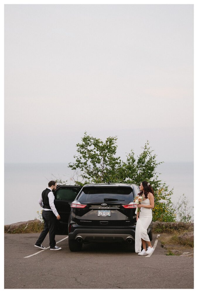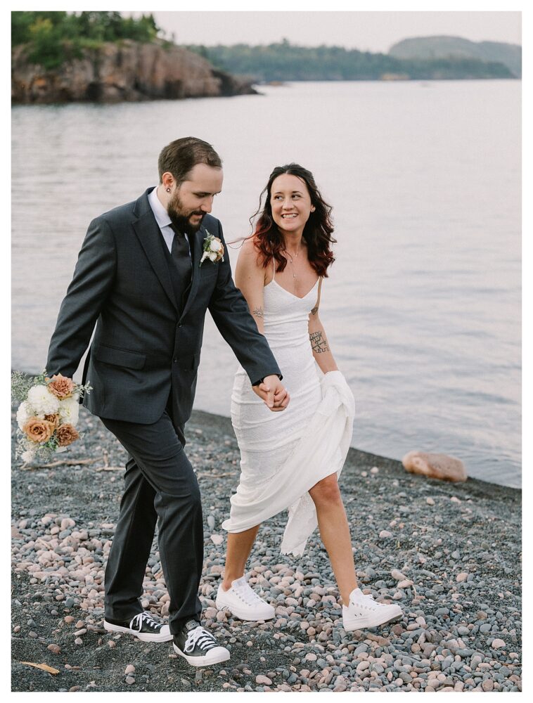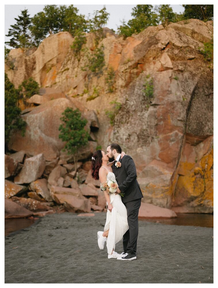 Alexis and Andrew’s Mn North Shore elopement started off at the most adorable tiny home tucked away in the woods along the hillside of Lake Superior… hence the name Havens Northwoods Hillside Tiny Home! Minnesota’s North Shore is home to many cabins, lodges, campsites and hotels, but The Havens offer some of the greatest options for lodging and photo backdrops for intimate weddings. Alexis had professional hair and makeup in the tiny home while Andrew enjoyed some nature and relaxation. They shared the sweetest first look in front of their family members before heading to Black Beach. They officially became husband and wife with their immediate family nearby, but saved their personal vows for some alone-time along the epic north shore cliffs overlooking Lake Superior. It was so peaceful, relaxing and truly a pleasure to document.