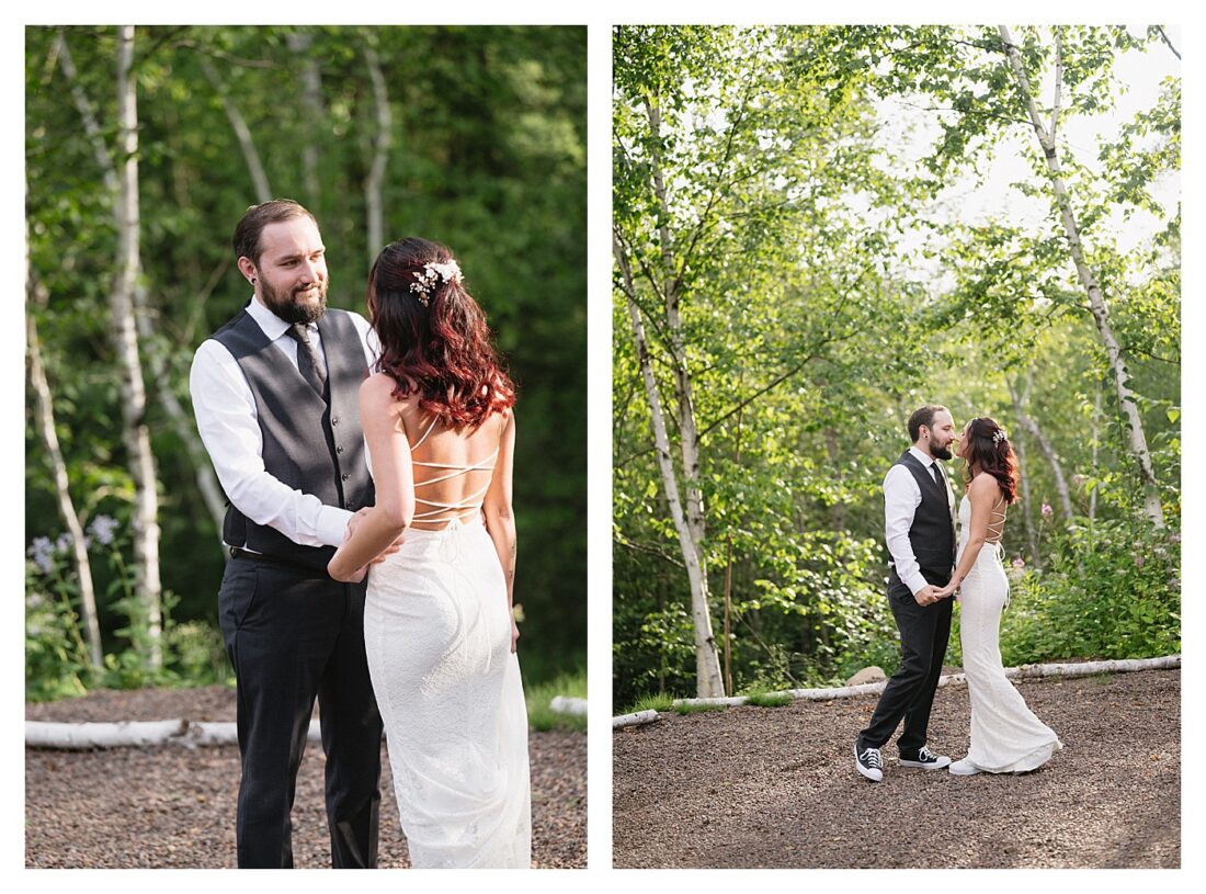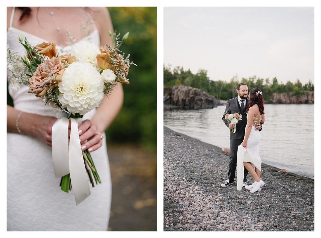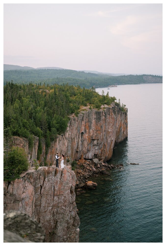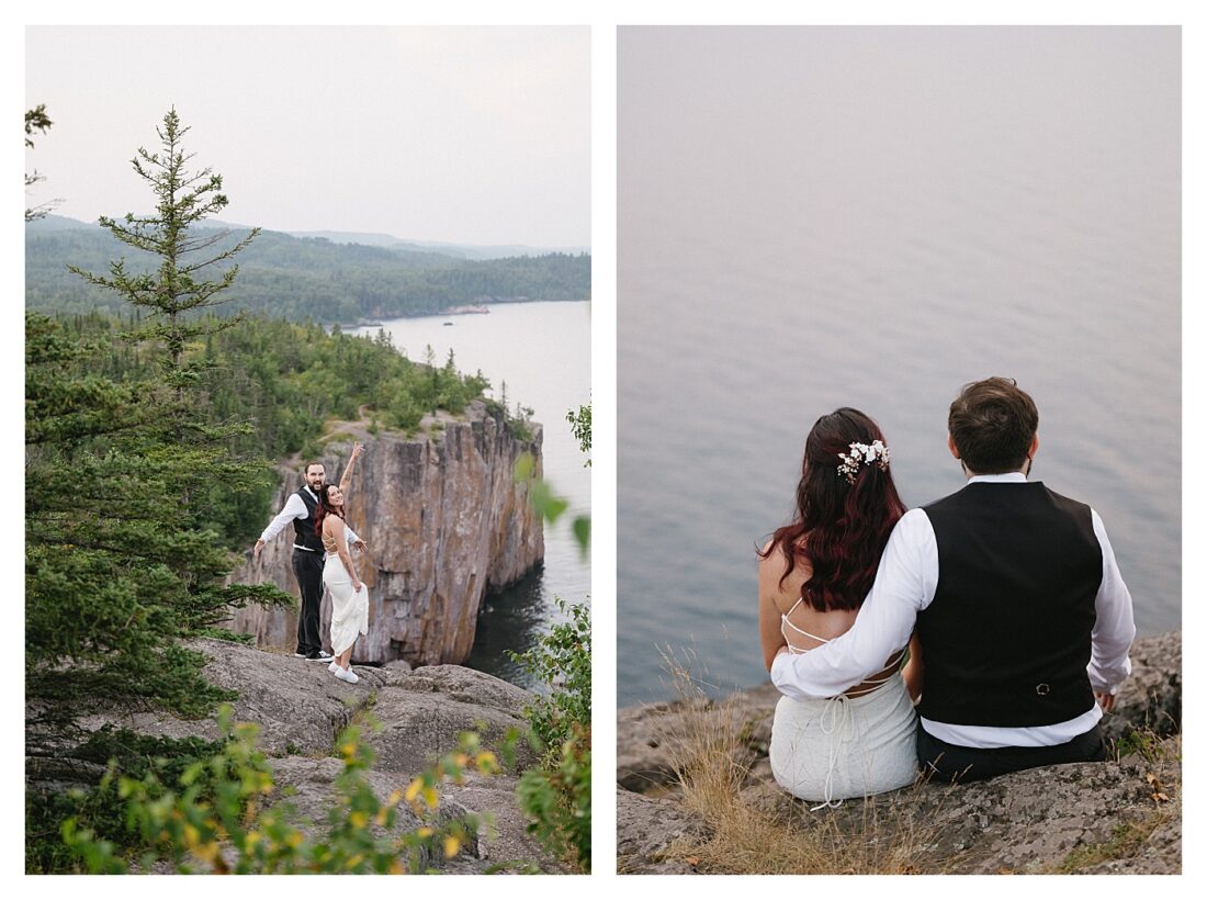 Alexis and Andrew’s Mn North Shore elopement started off at the most adorable tiny home tucked away in the woods along the hillside of Lake Superior… hence the name Havens Northwoods Hillside Tiny Home! Minnesota’s North Shore is home to many cabins, lodges, campsites and hotels, but The Havens offer some of the greatest options for lodging and photo backdrops for intimate weddings. Alexis had professional hair and makeup in the tiny home while Andrew enjoyed some nature and relaxation. They shared the sweetest first look in front of their family members before heading to Black Beach. They officially became husband and wife with their immediate family nearby, but saved their personal vows for some alone-time along the epic north shore cliffs overlooking Lake Superior. It was so peaceful, relaxing and truly a pleasure to document.
