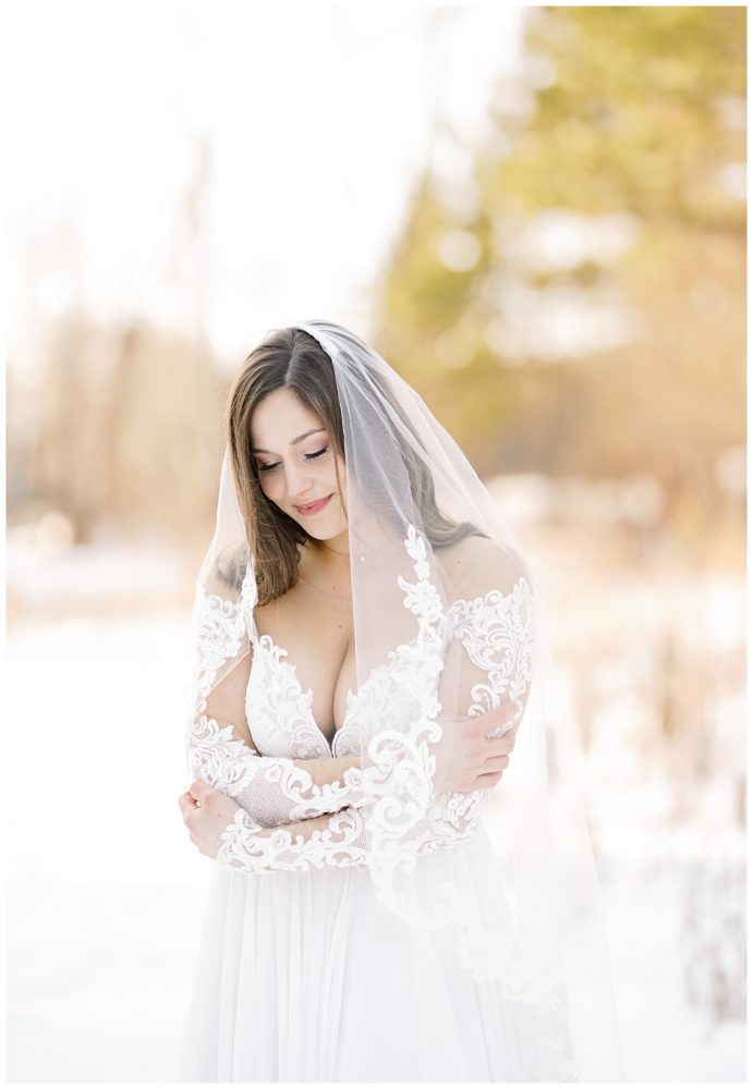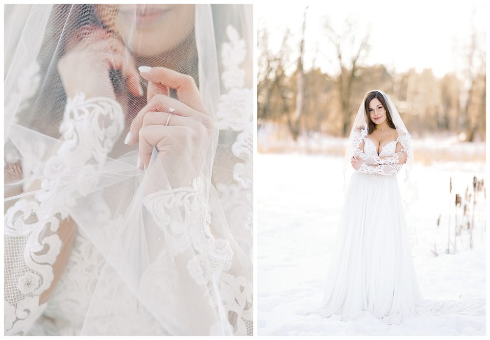 Gabrielle and Jacob braved the below zero winter temps and even did it beautifully. I want to mention how incredibly cold this day was because many couples stress about the unpredictable weather winter throws at us. I have to be real honest… this was sooooo very cold. My camera froze up, we had to keep re-applying chapstick because the bride’s lips would chap up and turn purple, and we did photoshoots in 5 minute increments. The “cool” thing though (see what I did there;) is this winter day was one of the coldest of the year and look what we captured. You can still feel the love, the warm embrace, the quietness of nature, and can even sense the sun trying to break through the crisp chill in the air.