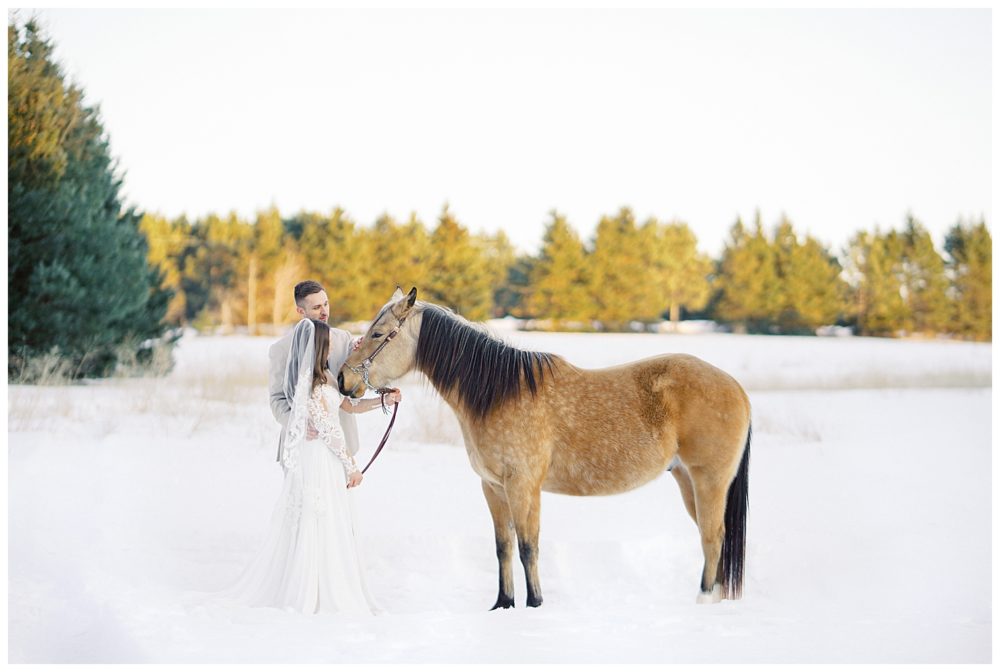 Now for the fun stuff…LOOK at how pretty winter weddings can be. AS SEEN IN MINNESOTA BRIDE, here is Xsperience Photography’s winter wedding editorial with a beautiful buckskin horse.