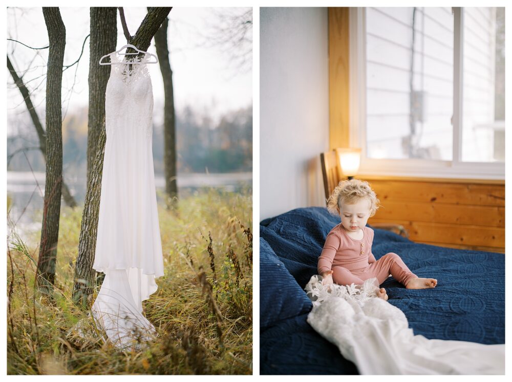 We included Ella (our daughter) by letting her hold onto my dress to look like she was trying it on, she got be included in our first look when she joined us. Instead of flower girls- we did bubble girls and a toddler with a bubble gun worked out perfectly! We had one other flower girl, Elin who I use to nanny for years and she was a big part of my life. Elins, twin brother William was our ring security who has also been in my life forever. All three of them did so good that day and I am truly impressed with them!