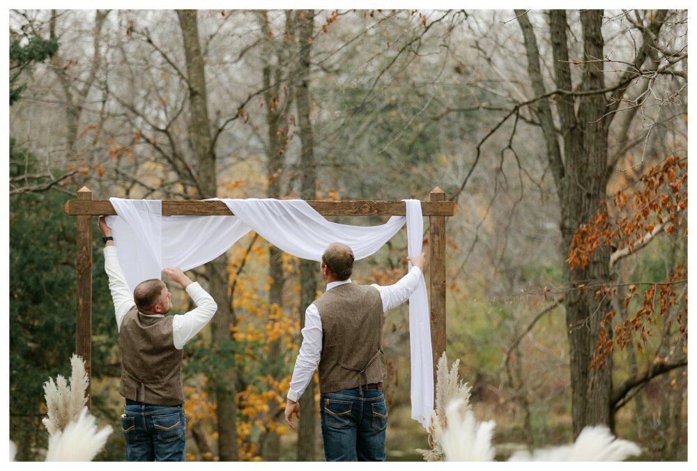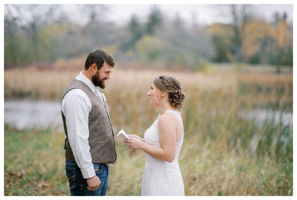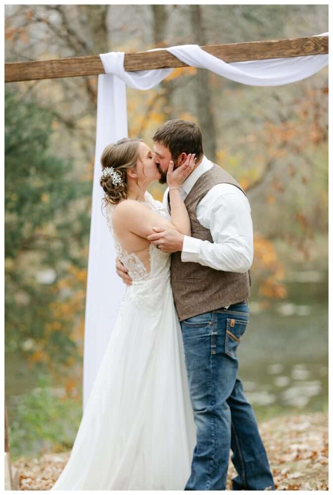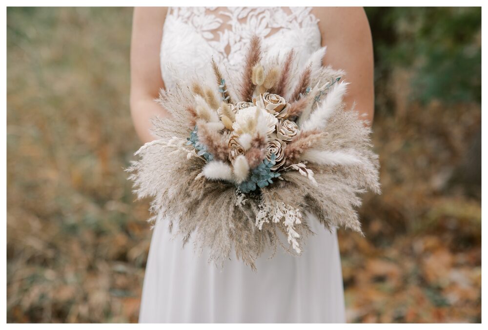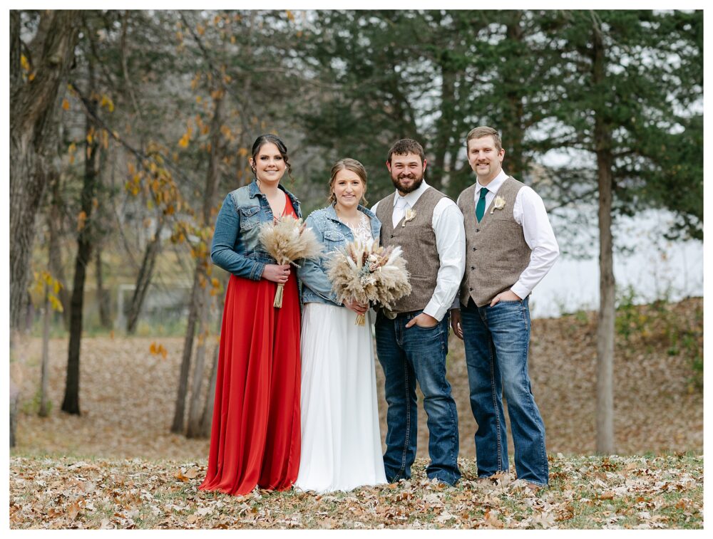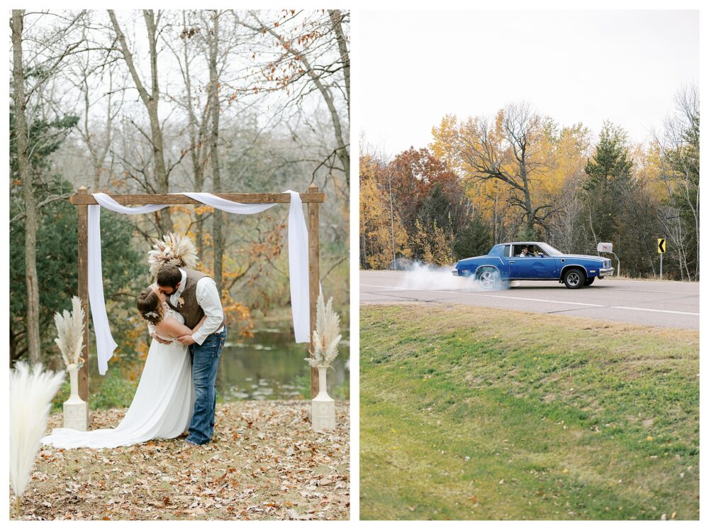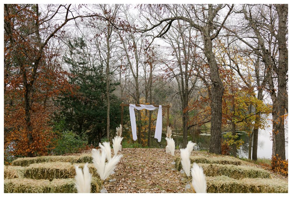 The backyard ceremony was held on a brisk October Fall day. October in Minnesota can feel like a warm sunshiny day Or a bitter cold winter blizzard, so while there was a chill in the air, it turned out to be absolutely perfect.