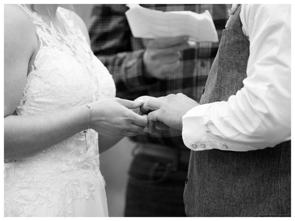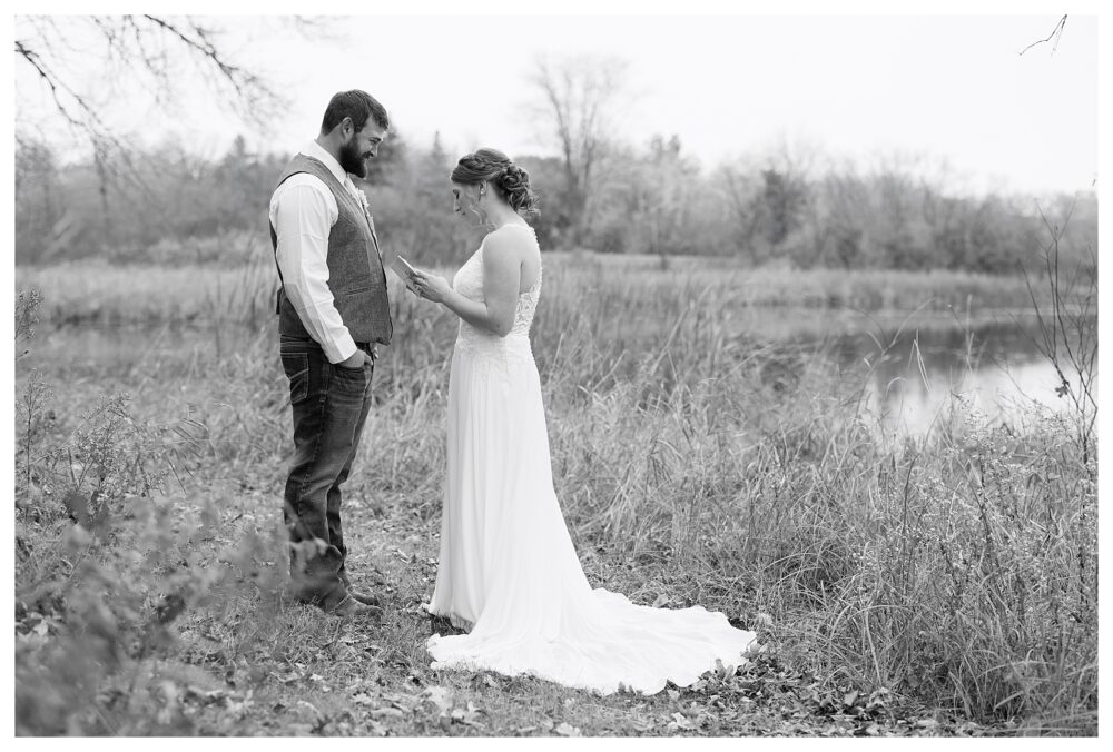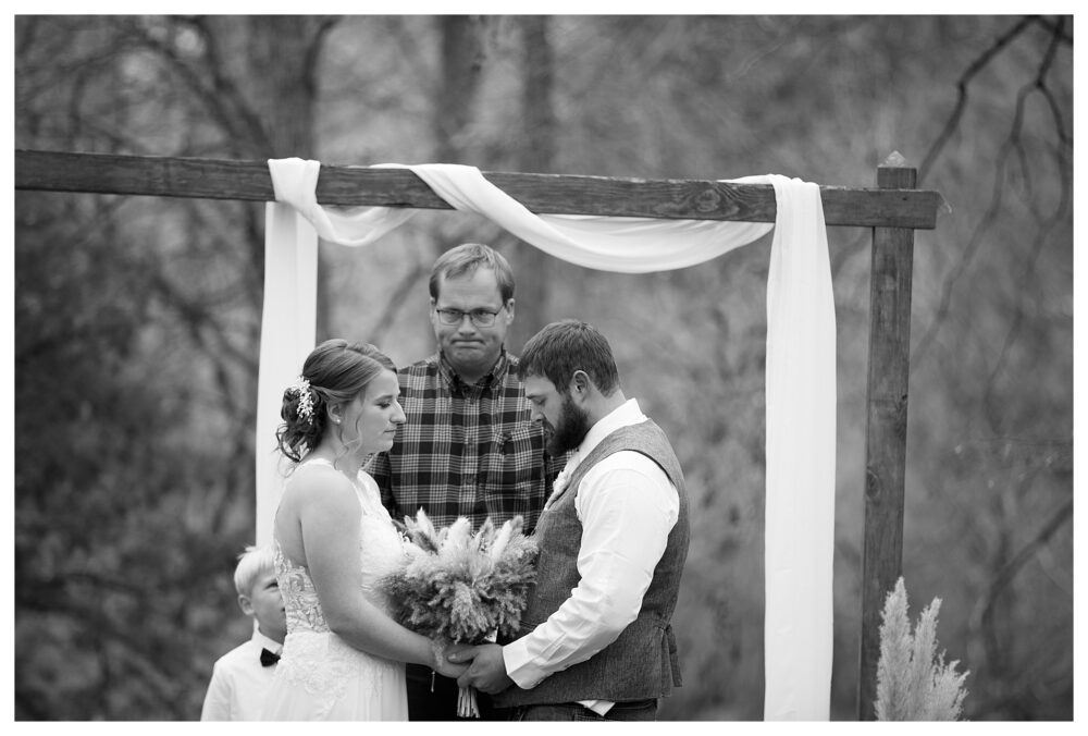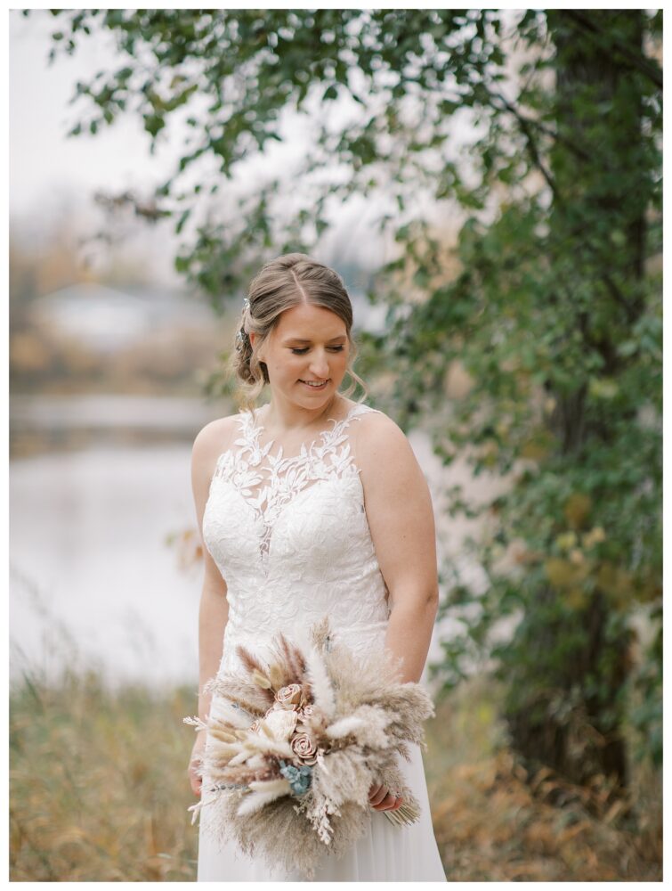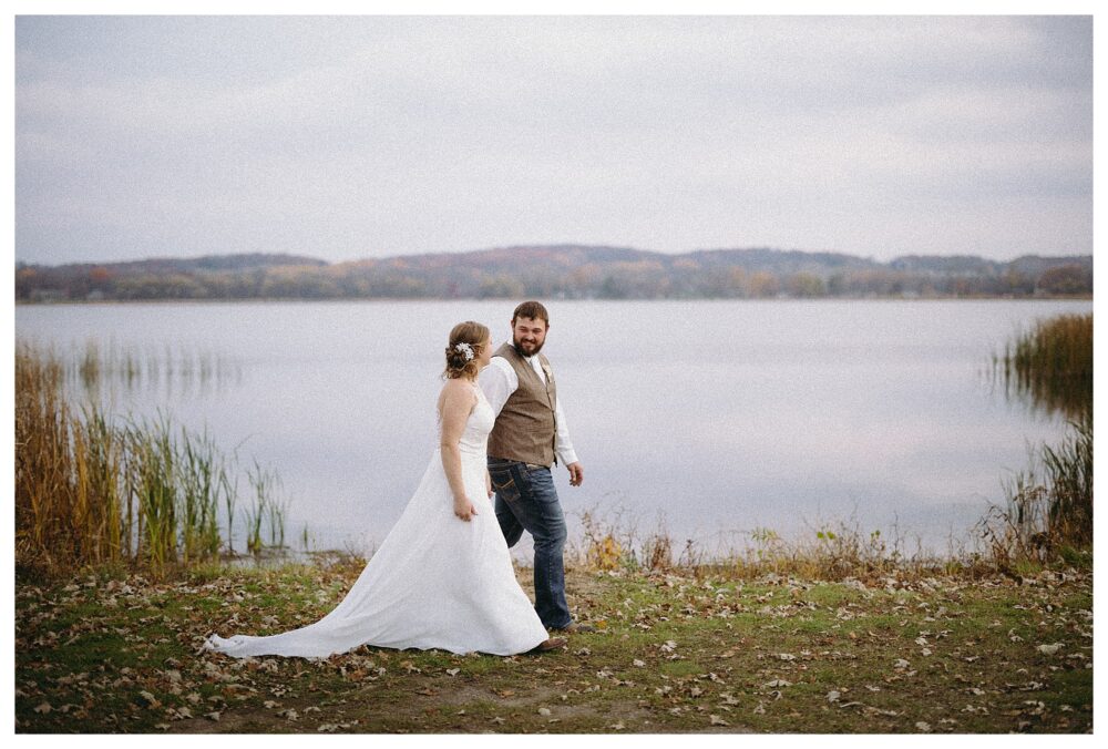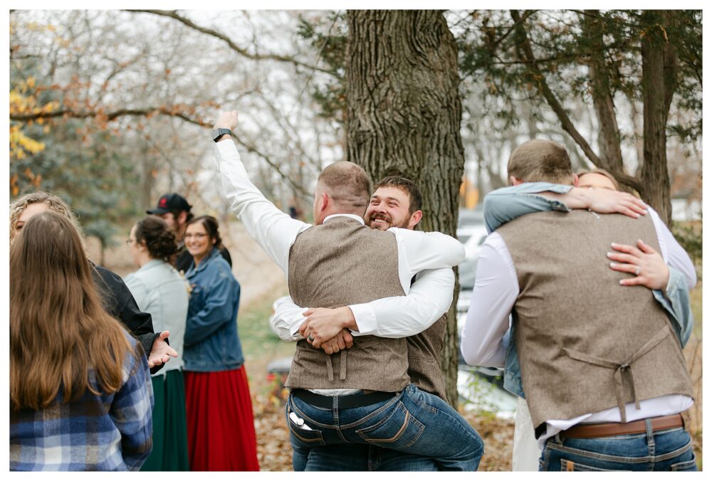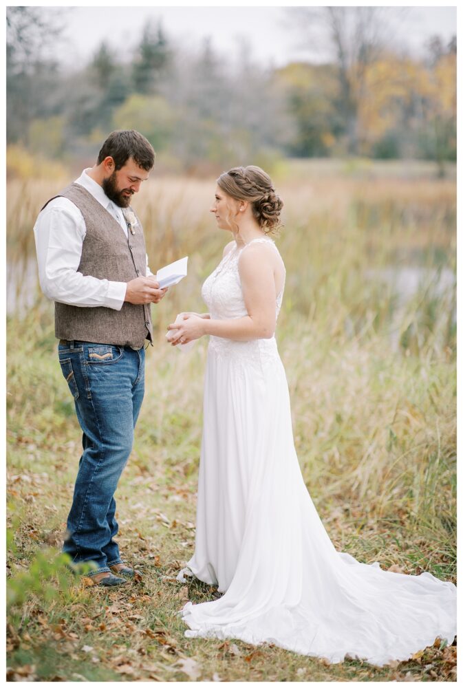 The backyard ceremony was held on a brisk October Fall day. October in Minnesota can feel like a warm sunshiny day Or a bitter cold winter blizzard, so while there was a chill in the air, it turned out to be absolutely perfect.