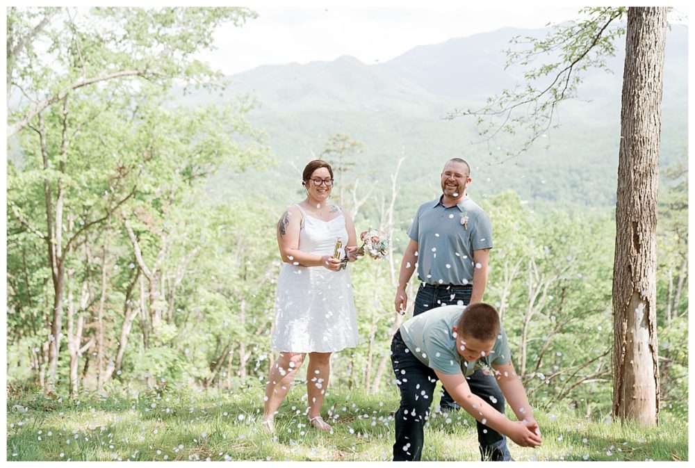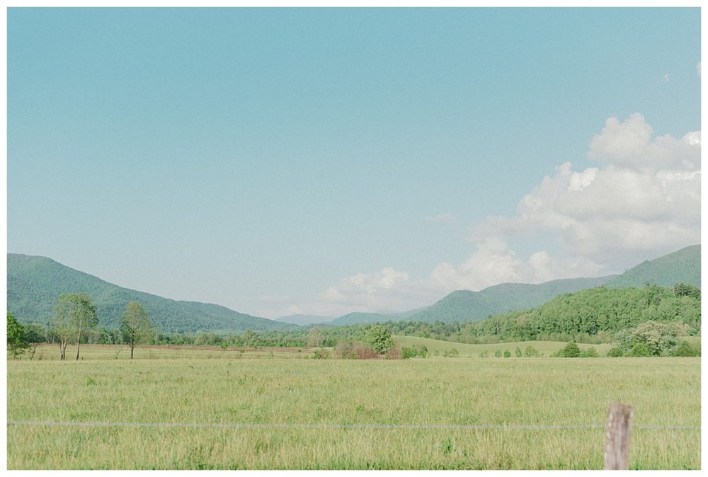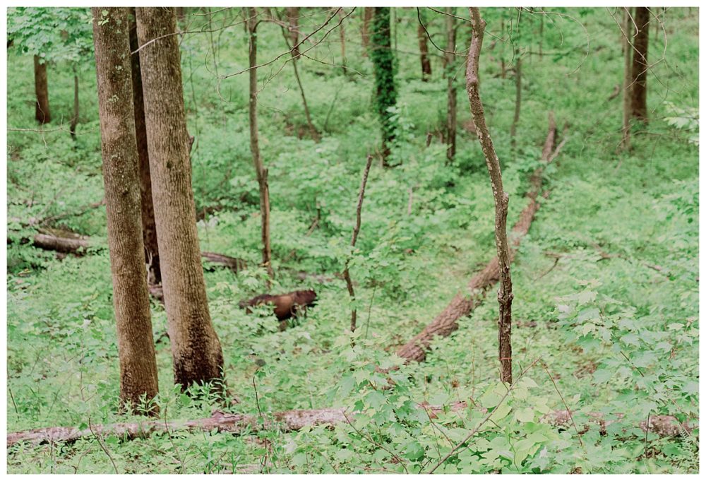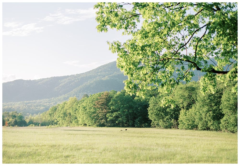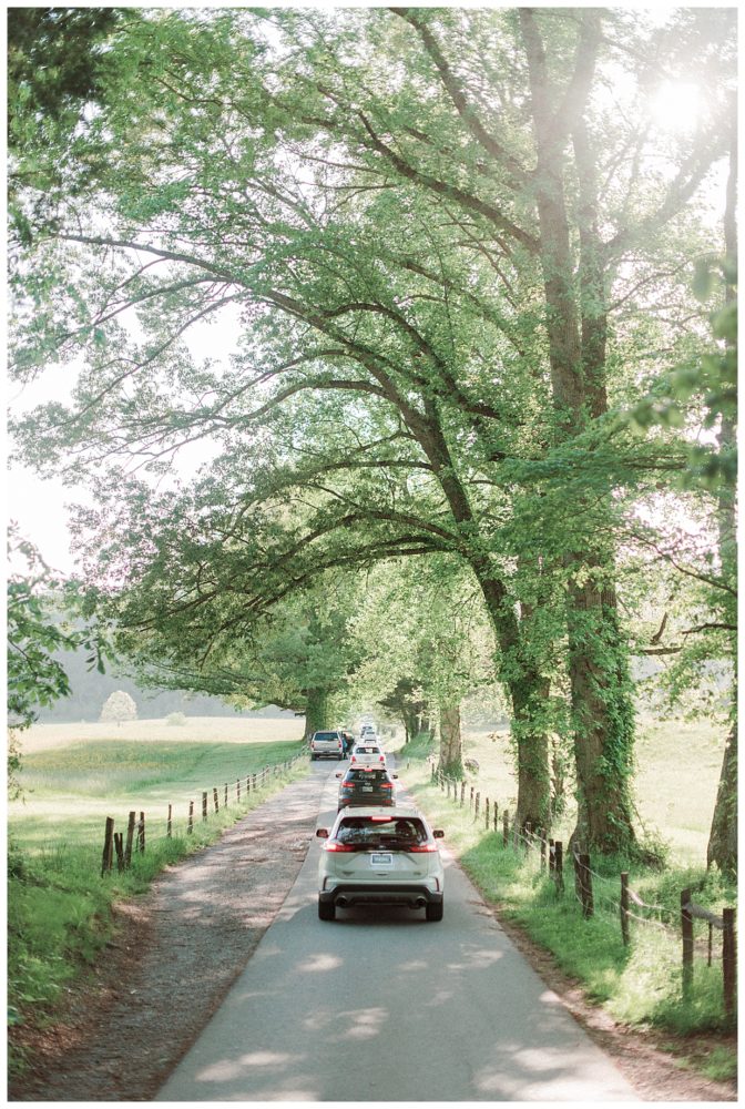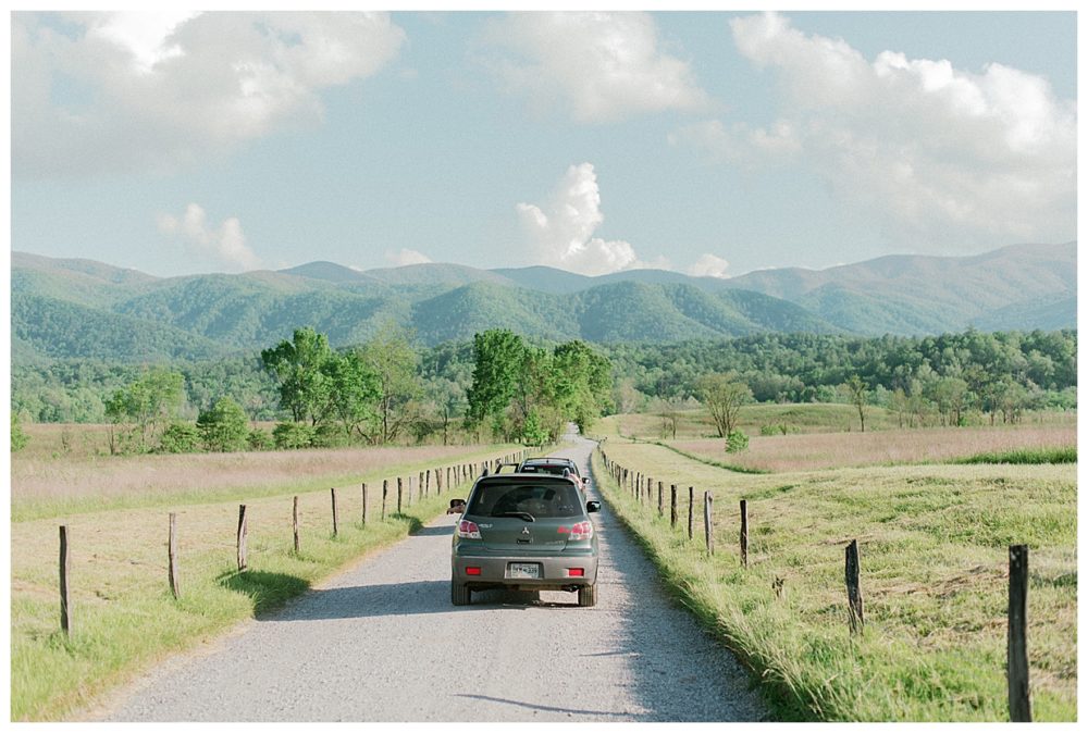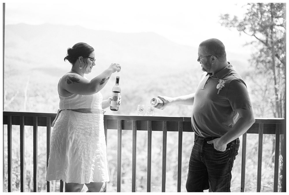 Our original plan of exchanging vows at the overlook pass and hiking to Rainbow Falls was NOT going to happen…unless we wanted to drive in stand-still traffic, pray for a parking spot, and lose the intimacy to dozens of bystanders;) Luckily our cabin, Lookout Loft, is the ideal setting for an intimate outdoor elopement with it’s clean, modern look indoors, and perfect mountain views outdoors!! We moved up the time (a perk to bringing your own travel wedding photographer) and embraced Plan B. After exchanging vows, sampling some Gatlinburg wine and moonshine, and attempting an earth-friendly confetti popper, we hopped in the car and headed on a scenic adventure through Cades Cove. When the opportunity presented itself we had Aidin DJ their first dance song via iPhone and gave the spectators something sweet to look at (aside from the bears;)