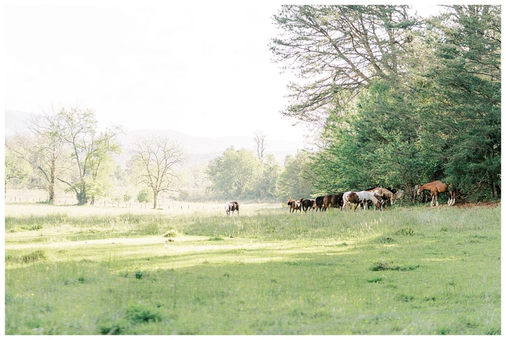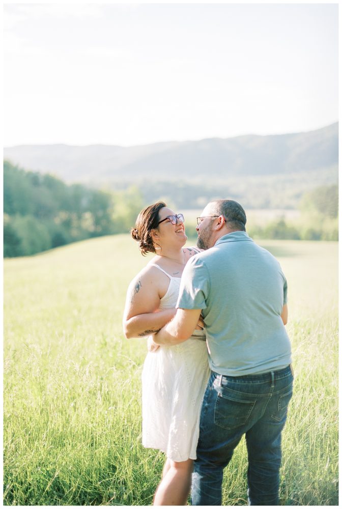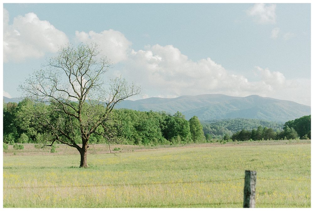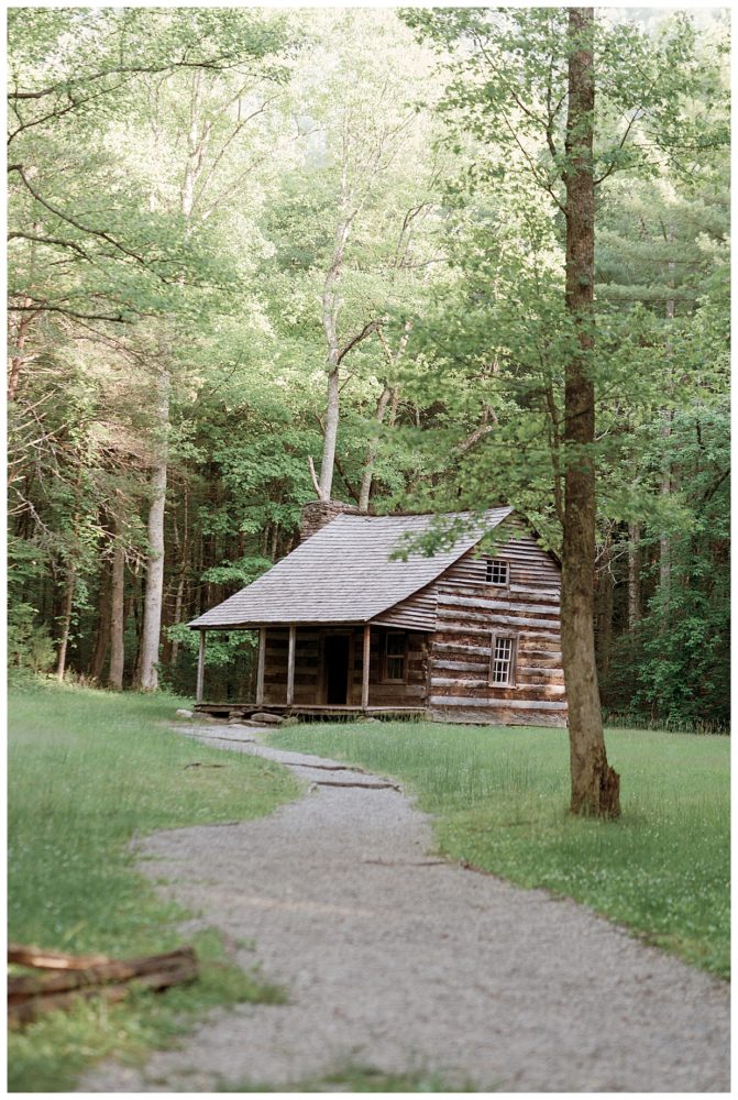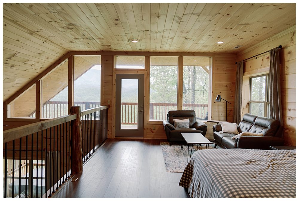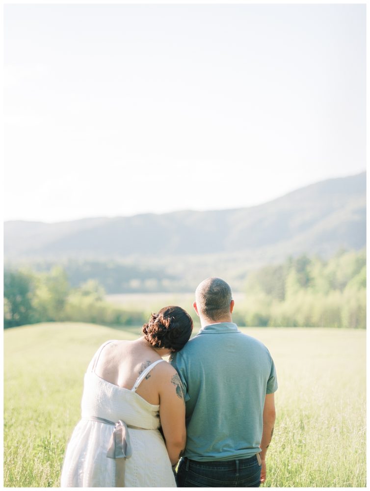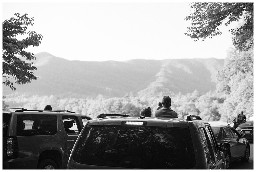 Our original plan of exchanging vows at the overlook pass and hiking to Rainbow Falls was NOT going to happen…unless we wanted to drive in stand-still traffic, pray for a parking spot, and lose the intimacy to dozens of bystanders;) Luckily our cabin, Lookout Loft, is the ideal setting for an intimate outdoor elopement with it’s clean, modern look indoors, and perfect mountain views outdoors!! We moved up the time (a perk to bringing your own travel wedding photographer) and embraced Plan B. After exchanging vows, sampling some Gatlinburg wine and moonshine, and attempting an earth-friendly confetti popper, we hopped in the car and headed on a scenic adventure through Cades Cove. When the opportunity presented itself we had Aidin DJ their first dance song via iPhone and gave the spectators something sweet to look at (aside from the bears;)