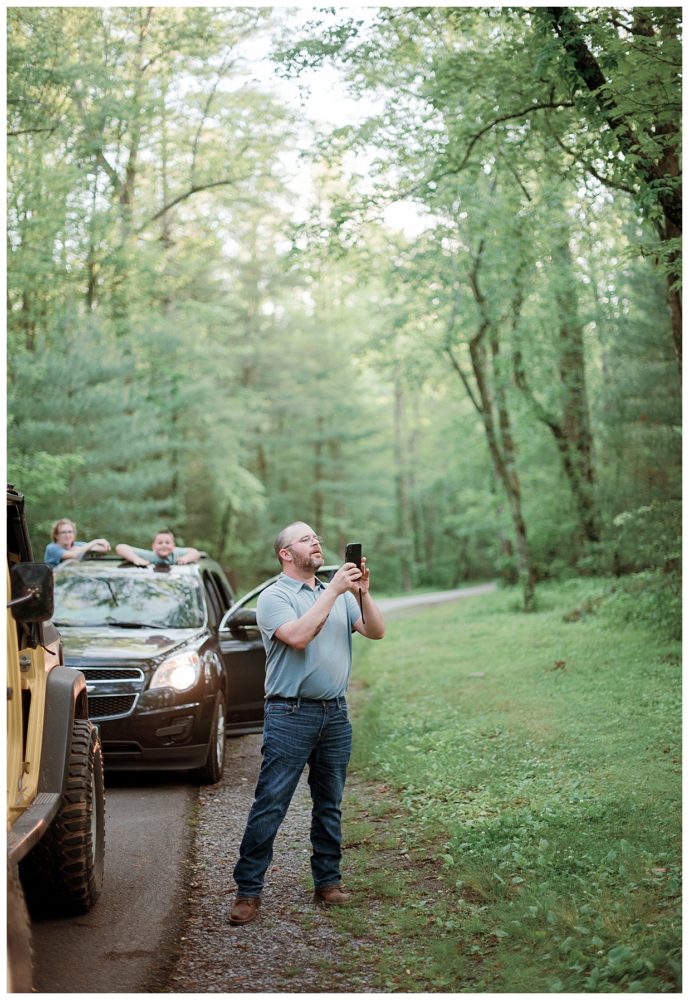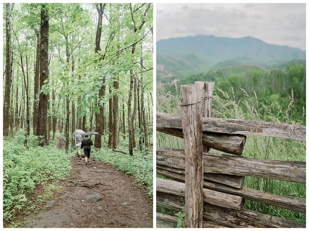 The first evening I took the kids out on a hike to scout locations. I figured Jason and Kristine could use a little alone time since their road-trip from Minnesota was shared with 9 year old son, Aidin. We headed to Rainbow Falls Trailhead and the Pigeon Forge/Gatlinburg overlook pass. The views were gorgeous!! The Smoky Mountains have this blue hazy look and rolling fog that shows up as quick as it disappears.