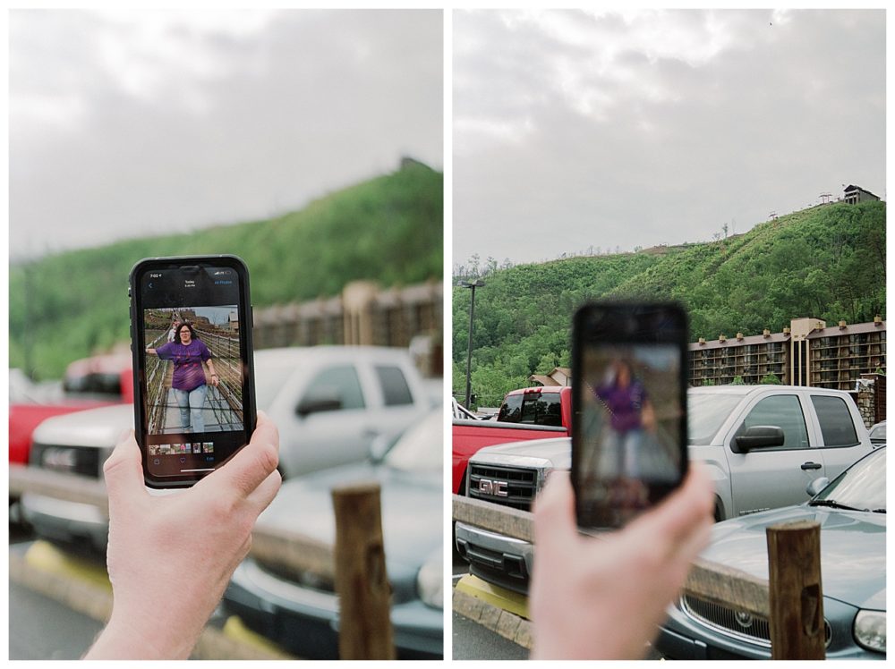 We then met up with the “soon to be newlyweds” in town and enjoyed some adventure time. Gatlinburg is a tourists dream!! It offers restaurants, shops, wine tasting, miniature golfing, Ripley’s Believe It Or Not, and plenty more attractions. Jason and Kristine braved the Skylift Park where they headed to the top of a mountain and walked across a scary rope bridge where some wood pieces were replaced with glass to enhance the view. I thought it would be a cool photo opportunity on their wedding day, but Jason said “no way I’m going back up there!” lol