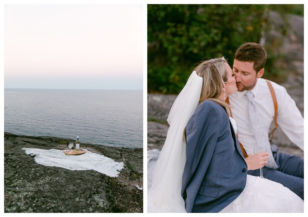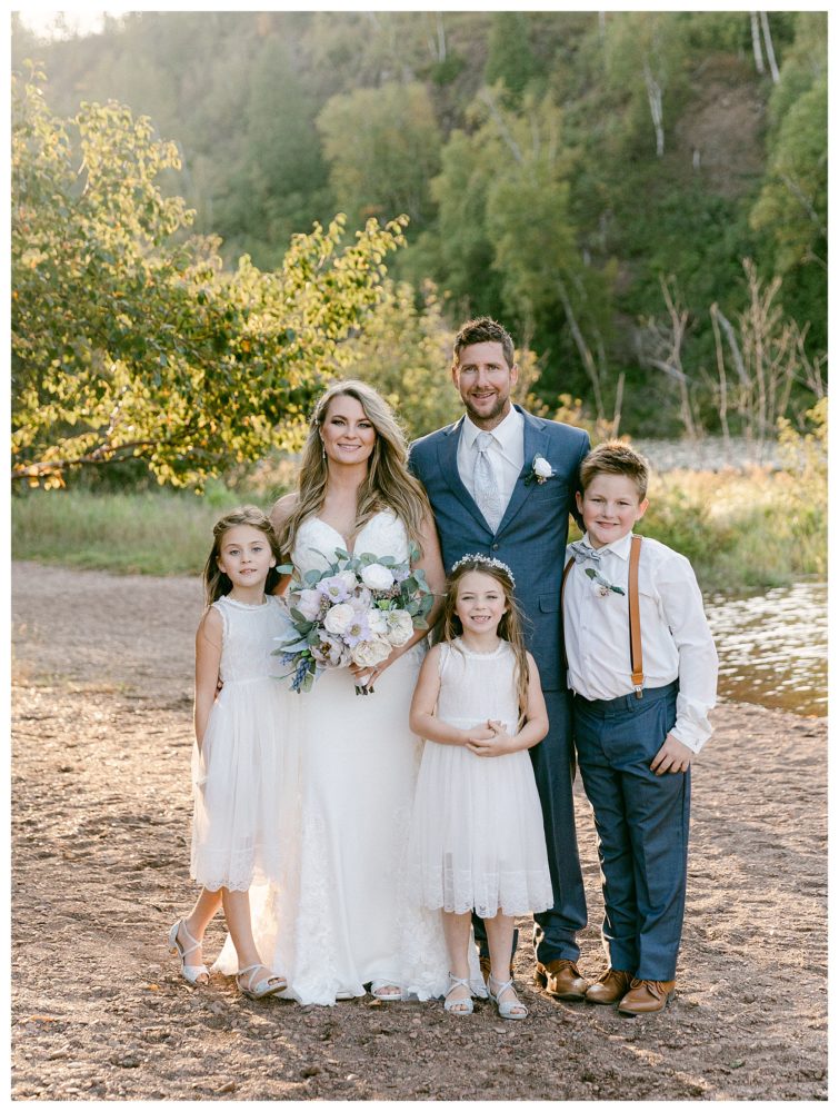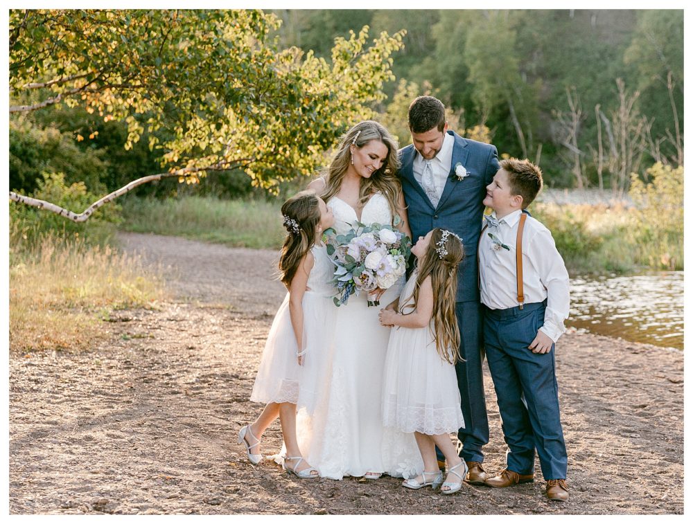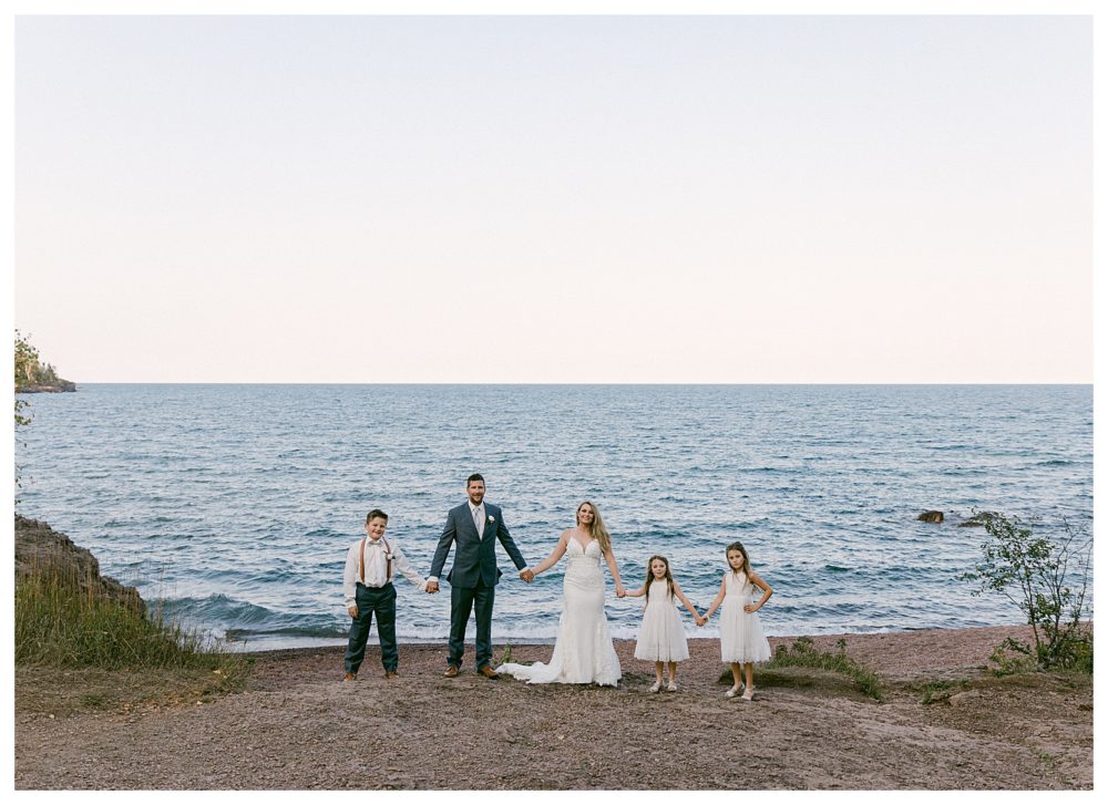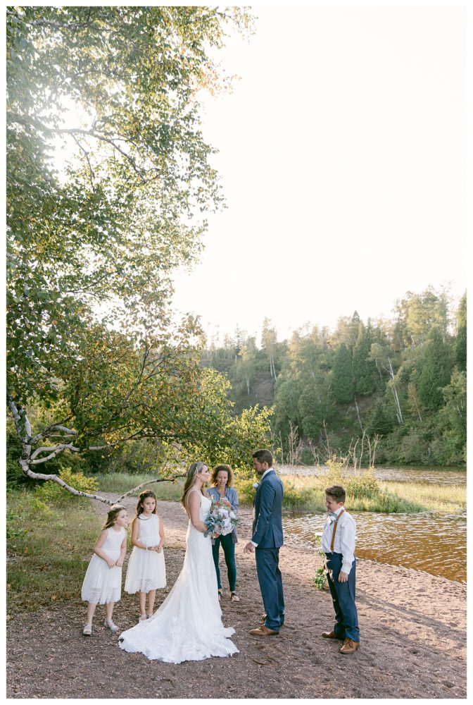 Some people can’t decide if they should elope or have a simple wedding with the kids, or indulge in some alone time since it’s hard to come by post-kids. Jessica and Josh wanted the best of both worlds so they took an adventure to the North Shore of Minnesota with their kids, and had their friends tag along to take them after the ceremony so they could enjoy a romantic evening on the cliffs together. It really was the sweetest thing to have both scenarios play out on the same evening. The kids all dressed up, witnessing the union of marriage at Gooseberry State Park, and then heading off to explore the magic of Lake Superior was so fun and meaningful. And then ending with private vows at Palisade Head (the most incredible views Minnesota has to offer), followed by a romantic sunset picnic on the rocks.