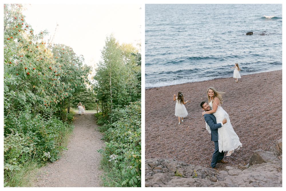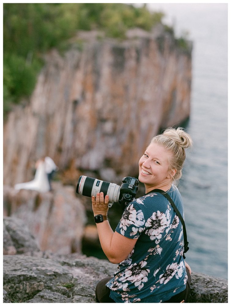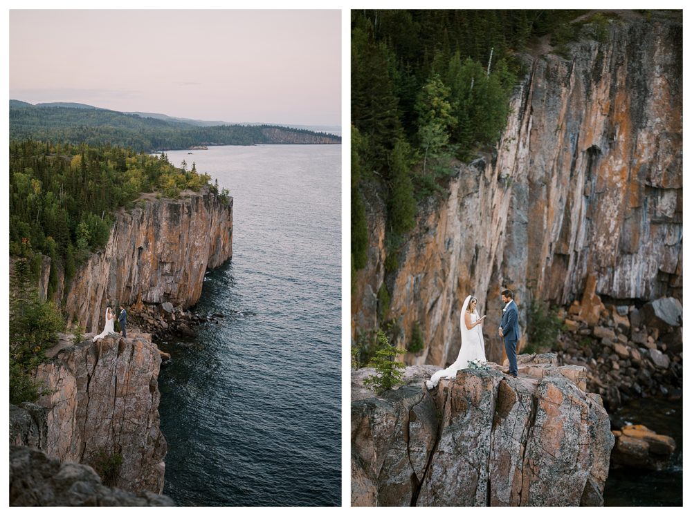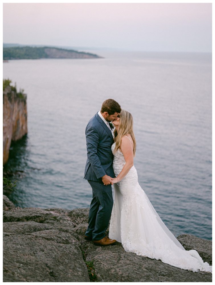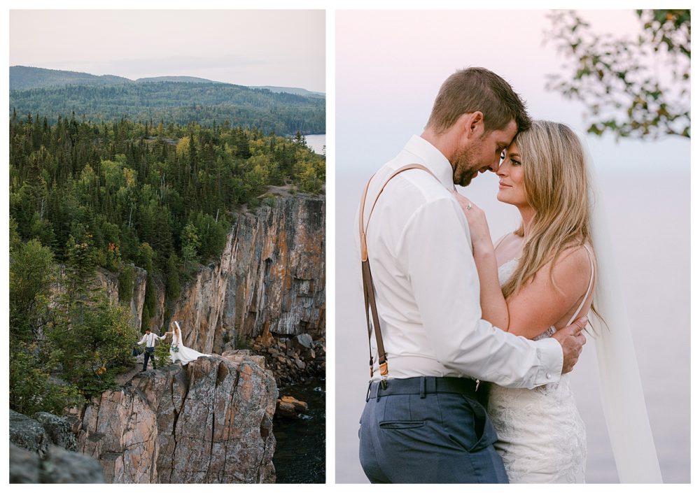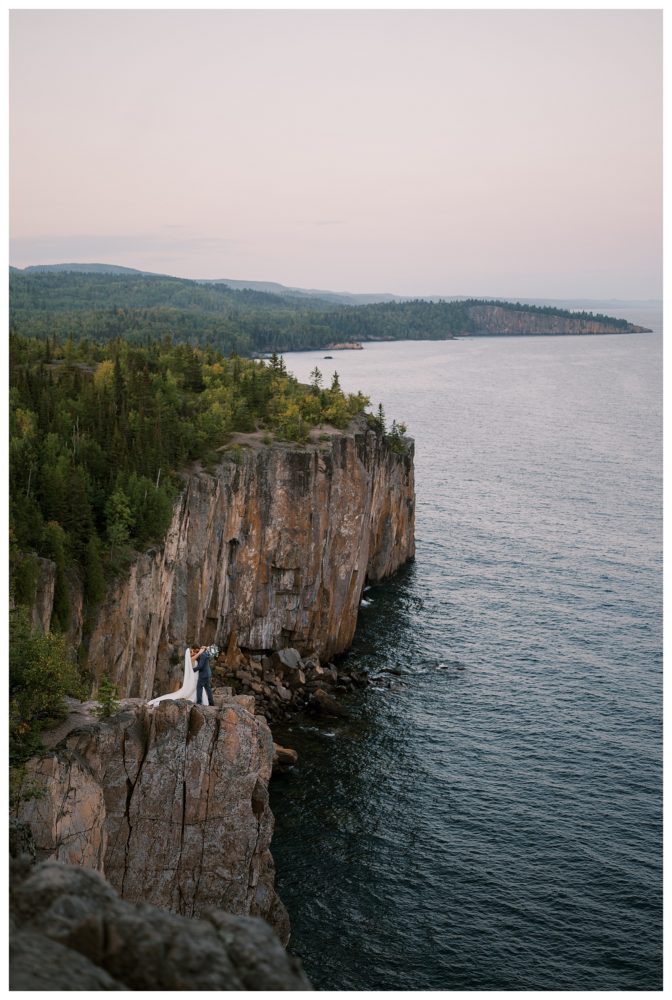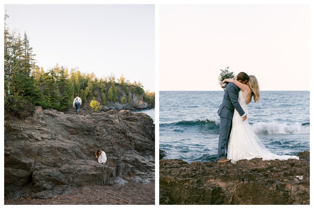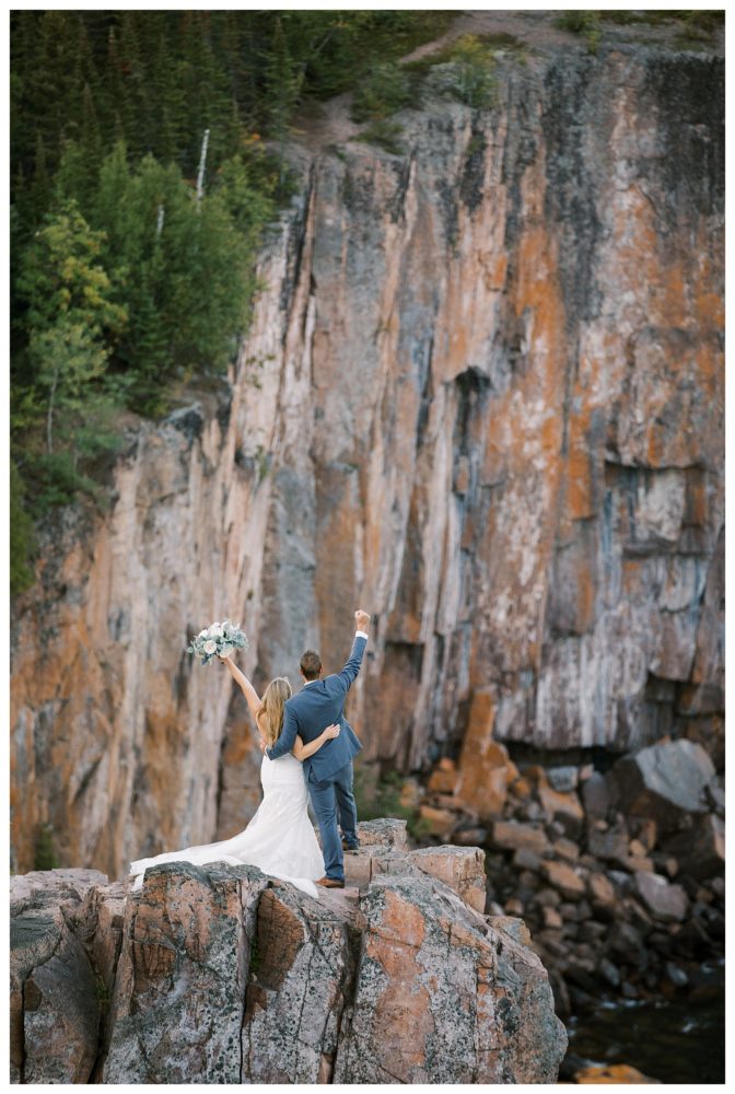 “We knew we wanted to elope as soon as we started talking about marriage. We both had big weddings and we wanted this time to be full of memories with our kids and having the intimate moment of saying of vows to each other with no one around, instead of the stress of a big event. We threw around a few locations like Iceland, Alaska and Hawaii. We knew we wanted to go somewhere with adventure and hiking but with the uncertainty of covid, we started contemplating some local and familiar destinations. I saw a picture of a wedding at Palisade Head, a spot we have hiked during our annual trip to Larsmont Cottages. I had an ah-ha moment to elope at the spot we go to every year. Lake Superior/the North Shore was the area that brought our passion for hiking to life. It seemed perfect for us. And now we are so excited to continue our annual trip to Larsmont but as an anniversary trip!
