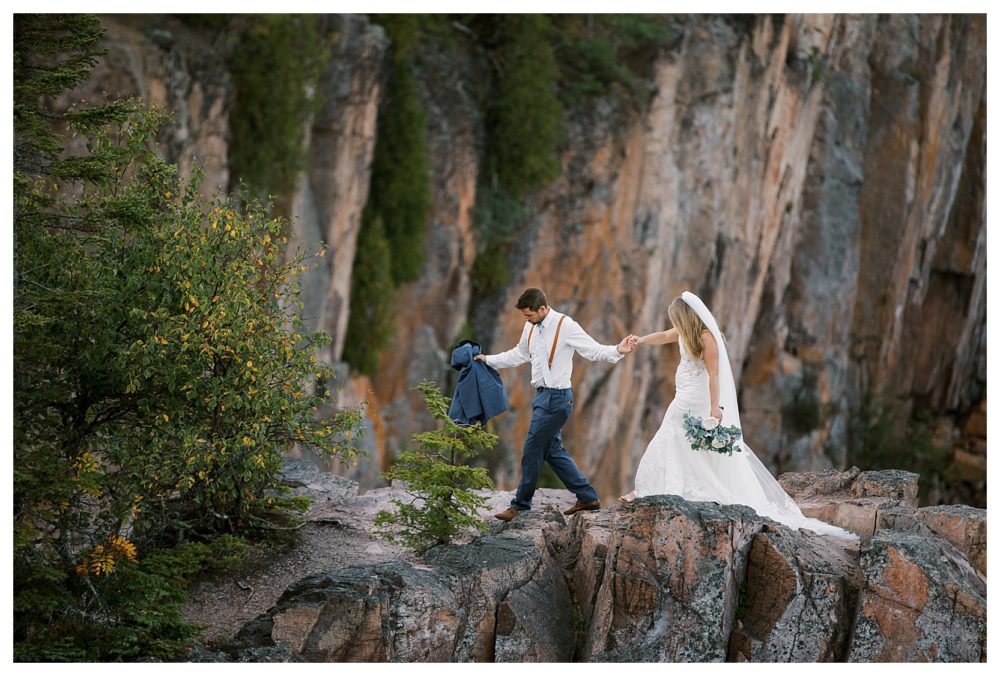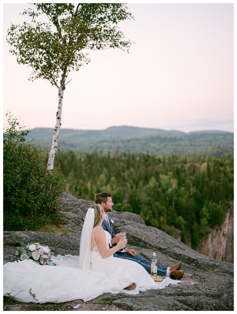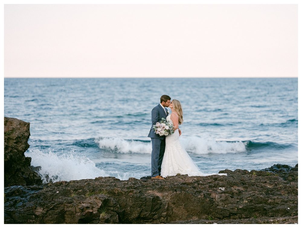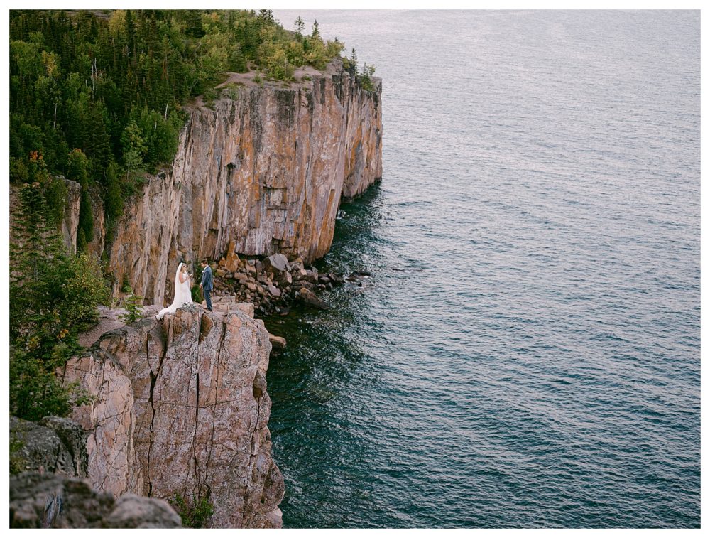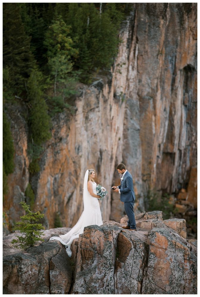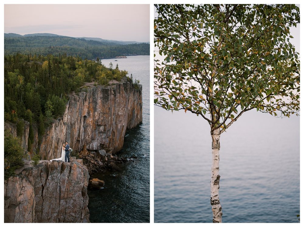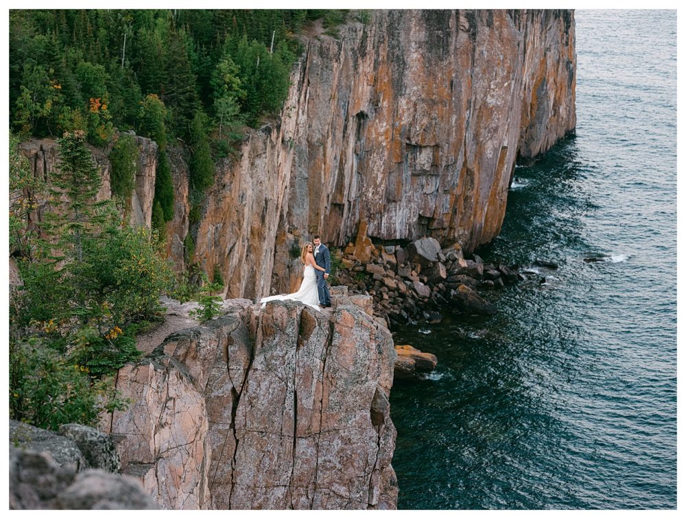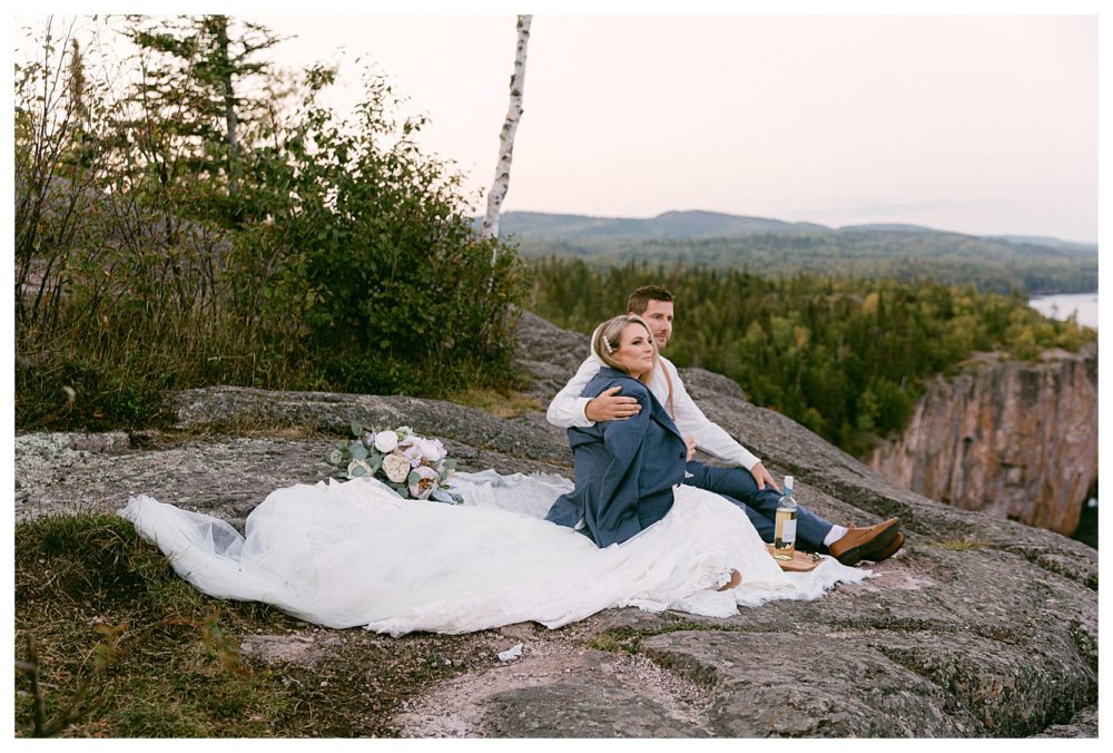 “We knew we wanted to elope as soon as we started talking about marriage. We both had big weddings and we wanted this time to be full of memories with our kids and having the intimate moment of saying of vows to each other with no one around, instead of the stress of a big event. We threw around a few locations like Iceland, Alaska and Hawaii. We knew we wanted to go somewhere with adventure and hiking but with the uncertainty of covid, we started contemplating some local and familiar destinations. I saw a picture of a wedding at Palisade Head, a spot we have hiked during our annual trip to Larsmont Cottages. I had an ah-ha moment to elope at the spot we go to every year. Lake Superior/the North Shore was the area that brought our passion for hiking to life. It seemed perfect for us. And now we are so excited to continue our annual trip to Larsmont but as an anniversary trip!