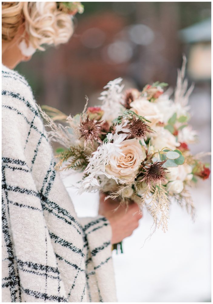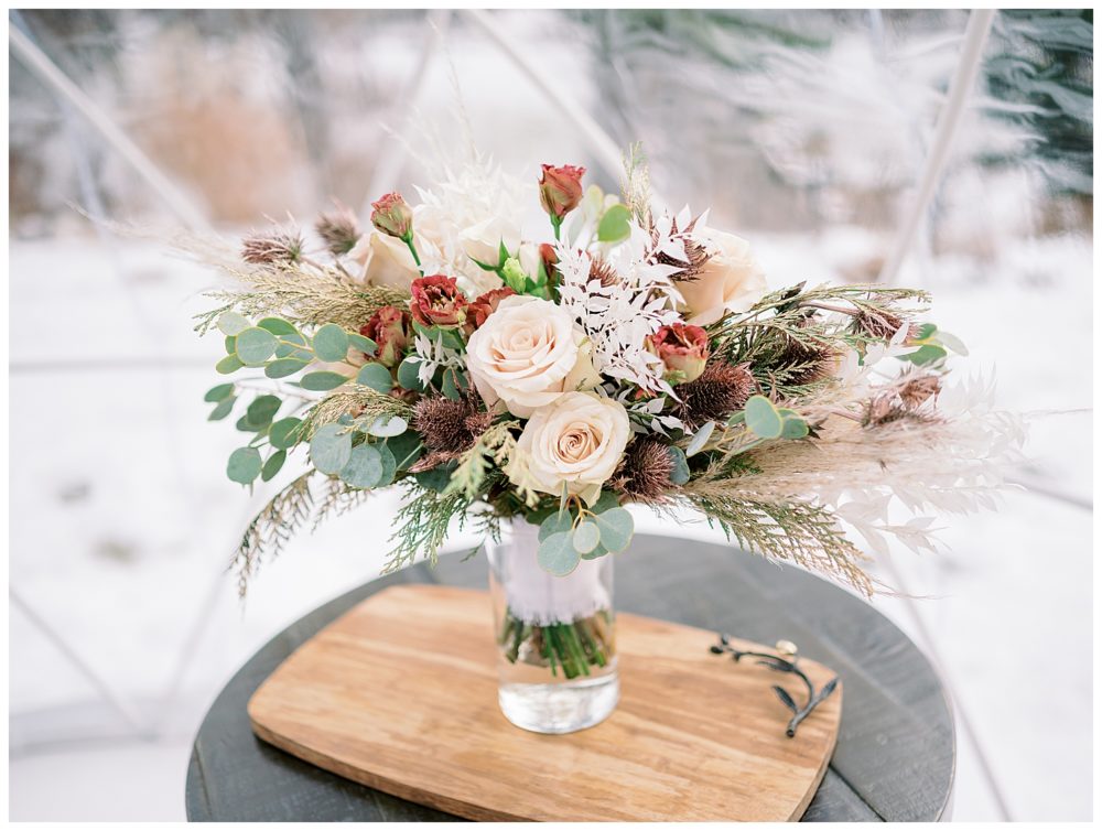 Xsperience Photography has worked with many wedding vendors over the years, so part of the perk of hiring us is the guarantee of quality work. This is why a bouquet and either a floral crown or boutonniere created by the talented Petals and Beans is included in this winter igloo elopement!!