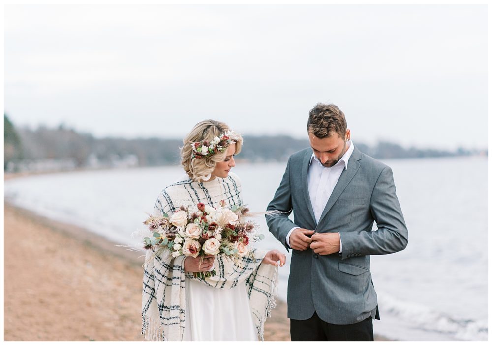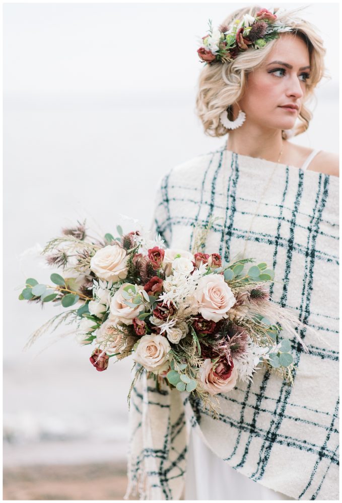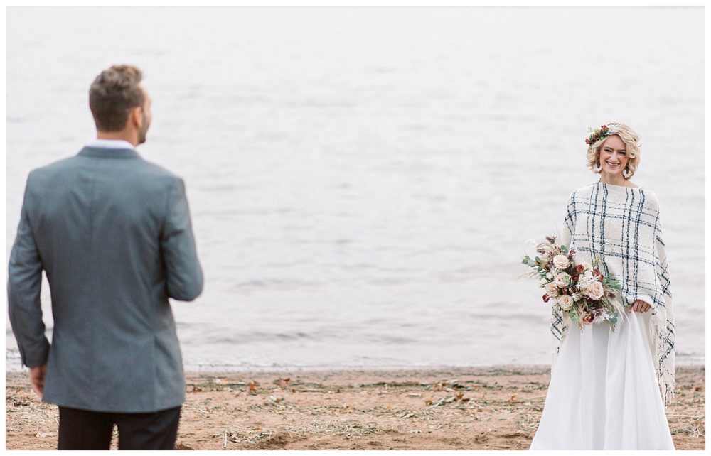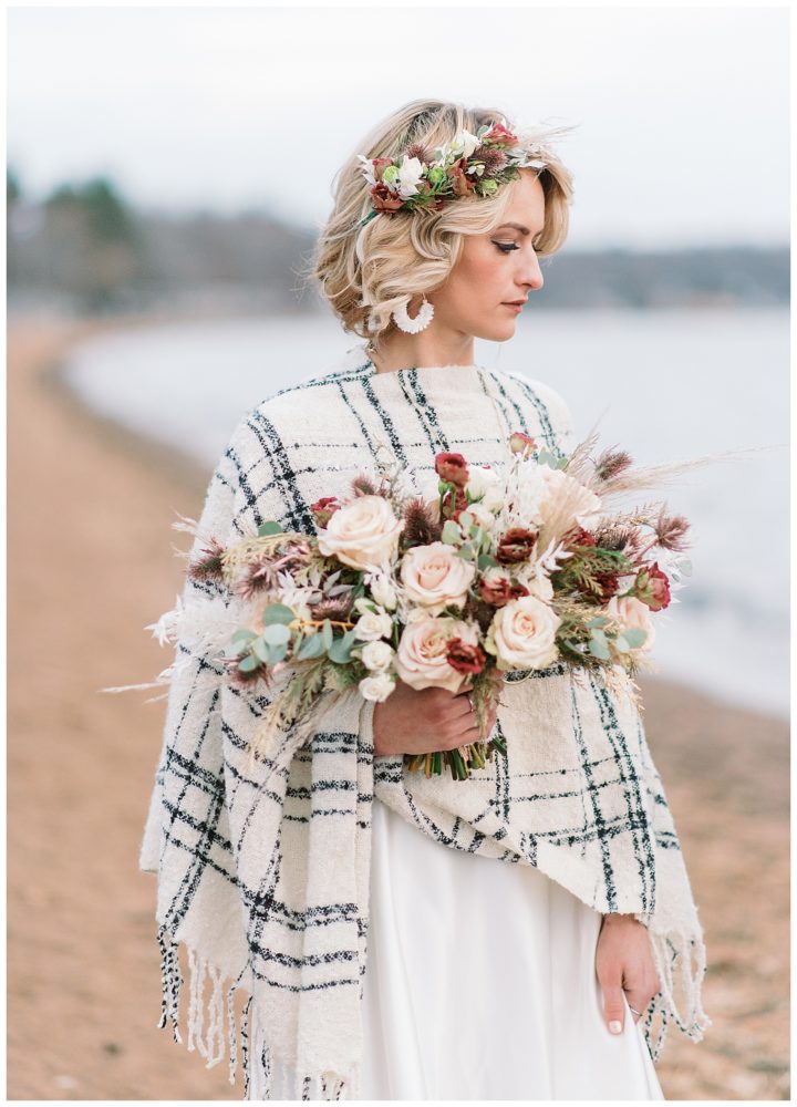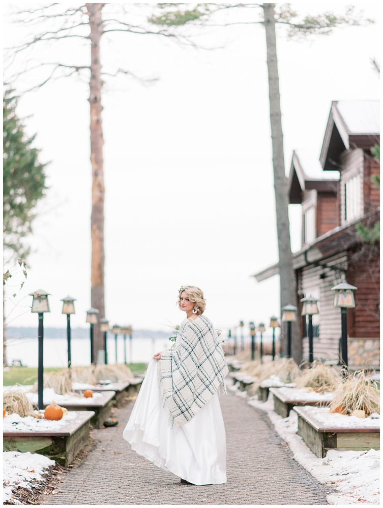 Photography, Planning, Styling and Video: Xsperience Photography | Venue: Grand View Lodge, Nisswa MN | Florist: Petals & Beans, Nisswa MN | Sweater Poncho & Jewelry: Theory Clothing Boutique, St. Cloud MN | Makeup: Sei Bella, by Melaleuca | Models: Courtney Goerger and Derek Paden