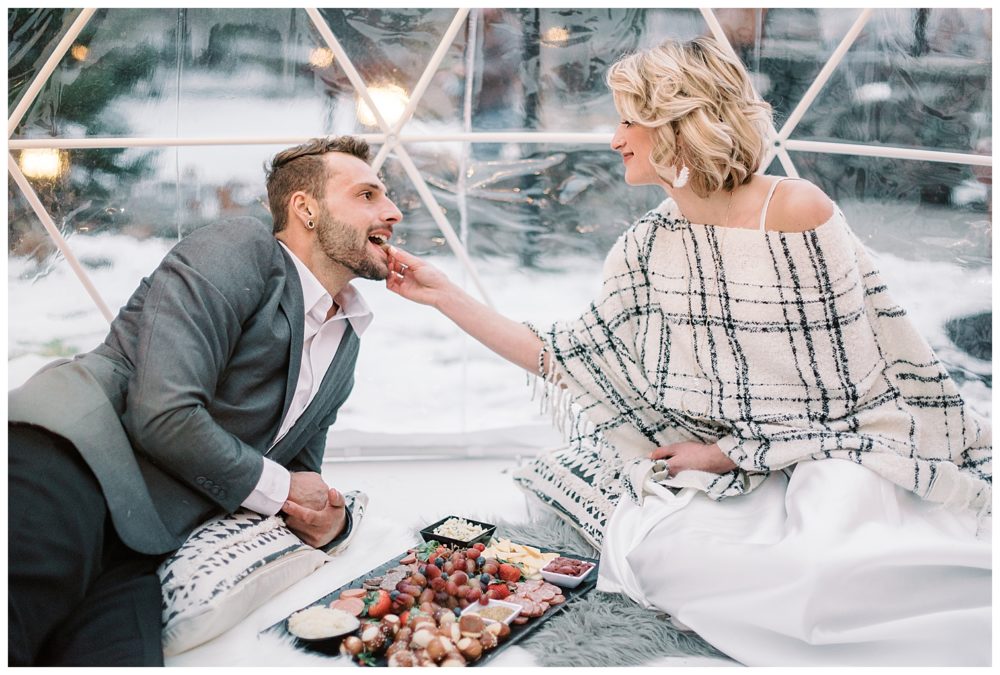 Speaking of planning a big wedding… now is definitely not a fun time to be doing so with all the covid restrictions and unknowns. So here is a sample of how simple an elopement can be in an IGLOO at Grand View Lodge!
