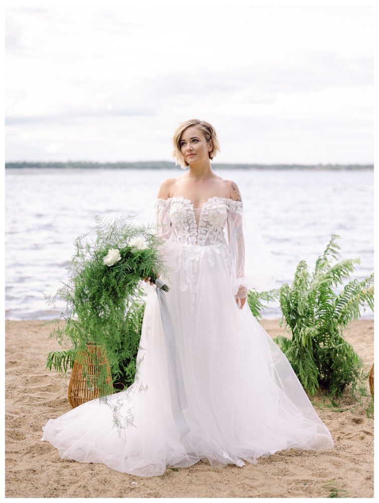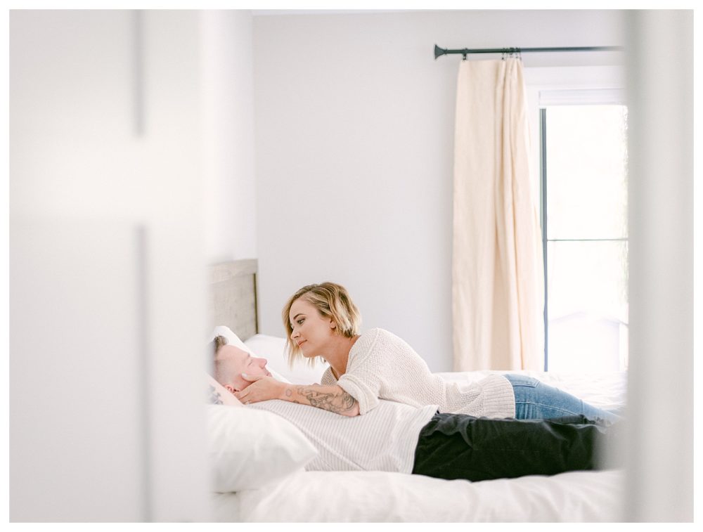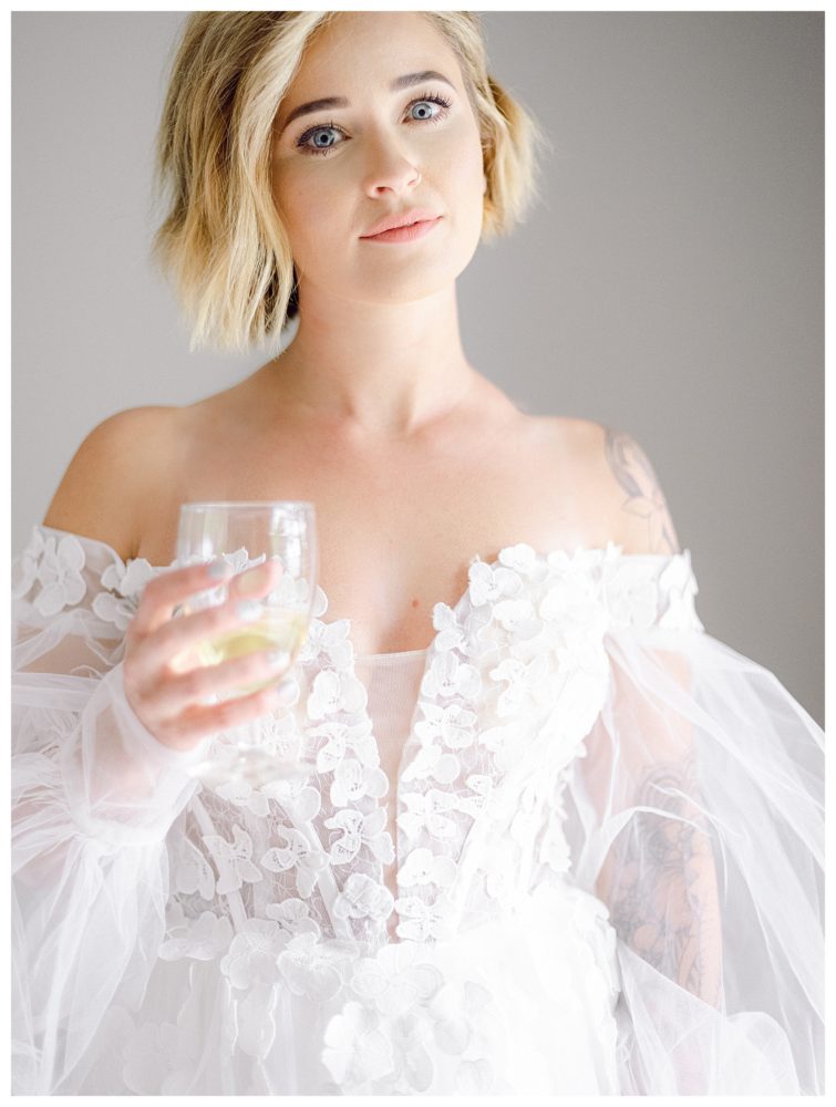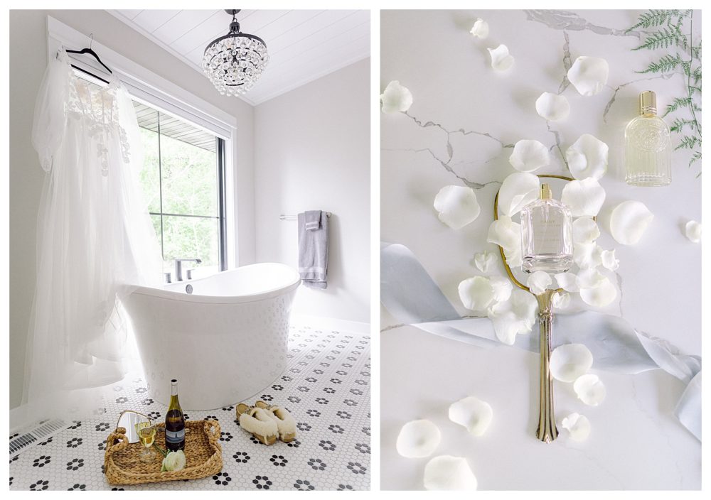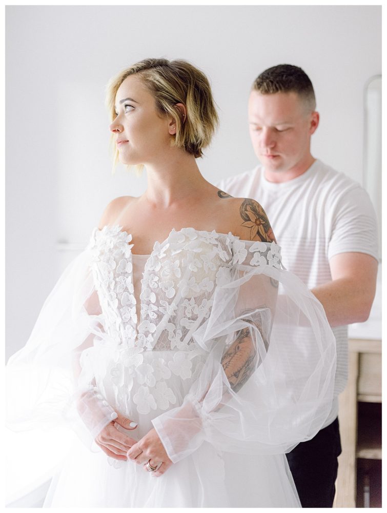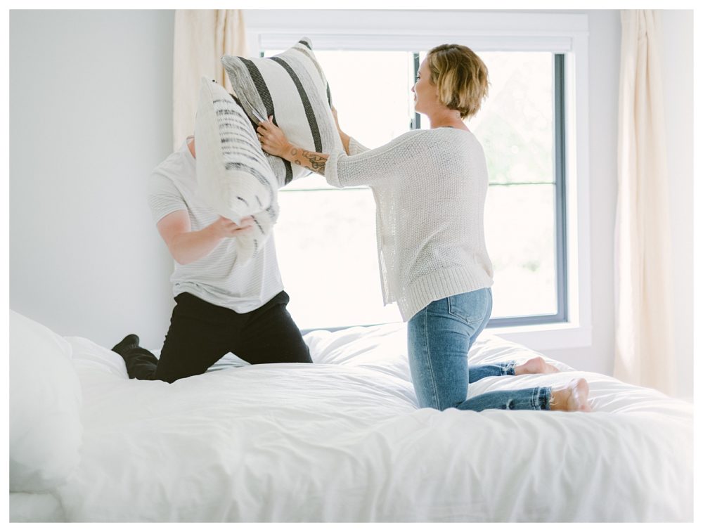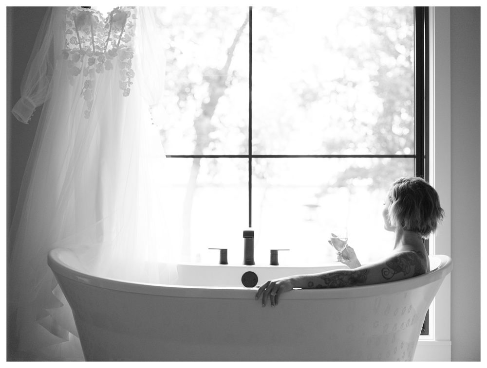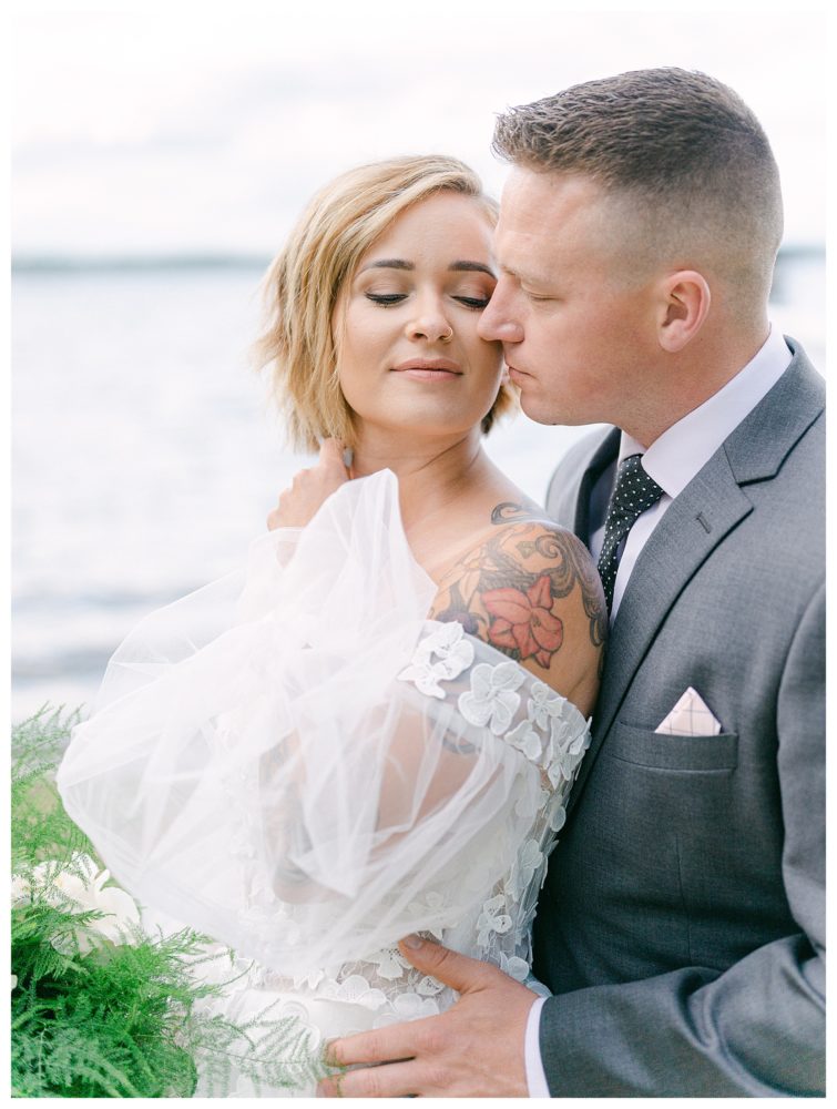 This Intimate wedding features classic decor to compliment the modern design of the home. The dress is fine art in style and looks absolutely stunning on Jessica. Who honestly looked just as stunning in her plain sweater because she’s just gorgeous in every way. Her and Tyler shared some lifestyle moments while prepping dinner, snuggling in their new bedroom they’ll share for the week, which ended with a playful pillow fight… so fun!! Then Jessica relaxed a bit, bathing and sipping wine in the beautiful window-lit bathroom before getting ready for the lakeside vows.