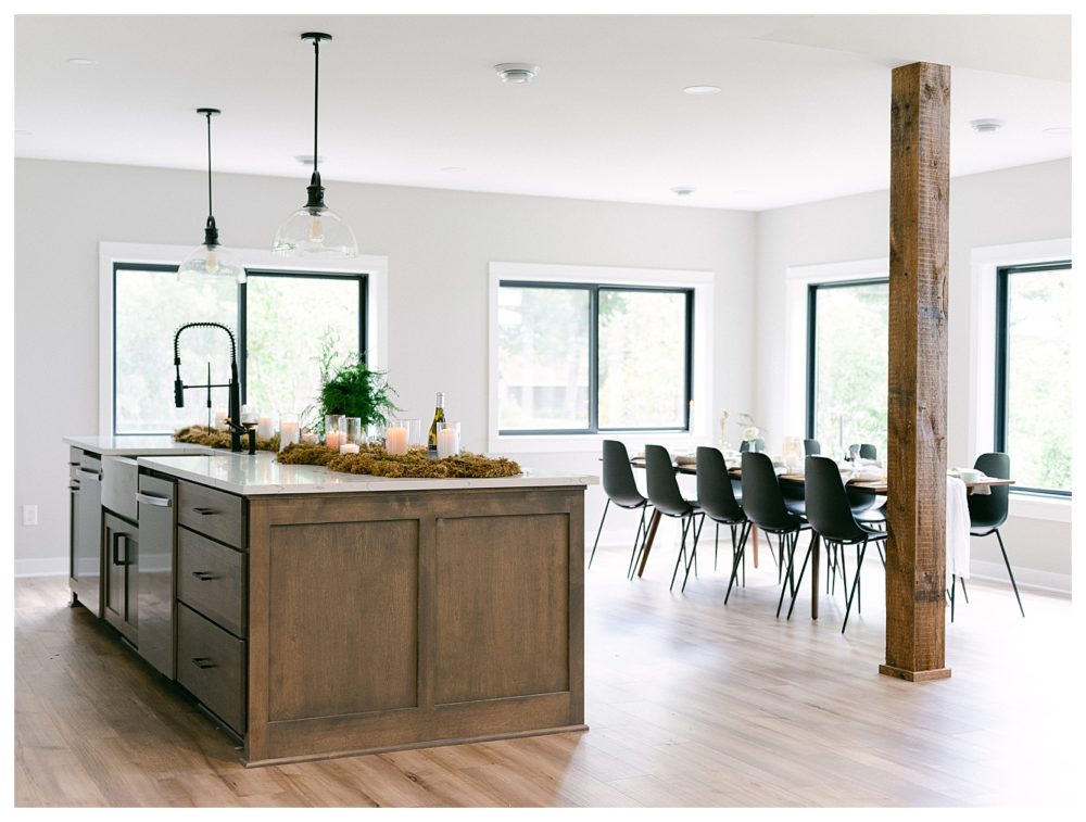 The kitchen offers comfortable seating for 16 so Kari with White Loon Events worked her magic turning the area into a gorgeous wedding dinner setting. The Island served as a grazing bar with wine, a charcuterie board, fruit, breads and my personal favorite, cakes and cookies made by Emily Grace Cakes.