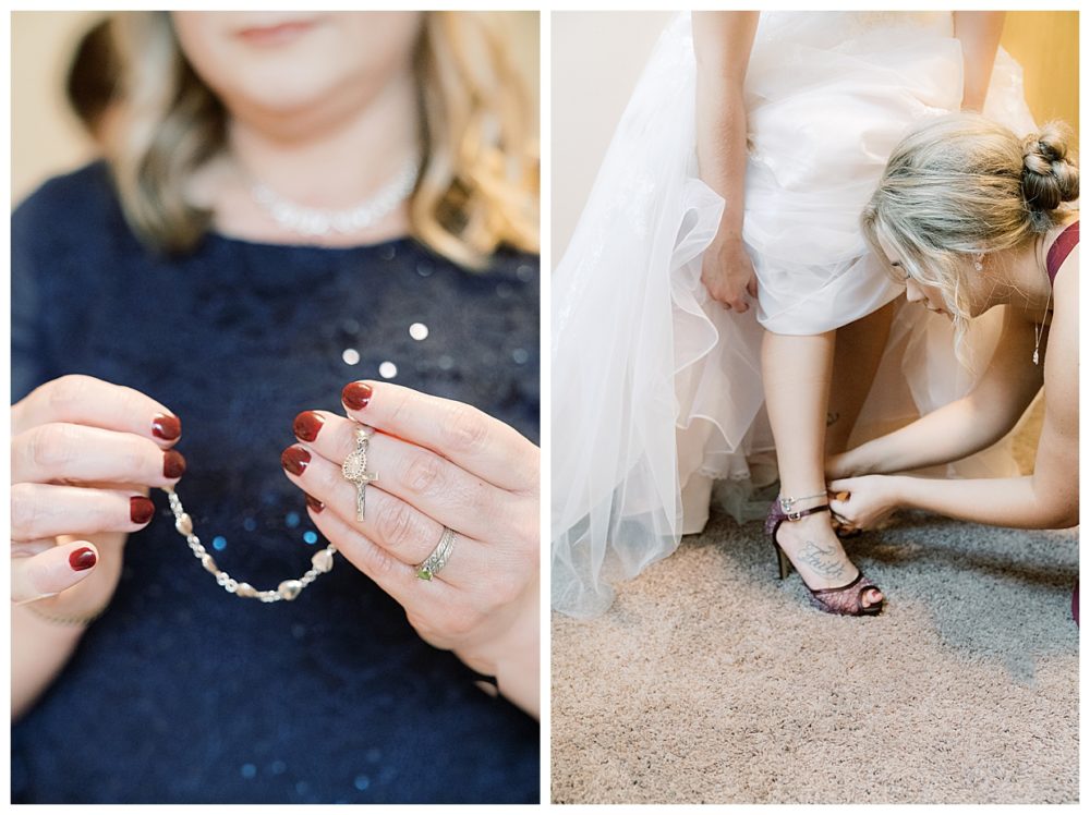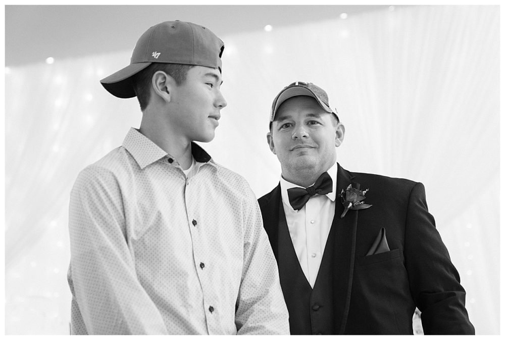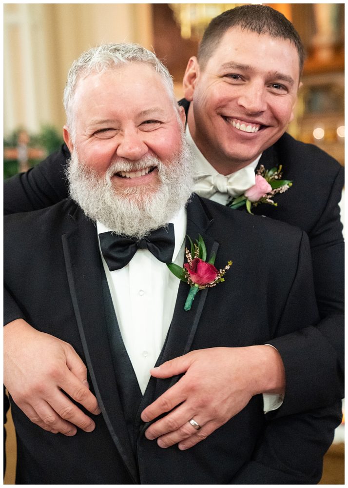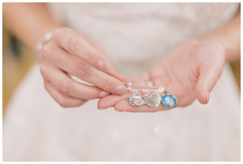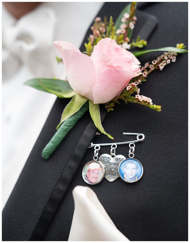 “Our wedding day was absolutely perfect – despite the rain. We did wish, however, that Jarrod’s dad and brother would have been able to be there with us – they both have passed away. We know they were there in spirit and that brought us peace. I gave Jarrod a personalized pin with pictures of his dad and brother after our first look. I wanted Jarrod to be able to have his dad and brother close to his heart on our wedding day.”