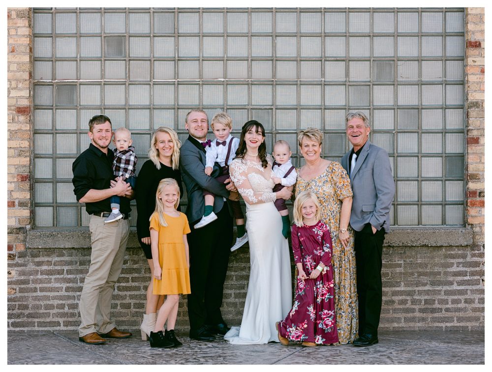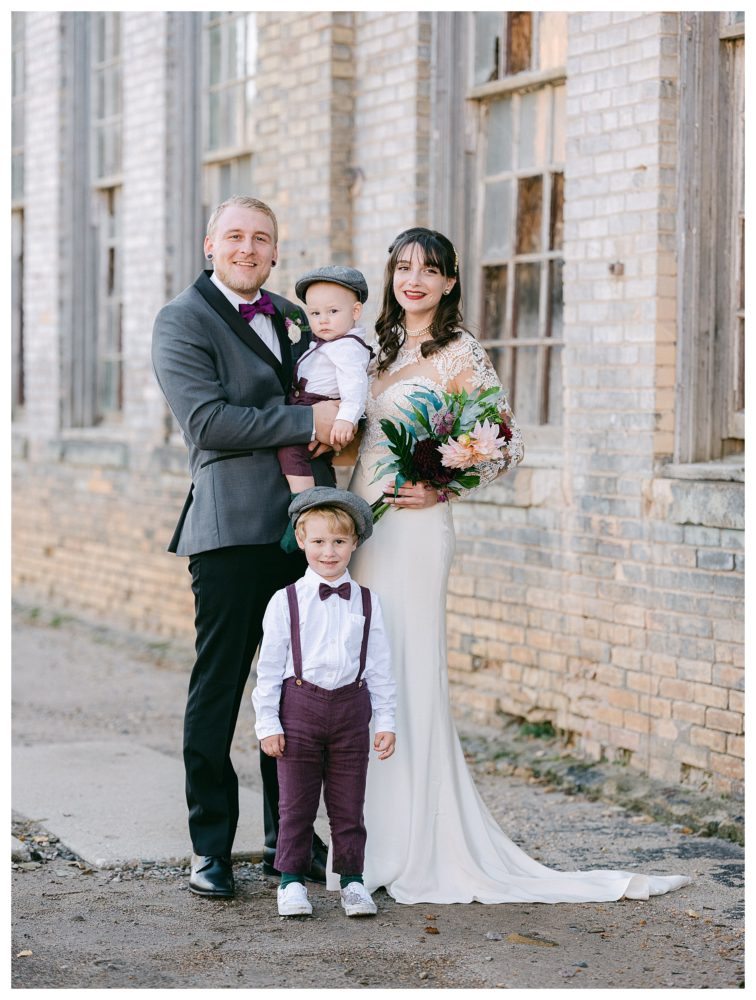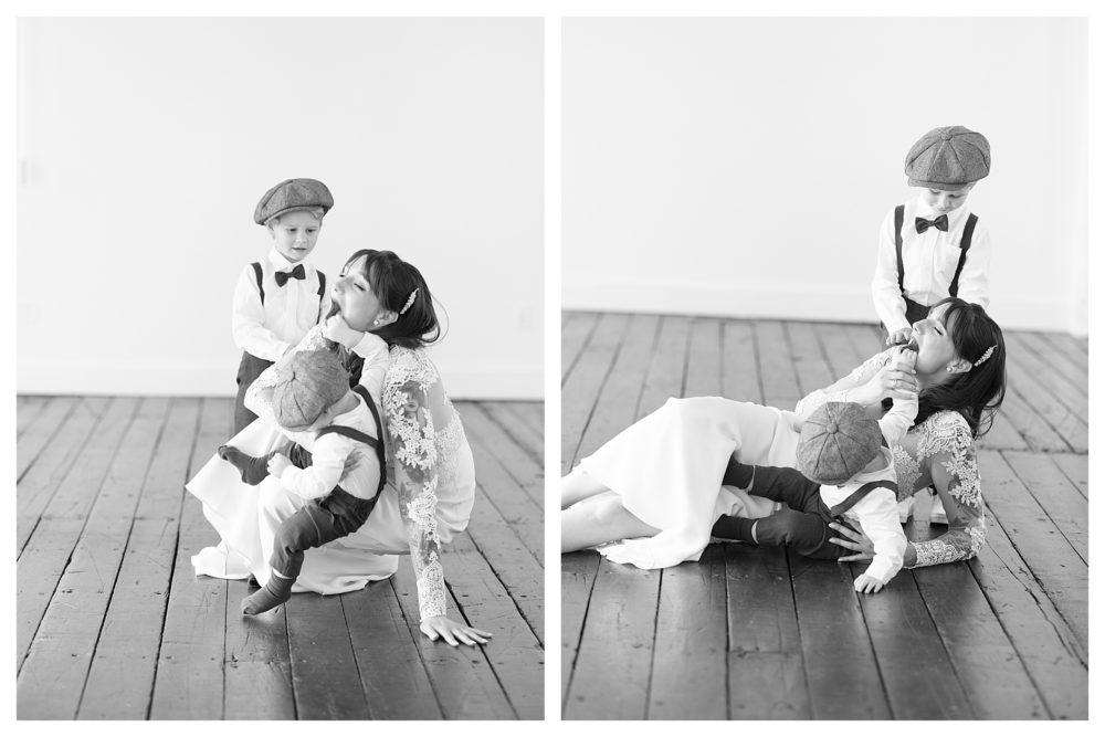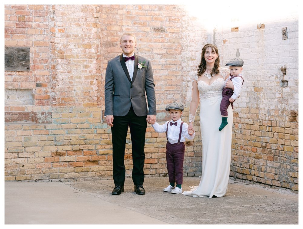 I then visited the men in their Industrial style getting ready room across the parking lot. They were equally as chill. I kinda forgot I was working for a minute. Ok…not quite…the 50 pounds of camera gear on my back reminds me otherwise. After hand-writing their vows and getting their handsome boys ready, the fun began. Or wait…we were already having fun the entire time so I should say, the fun continued!! When Jordan’s oldest boy found one of the only puddles and jumped in it with his white shoes BEFORE family photos even began, I looked over at her to catch her expression and she just said with a sly smile, “boys will be boys”. Yeah she can be my bride every weekend!! You really must view their story unfold through photos. So many of these were captured naturally with very little or no posing and they still portray so much beauty and love at the same time.