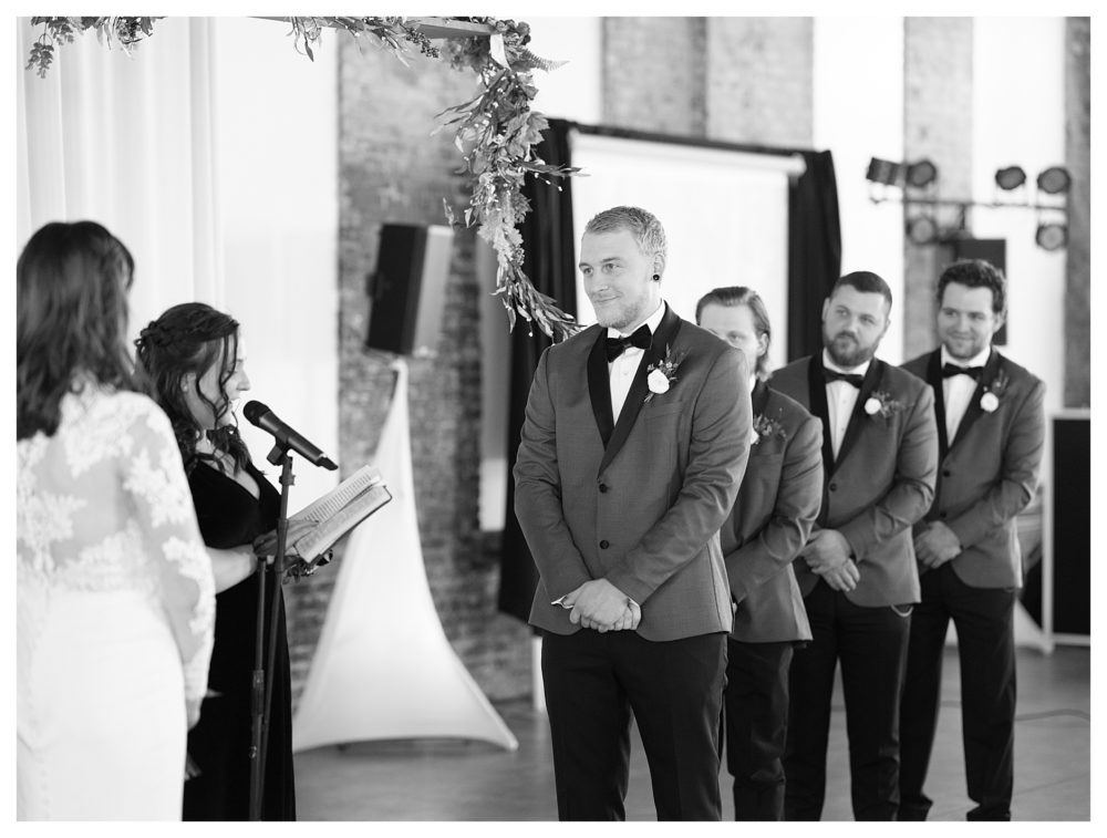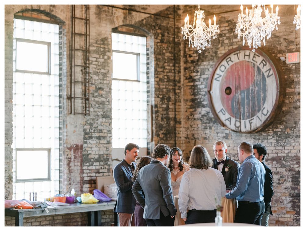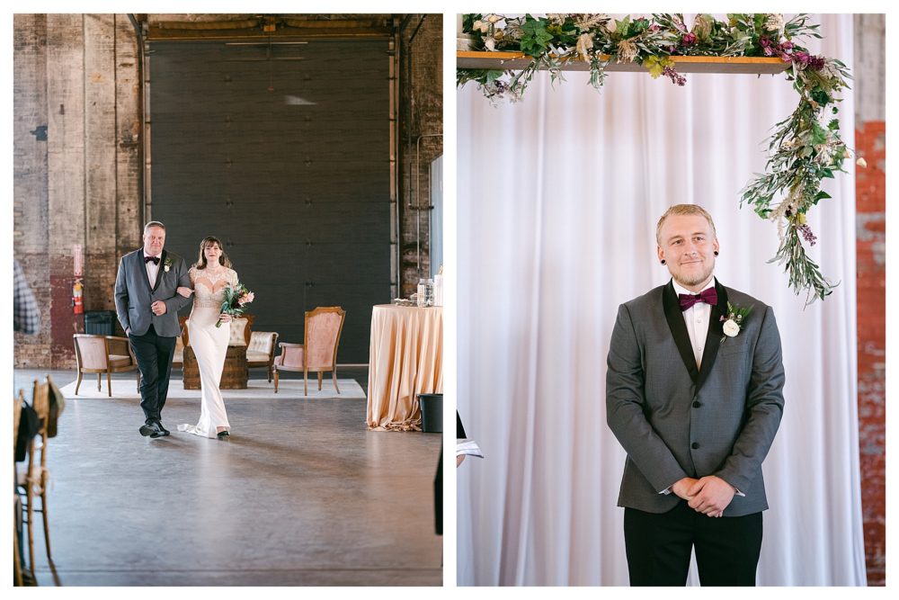 PHOTOGRAPHY: Xsperience Photography | DESSERTS: Cookies from NOMES Sweets and Treats, ice cream from Lingen Dairy Ice Cream | DJ: Dynamite Reflections Entertainment L.L.C | Day of Coordinator: Kristin with The Minnie Planner and Amy’s Cherished Events | FLORIST: 651 Studio Floral | VENUE: Blacksmith Main aka Northern Pacific Center | CATERER: Clockwork Hospitality