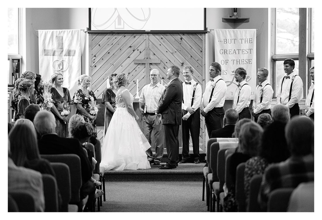 Kayla and Braxton hosted a Central Minnesota Wedding so that all their friends and family could join in on the fun. They began the day getting ready at a family member’s home in Rice, Minnesota before heading a couple miles down the road to their Church. Following the ceremony the wedding party hopped on a bus and stopped by O’briens Pub in Rice for a few drinks. The partying continued long through the night at Mr. Jims in Foley. Kayla and Braxton wanted their day to be filled with real candid moments vs spending hours posing and stressing about whether the kids stayed clean and smiled pretty for all the group shots. So that is exactly how we went about the day…very natural, unforced, accepting and embracing whatever came our way!!