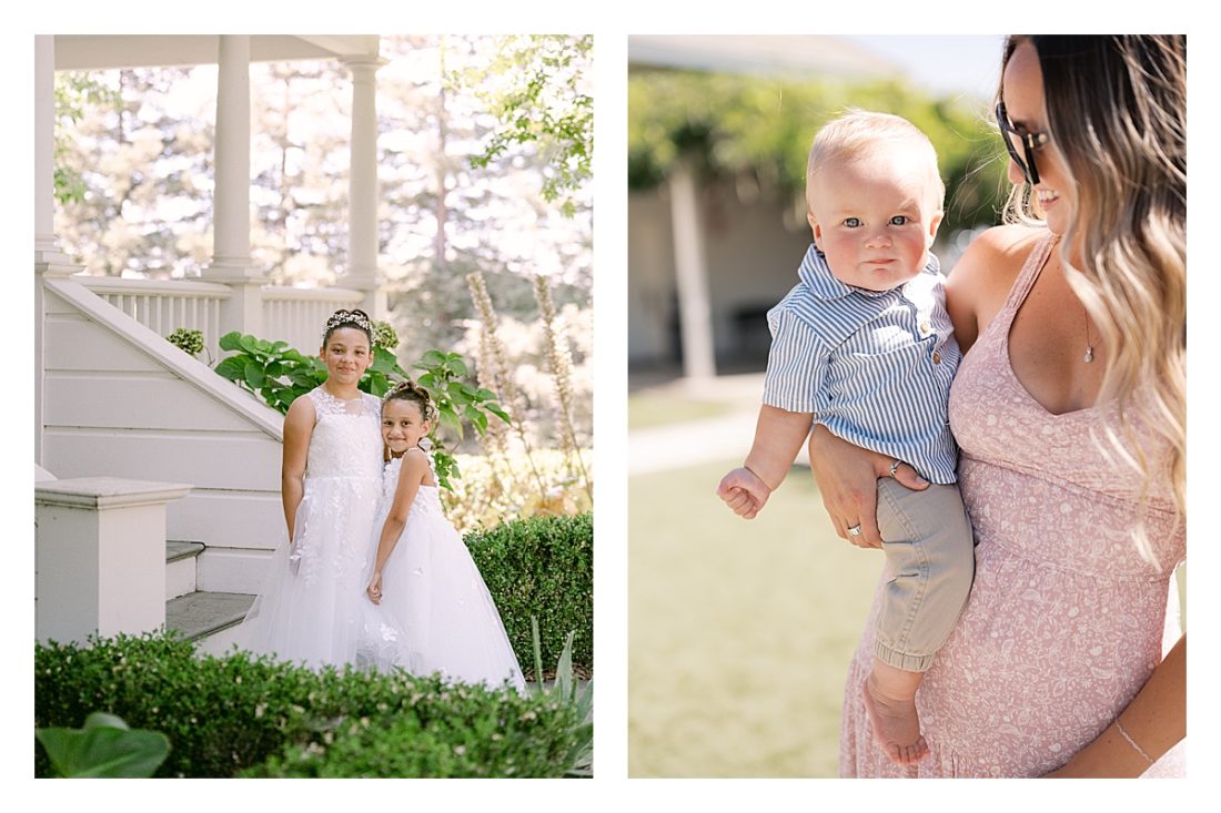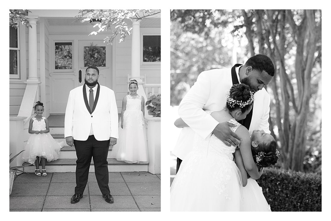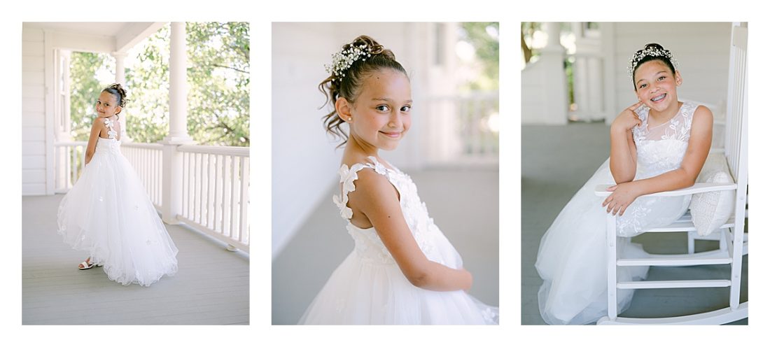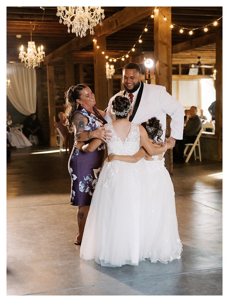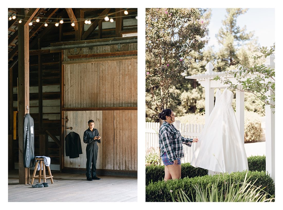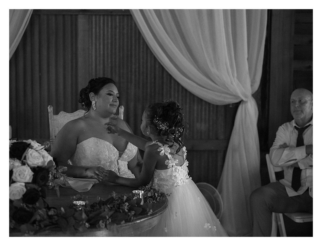 After their wedding ceremony we strolled around the property and captured photos by the mature trees and textured buildings. It was very windy so it was nice to have such beautiful buildings and trees to help block the wind a bit. Kiani made it clear that while she wanted some nice portraits of the two of them and their family, but she prefered photos that documented the moments and the realness of the day. Many brides say that, but then still provide a 3 page shot list and wait on me to direct or stage every minute of their day, but she genuinely meant it. She took in every single moment, whether I was there or not, as it naturally flowed. When I was off photographing her 2 spirited girls (my new besties;) by the Farmhouse she decided it was time to put her gorgeous gown on. I walked in and she was just vibing in the moment with zero photo expectations. I told her, in complete honesty, she was my dream bride!!!