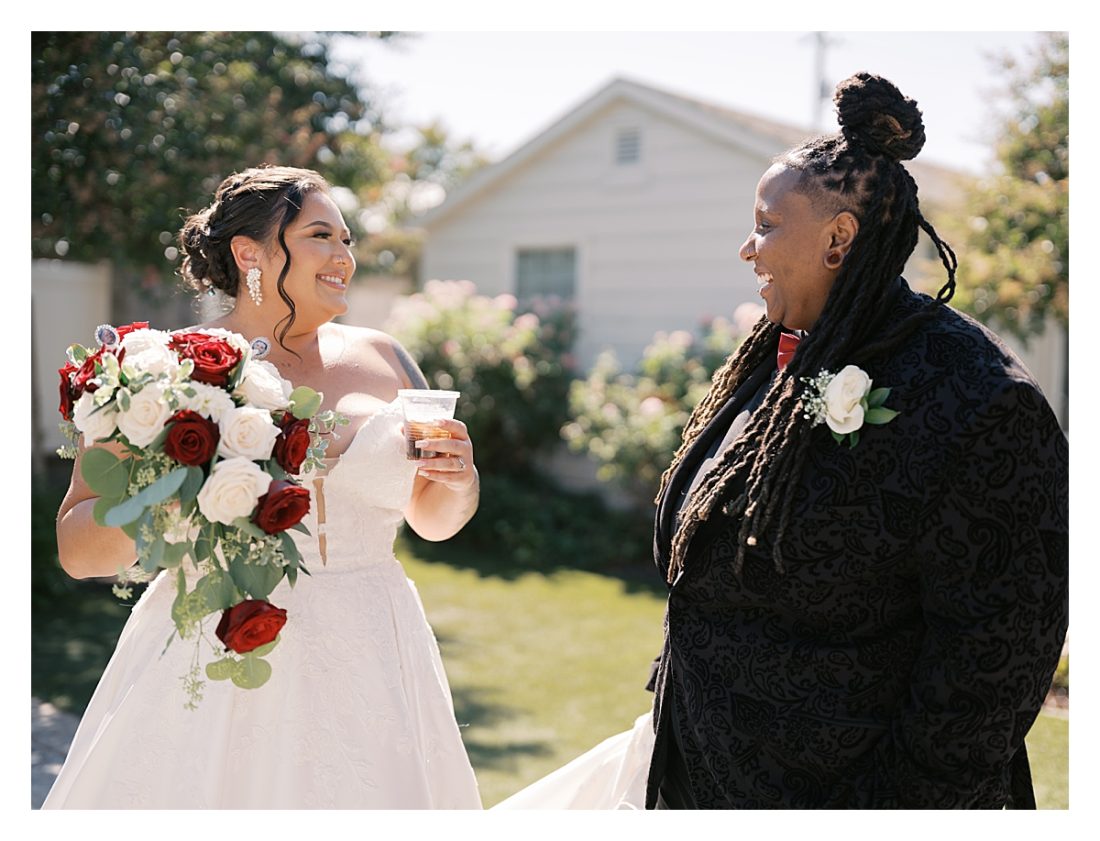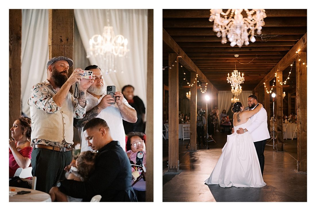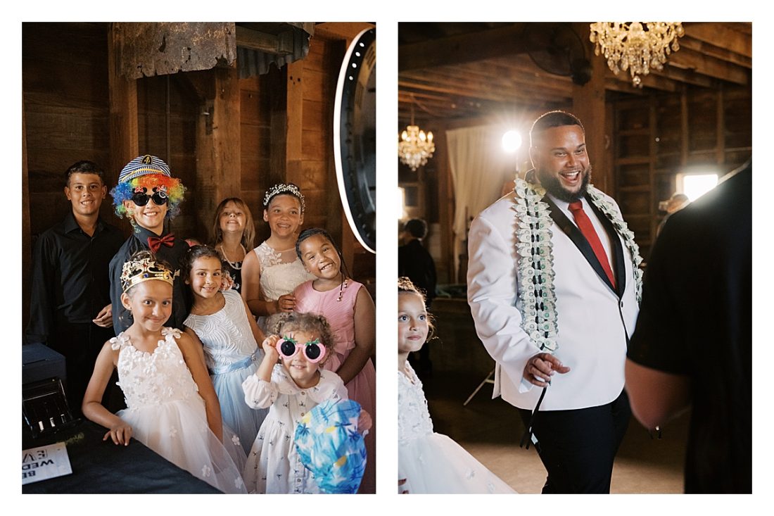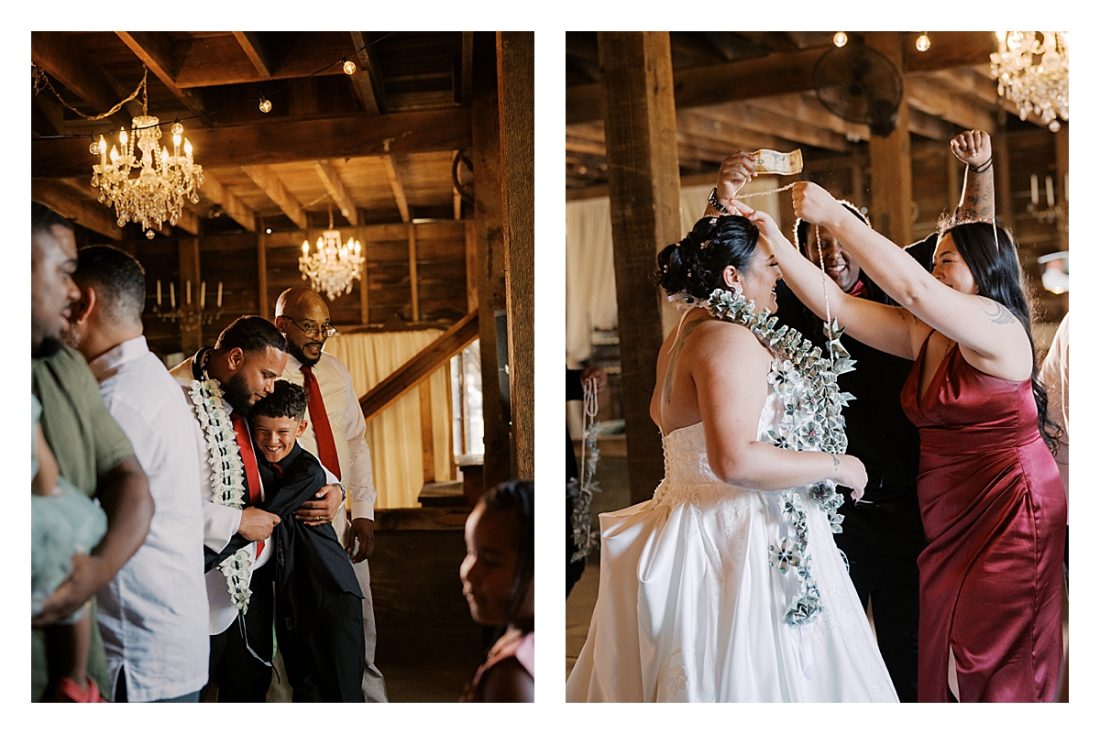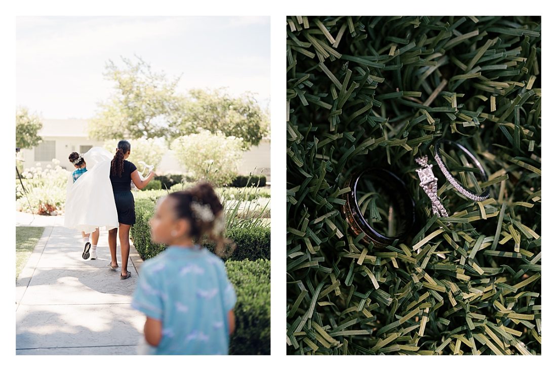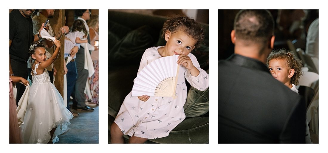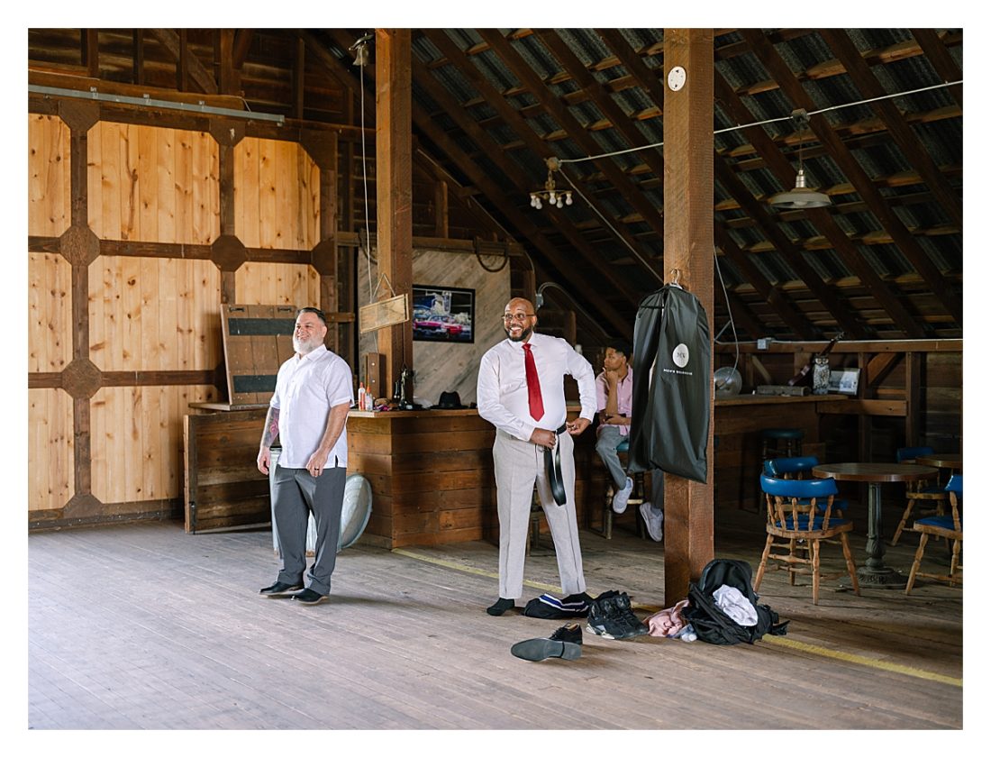 After their wedding ceremony we strolled around the property and captured photos by the mature trees and textured buildings. It was very windy so it was nice to have such beautiful buildings and trees to help block the wind a bit. Kiani made it clear that while she wanted some nice portraits of the two of them and their family, but she prefered photos that documented the moments and the realness of the day. Many brides say that, but then still provide a 3 page shot list and wait on me to direct or stage every minute of their day, but she genuinely meant it. She took in every single moment, whether I was there or not, as it naturally flowed. When I was off photographing her 2 spirited girls (my new besties;) by the Farmhouse she decided it was time to put her gorgeous gown on. I walked in and she was just vibing in the moment with zero photo expectations. I told her, in complete honesty, she was my dream bride!!!