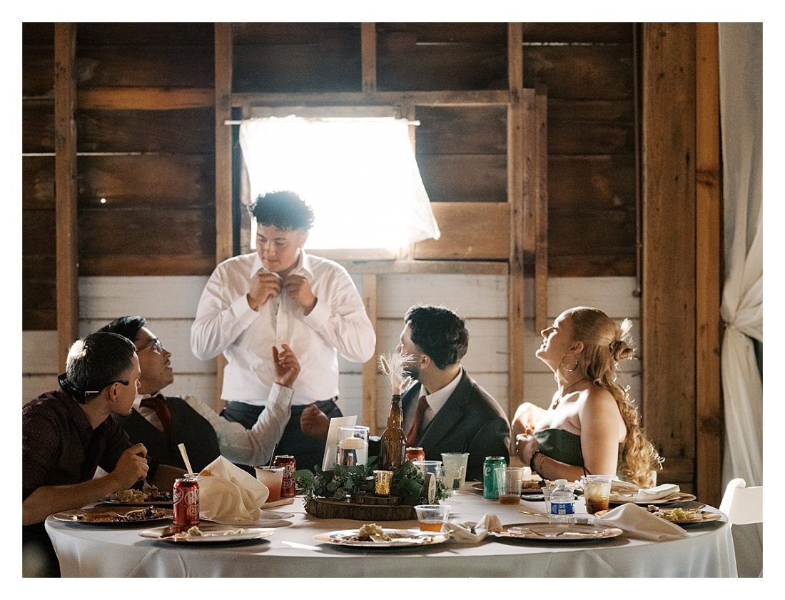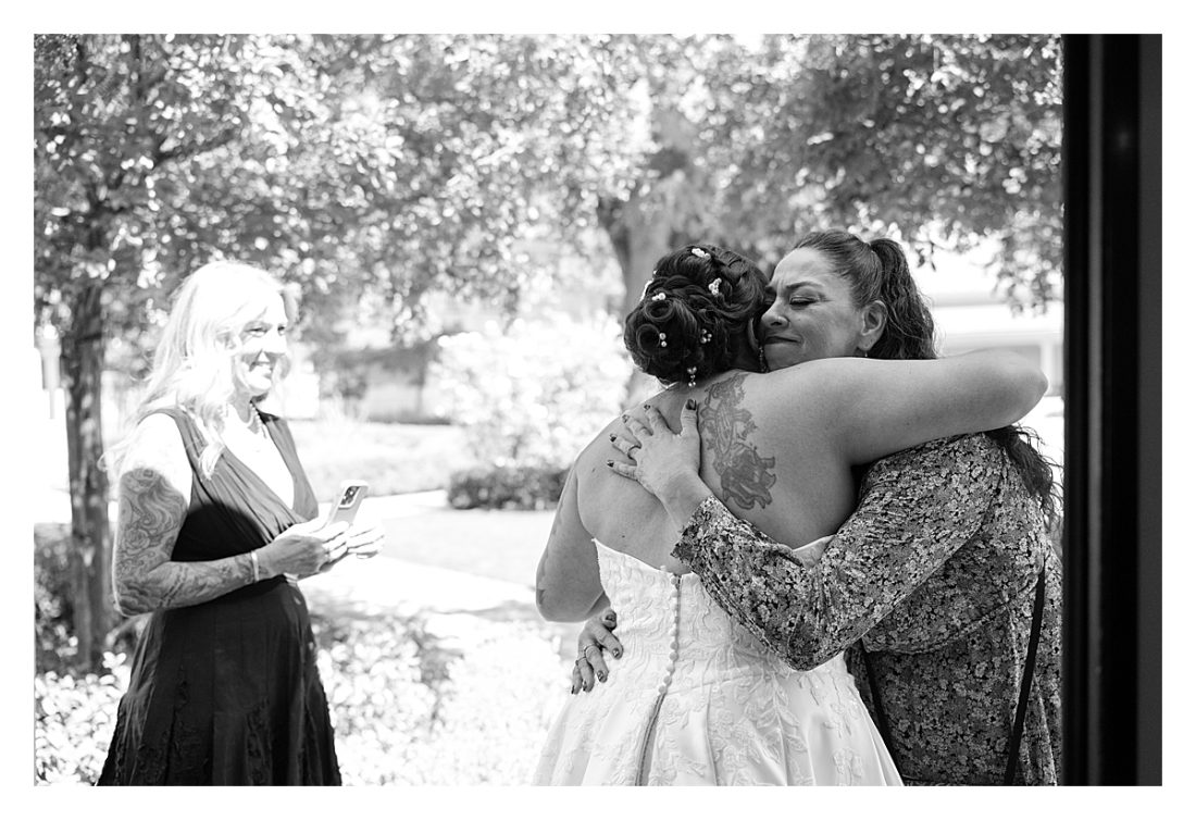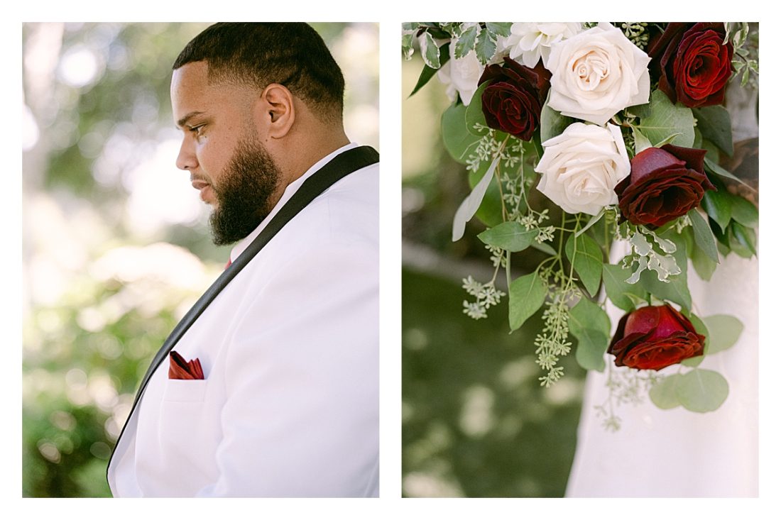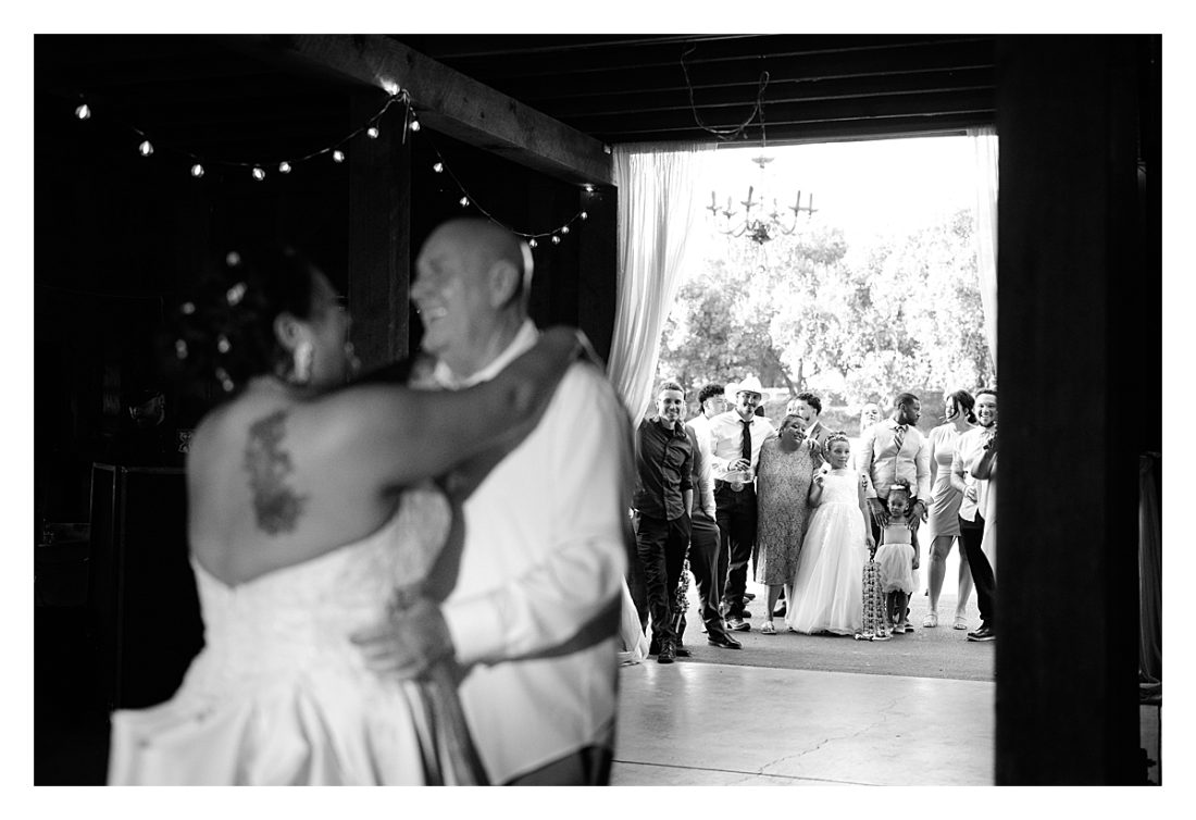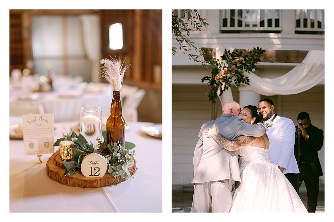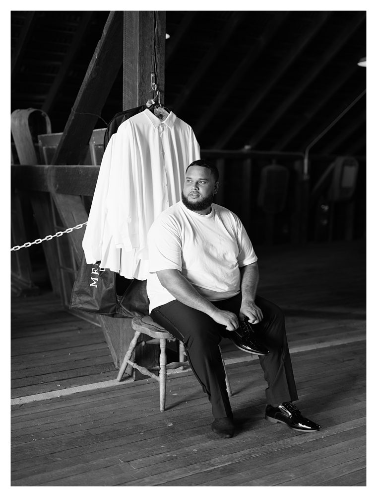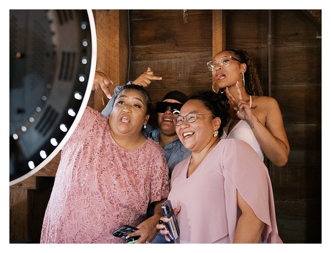 After their wedding ceremony we strolled around the property and captured photos by the mature trees and textured buildings. It was very windy so it was nice to have such beautiful buildings and trees to help block the wind a bit. Kiani made it clear that while she wanted some nice portraits of the two of them and their family, but she prefered photos that documented the moments and the realness of the day. Many brides say that, but then still provide a 3 page shot list and wait on me to direct or stage every minute of their day, but she genuinely meant it. She took in every single moment, whether I was there or not, as it naturally flowed. When I was off photographing her 2 spirited girls (my new besties;) by the Farmhouse she decided it was time to put her gorgeous gown on. I walked in and she was just vibing in the moment with zero photo expectations. I told her, in complete honesty, she was my dream bride!!!