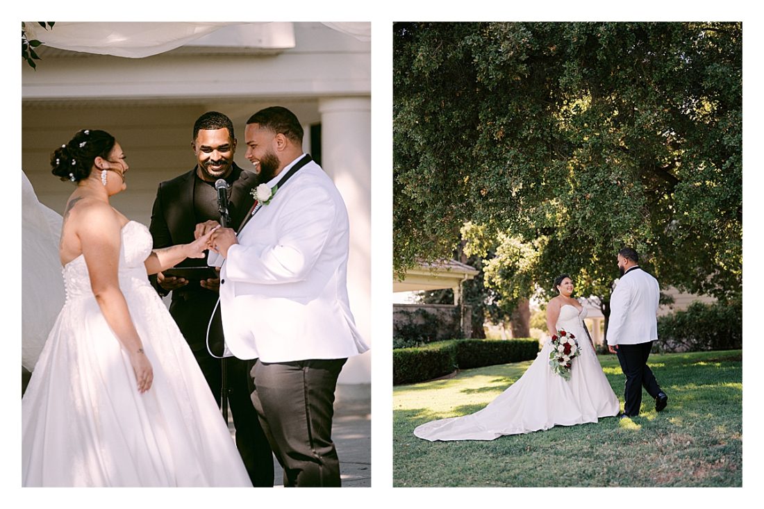 Delta Diamond Farm is situated along the Sacramento River in the beautiful country-side of northern California. Upon arrival, it appeared to be a typical barn wedding venue. Then you walk the cobblestone path to this fairytale wedding venue. The yard is centrally located between a few cottages and a big Southern Style Farmhouse. This is where Kiani and James exchanged vows in front of their family and friends.