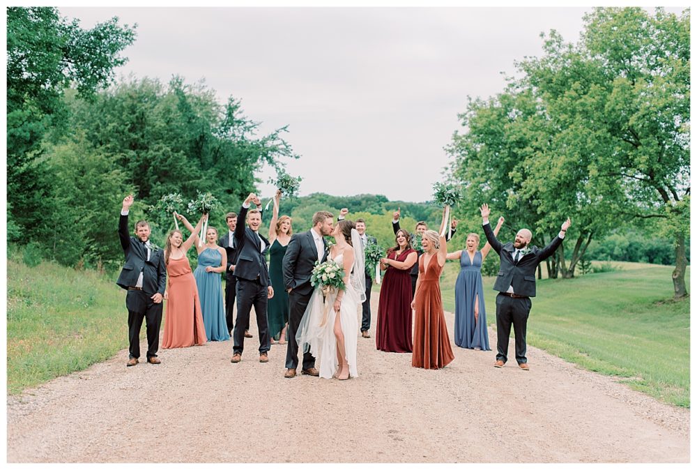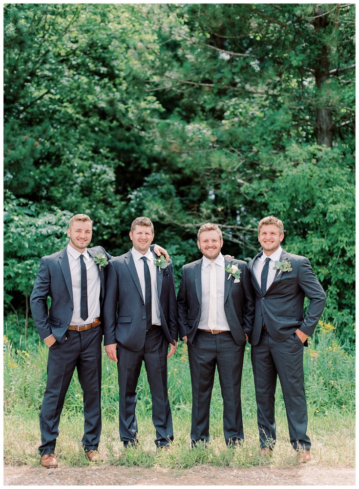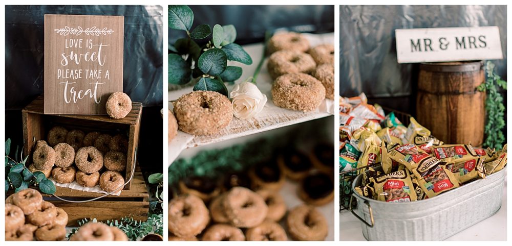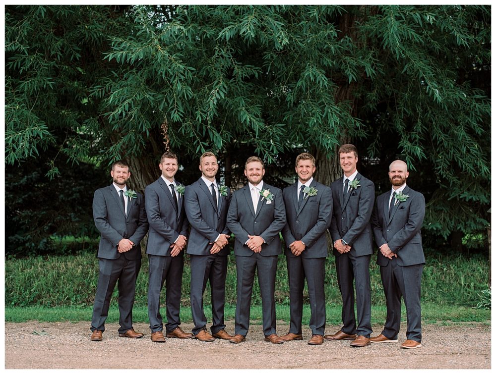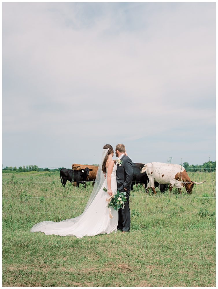 A few of the big details: As soon as we knew we didn’t feel comfortable having the reception inside, we pulled from The Blue Heron in Cold Spring, MN – mind you, with only 3 weeks before the wedding day! Knowing how amazing their food is, we asked if they would be available to cater the wedding, lucky for us it was a go! The Blue Heron was fantastic to work with, I can’t speak of them highly enough. We were able to snag a large outside wedding tent from Sartell Tent Rentals for a reasonable price and it’s a family owned business which we loved. We opted for the renowned (and home based) Cold Spring Bakery for our desserts including an assortment of cake donuts. Our DJ, Mike Chatterton with CP entertainment, kept the party going all nigh, and of course, the venue was generously offered to us by none other than Spencer’s parents. This was by far the best part of the wedding as it made it that much more intimate and memorable – especially since we were able to snag a couple photos with our cow in the background!