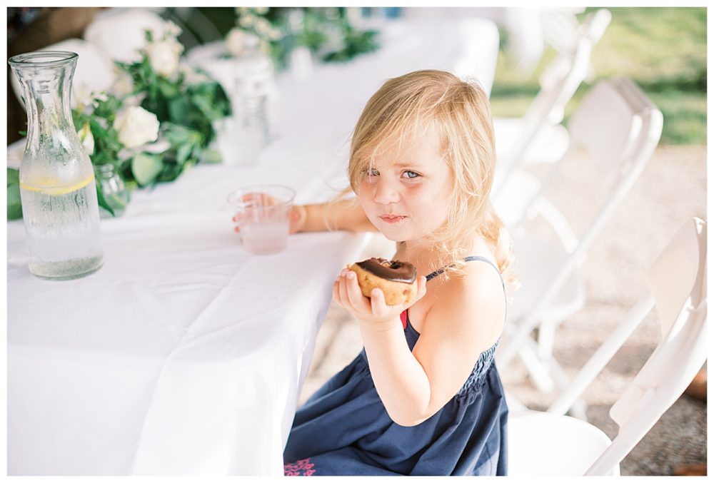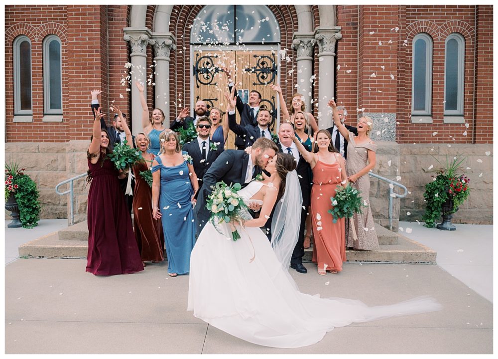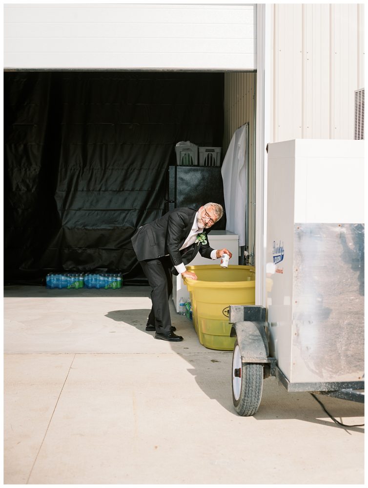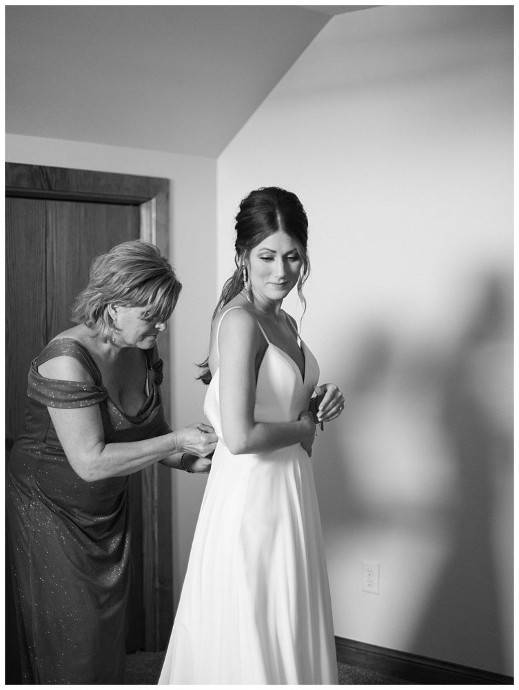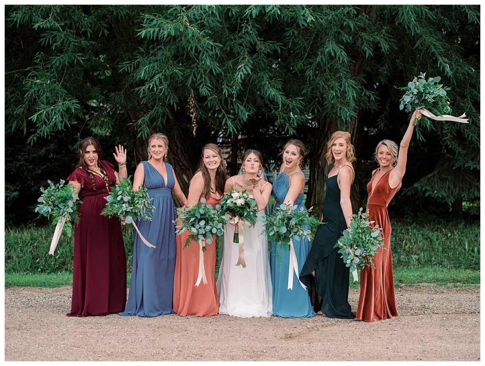 A few of the big details: As soon as we knew we didn’t feel comfortable having the reception inside, we pulled from The Blue Heron in Cold Spring, MN – mind you, with only 3 weeks before the wedding day! Knowing how amazing their food is, we asked if they would be available to cater the wedding, lucky for us it was a go! The Blue Heron was fantastic to work with, I can’t speak of them highly enough. We were able to snag a large outside wedding tent from Sartell Tent Rentals for a reasonable price and it’s a family owned business which we loved. We opted for the renowned (and home based) Cold Spring Bakery for our desserts including an assortment of cake donuts. Our DJ, Mike Chatterton with CP entertainment, kept the party going all nigh, and of course, the venue was generously offered to us by none other than Spencer’s parents. This was by far the best part of the wedding as it made it that much more intimate and memorable – especially since we were able to snag a couple photos with our cow in the background!