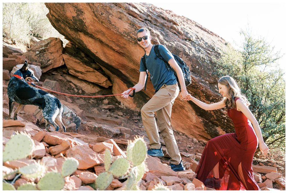 Abby and Matt will be celebrating their Minnesota roots on their wedding day this Fall, so they decided to have their engagement show-off their love for adventure in Sedona in Arizona. Of course it wouldn’t be the same if they left their favorite little hiking pup behind.