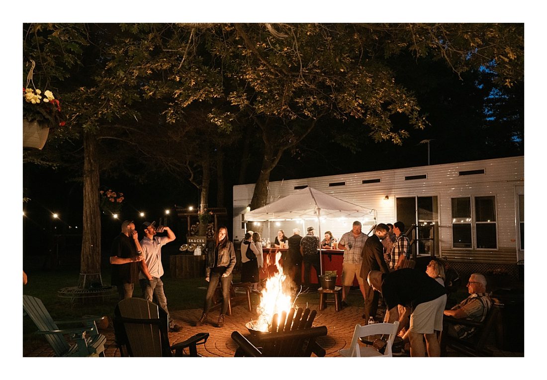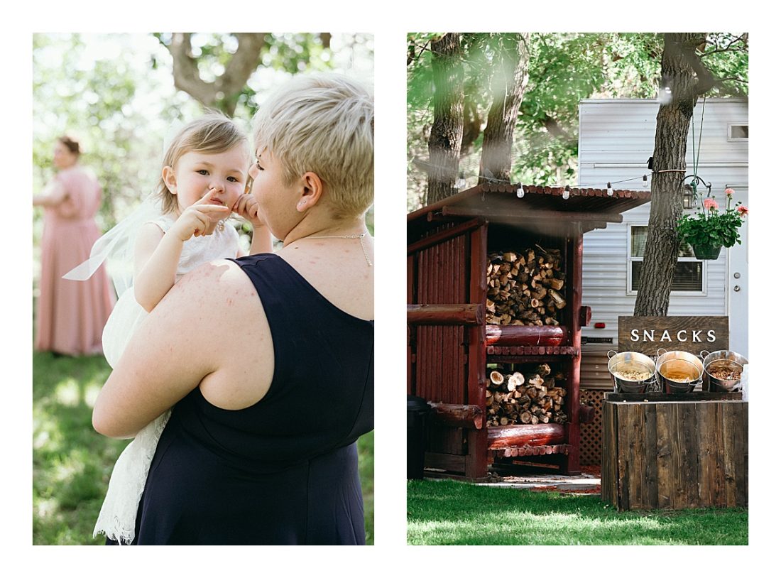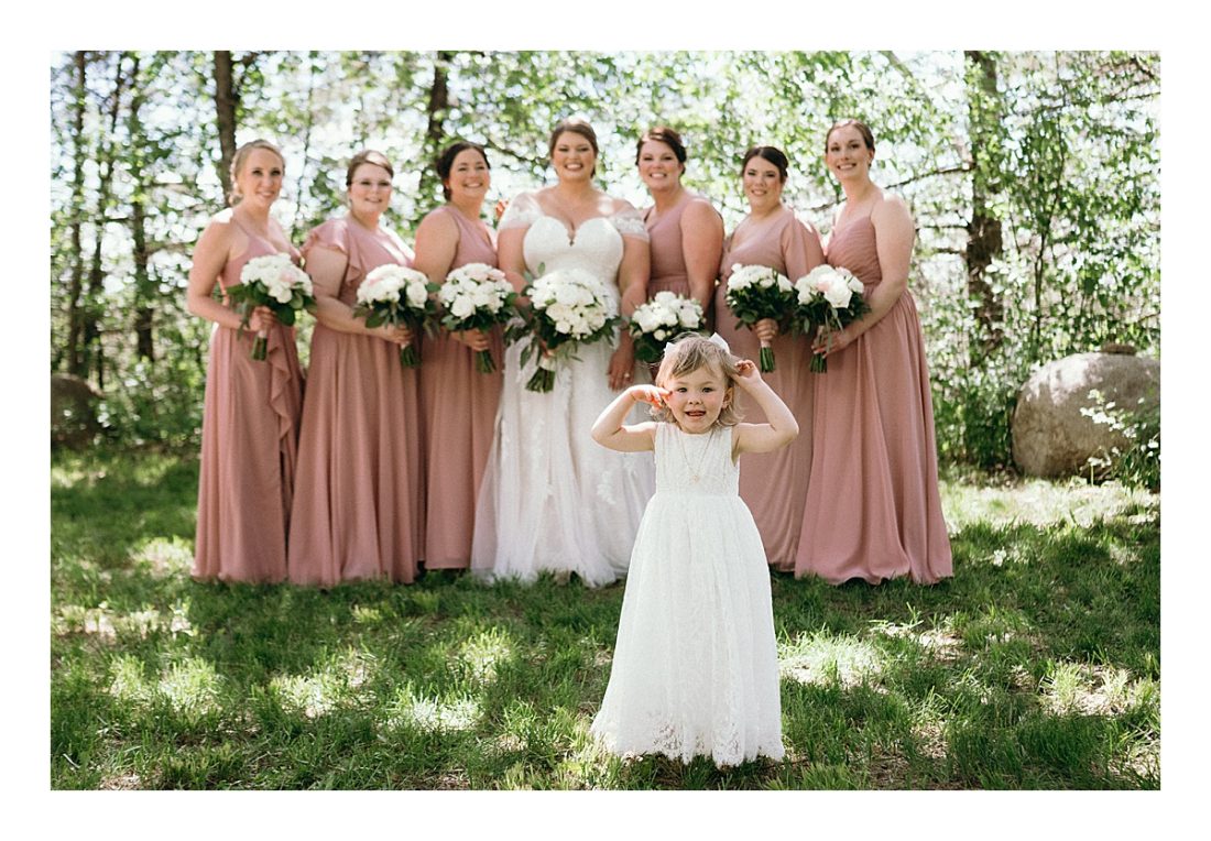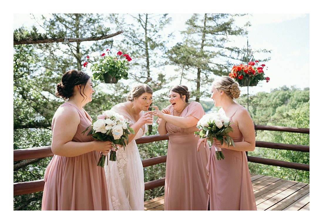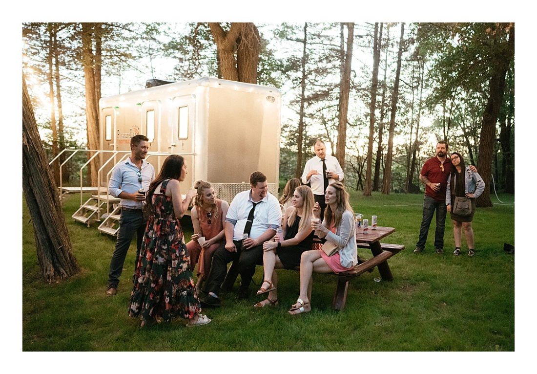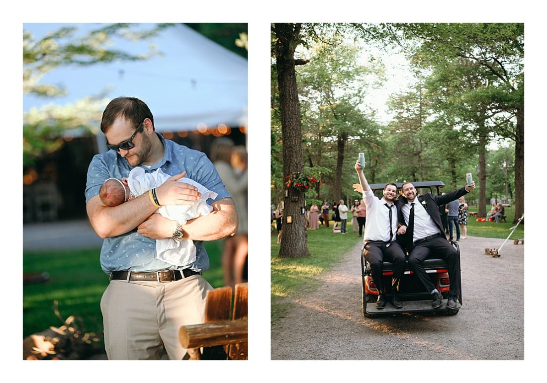 It was a lot of teamwork converting Everette’s family riverside camping and hunting property in Royalton, MN into a full blown wedding venue, but the effort was well worth it. Friends and family gathered under the trees for a sweet little ceremony, before walking the trail or hitching a tractor ride to the custom made reception space. The outdoorsy atmosphere overlooking the river made for an intimate, unique, and FUN experience for all who attended. Guests shared stories around the campfire, took shots by the camper-side bar, played bean bags and danced under the stars long into the evening.