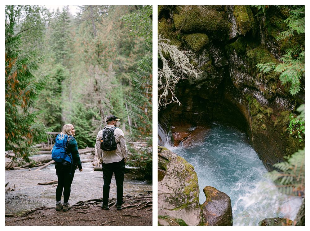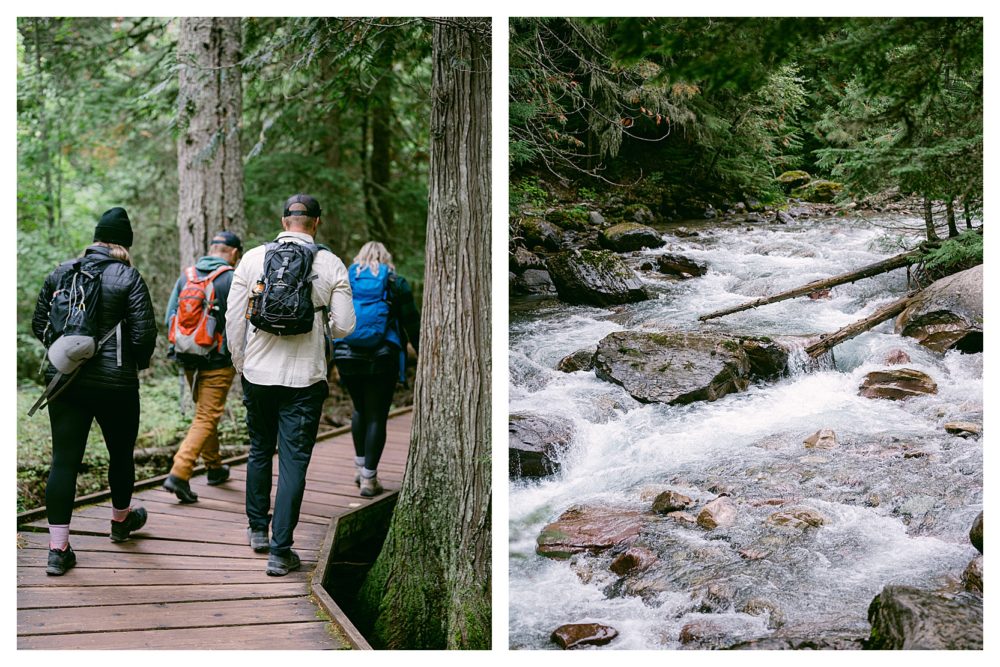 We spent our first day in the park with our friends, driving the famous, Going-To-The-Sun road (a must do) and hiking St. Mary’s Falls. We came back to the campground and grilled dinner & Trisha joined us! The next morning Chad & I got up early, along with Trisha to take a few photos at Lake McDonald. It was breathtaking. Although we didn’t see a bright beautiful sunrise, the fog lifting from the lake was a dream. It was such a peaceful, quiet morning. We then headed to meet our friends at the Avalanche Lake trailhead. It was around 8:30am and parking was already very full. My one recommendation for any National Park hiking—always go early! We had such a fun hike! We even spotted a bear and a few mountain goats on the side of a mountain. Now, if you don’t want to worry about crowds, this isn’t the hike for you. Avalanche Lake is one of the more popular hikes in Glacier because it’s so accessible. The best part was capturing the memories of doing something we love & sharing it with our friends.
