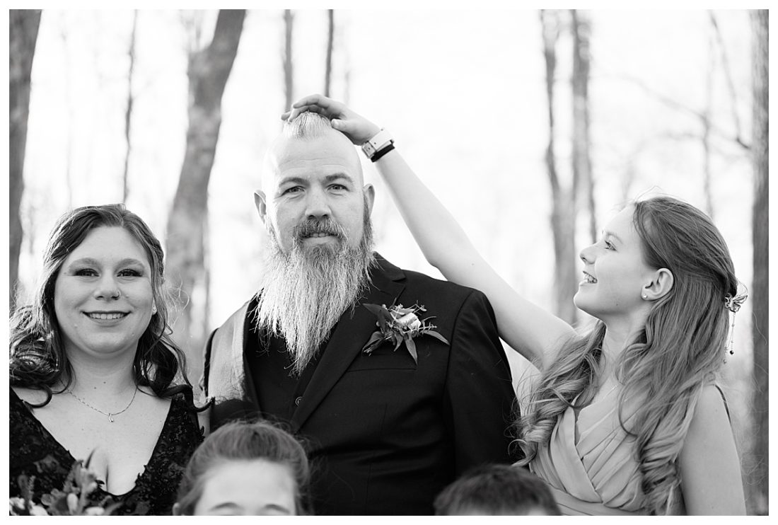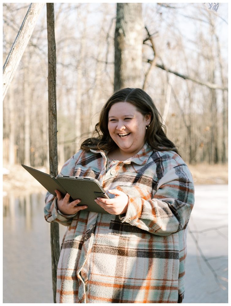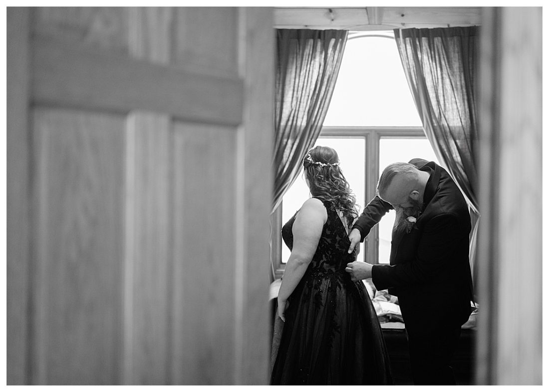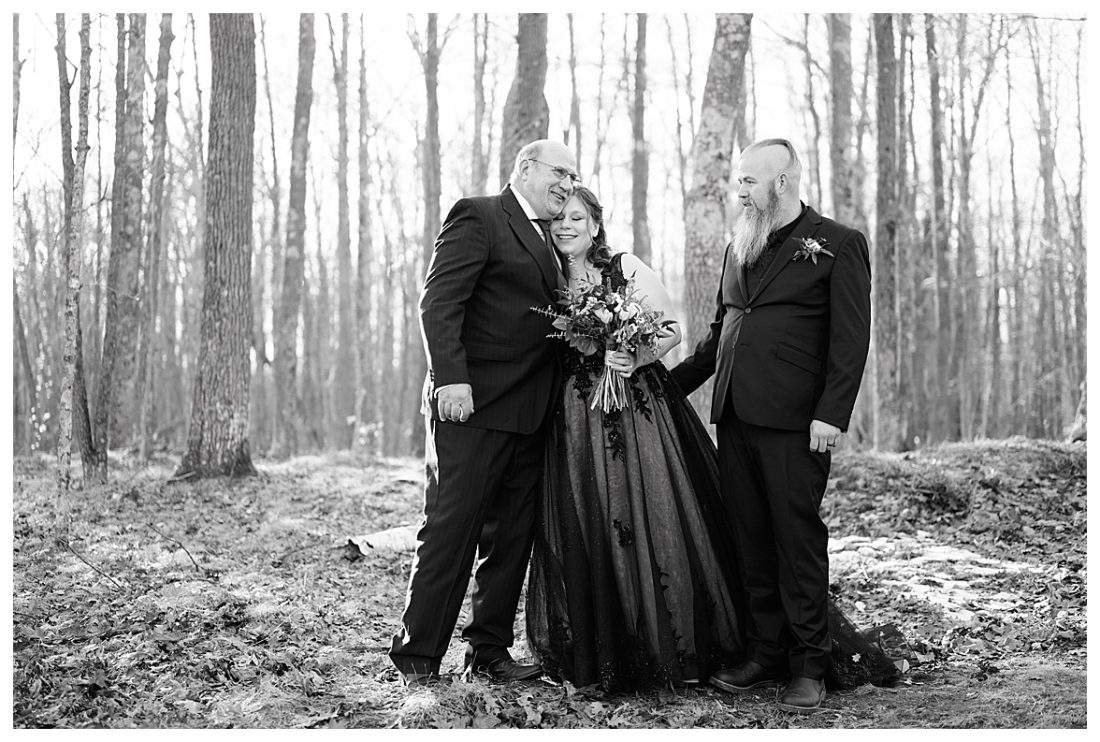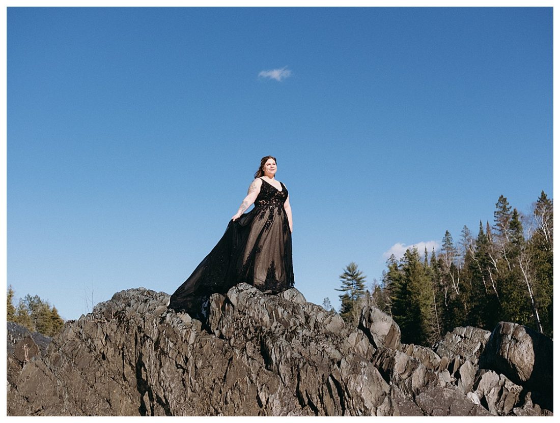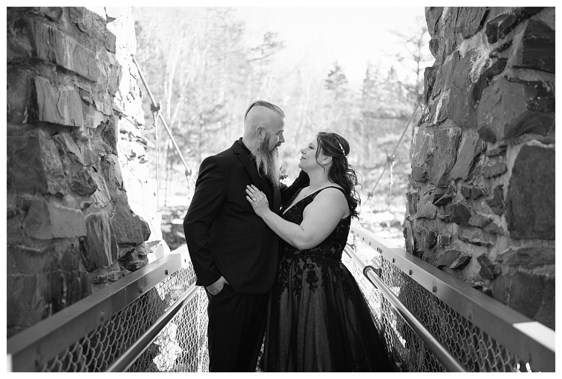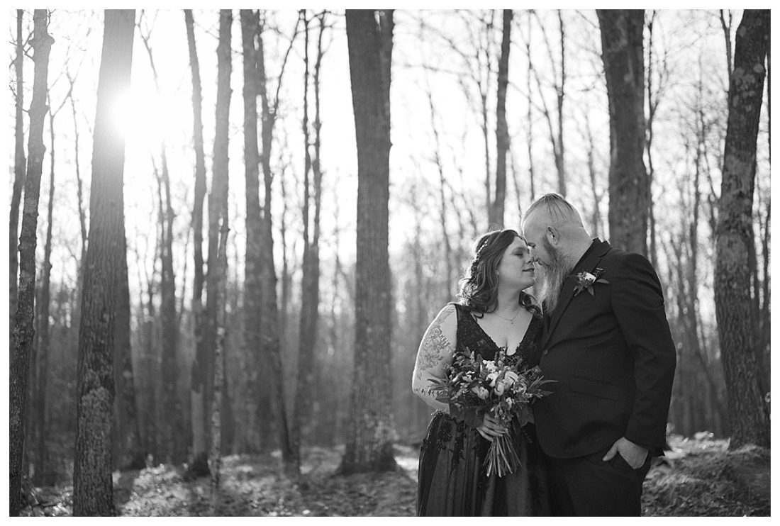Bethany and Ryan decided an adventurous Micro Wedding in northern Minnesota was the perfect fit for them. They both love Jay Cooke State Park so they found an adorable cabin nearby, Juliane James Place. It is tucked away in the woods in the countryside of Finlayson and suitable to host micro-weddings. I would love to go back and visit this beautiful property in the Summer or Fall, because even in the midst of April when nothing is pretty, it was pretty!! Ryan filled the fireplace with fresh cut wood while Bethany got her hair and makeup done by Nikki Popp. Then he helped her get into her stunning black gown. They later hosted an intimate ceremony overlooking a pond and ended the evening with dinner with friends and family. In between getting ready and the ceremony, they privately exchanged vows at their beloved Jay Cooke State Park.