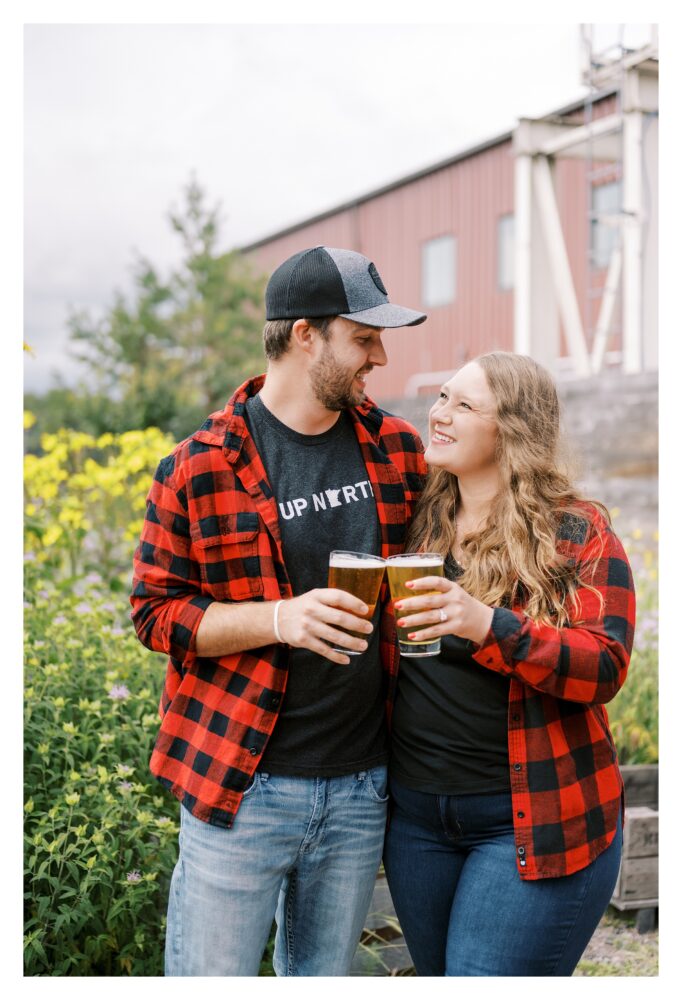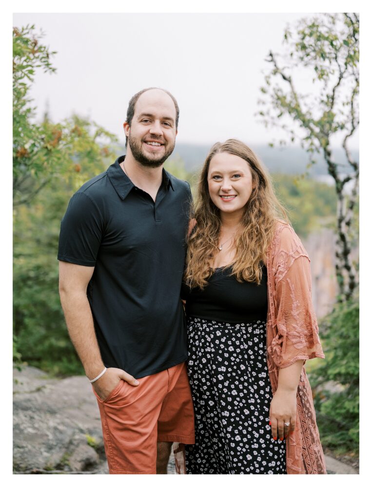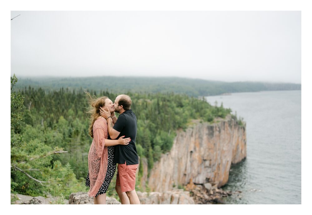Anna and Tyler had one request upon booking their wedding photography with us… a fun, adventurous engagement session on the North Shore of Minnesota. They wanted it to be laid back and peaceful so they could enjoy the views, and of course, one another, as they celebrate this exciting milestone in their lives. We started off at Split Rock Lighthouse before heading north to the iconic Palisade Head Overlook. The misty morning provided the most romantic atmosphere. After exploring the Lake Superior views, we all enjoyed a locally made beer at Castle Danger in Two Harbors. After departing, the two of them made their way to Gooseberry State Park where they booked a campsite for the evening.