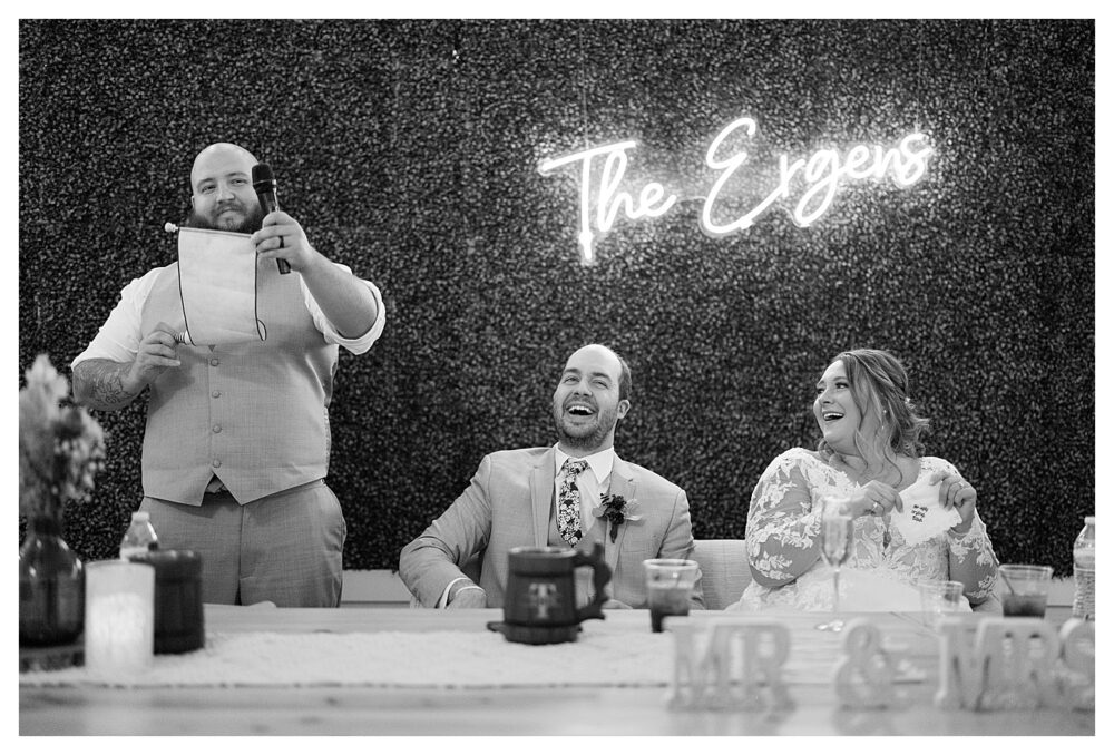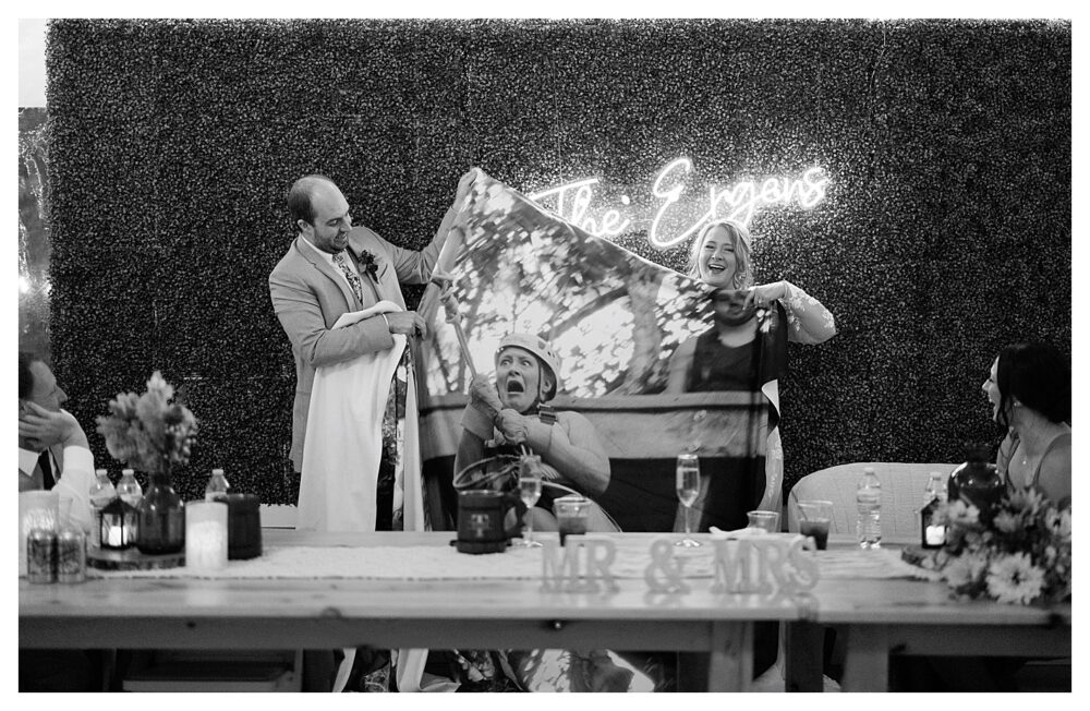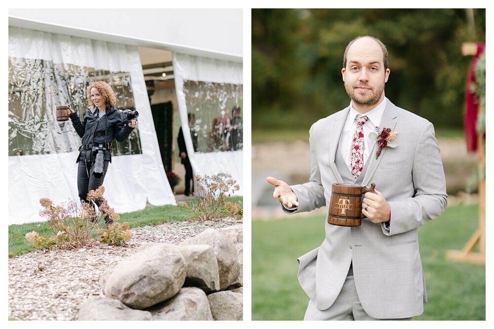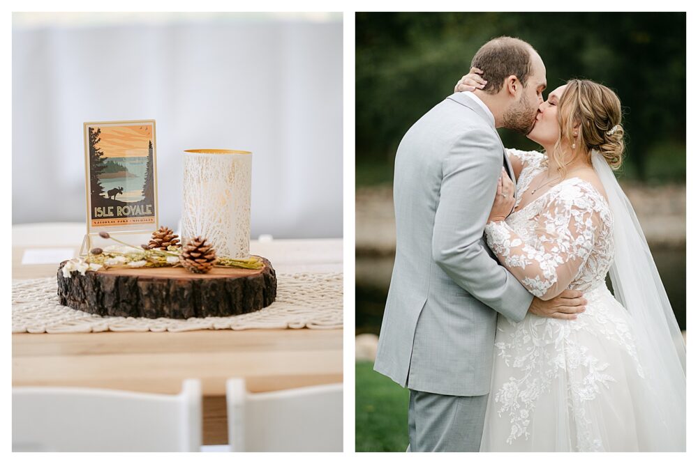 Anna and Tyler are both outdoor enthusiasts who share a love for travel, especially to National Parks, so a wedding at the beautiful Northern Oaks venue was the perfect fit for them. They were surrounded by all their closest friends and family, and beautiful nature. What more could they ask for?! A large white tent placed near the woods and pond hosted their dinner and dance reception. It was perfectly decorated with National Park inspiration, which was probably my favorite decor ever documented at a wedding…and I’ve been to hundreds of weddings;)
