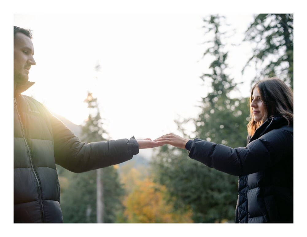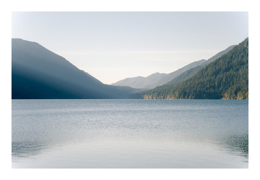 On most Winter days in Olympic National park you can expect the iconic Washington fog and mist. Or straight up rain. At least that’s what I was expecting, but as soon as we finished the hike we had nothing but clear skies and sun. I know, I know…yay!! Well, I personally was hoping for the moody romantic fog, but one thing I’ve learned from being an elopement photographer is you need to embrace the weather mother nature gives you or you’re setting yourself up for disappointment. Once I accepted that I wasn’t going home with that subtle fine art, moody look I had in mind, I allowed myself to enjoy the sun on my face and the incredible views of Lake Crescent..