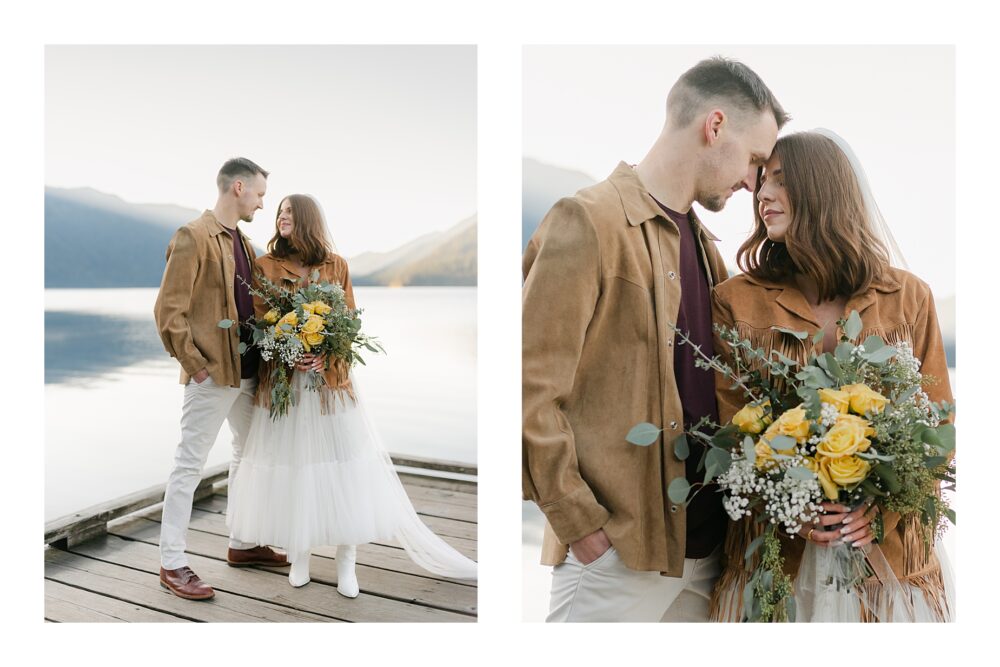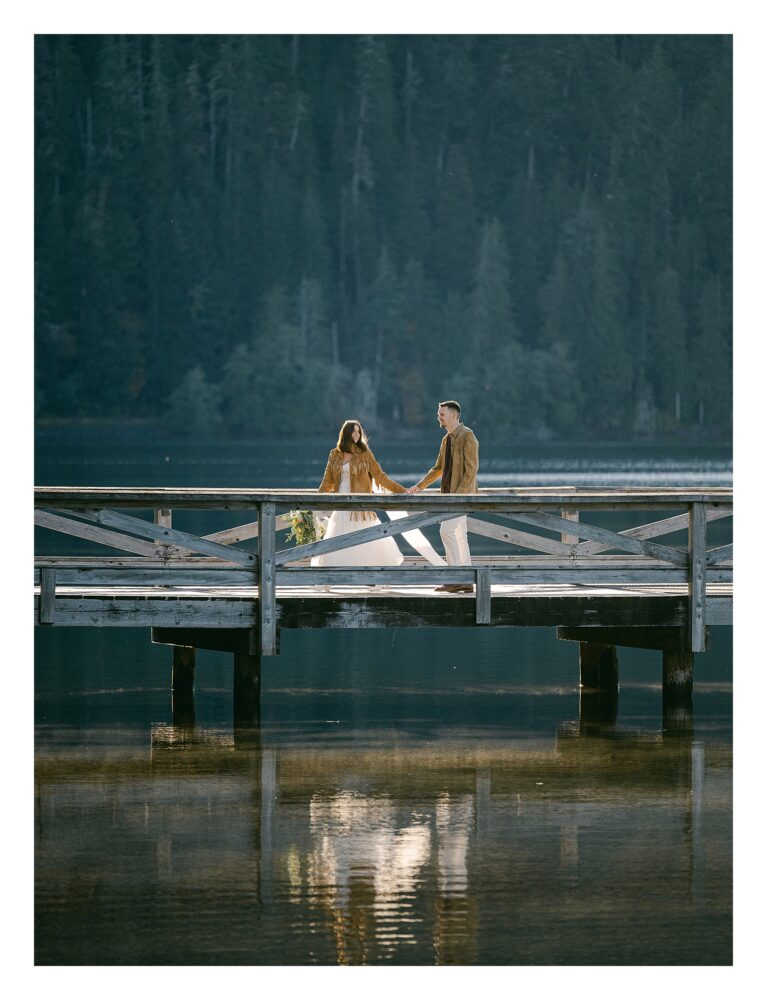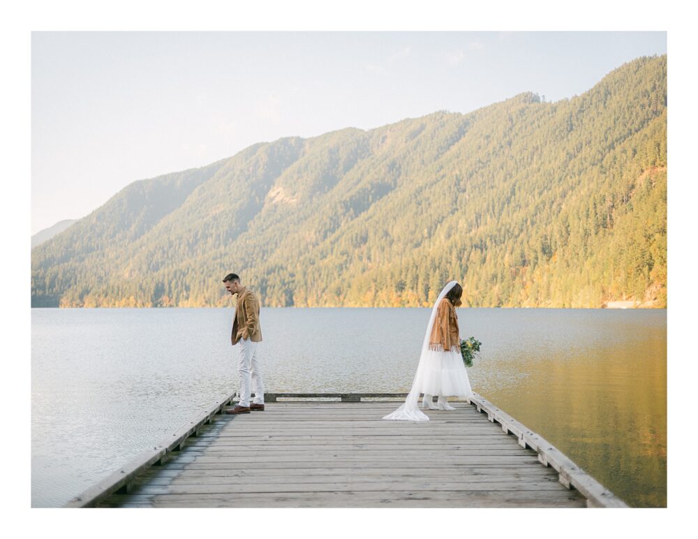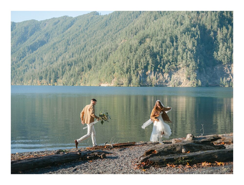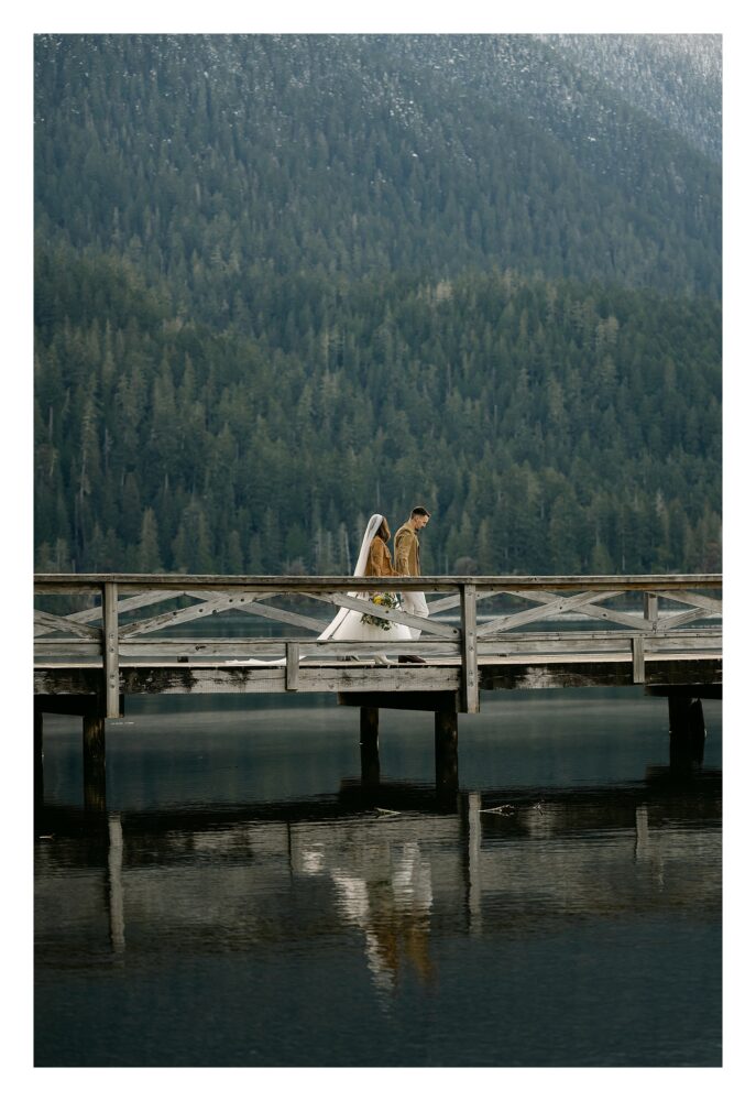 This early winter elopement takes place in the serene Northwest corner of the United States, Olympic National Park of Washington. The park sprawls across several different ecosystems, from the dramatic peaks of the Olympic Mountains to old-growth forests. Since we aren’t professional rock climbers, we kept it simple and hiked to Marymere Falls before taking in the views of Lake Crescent.