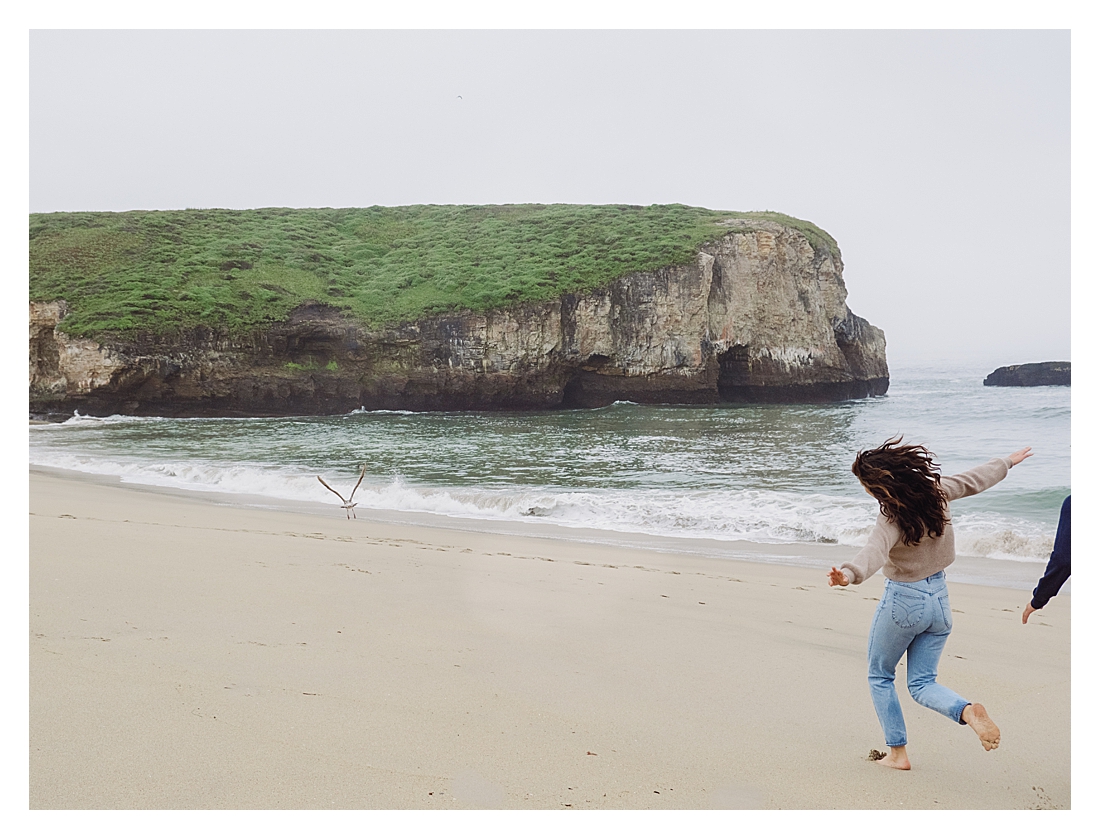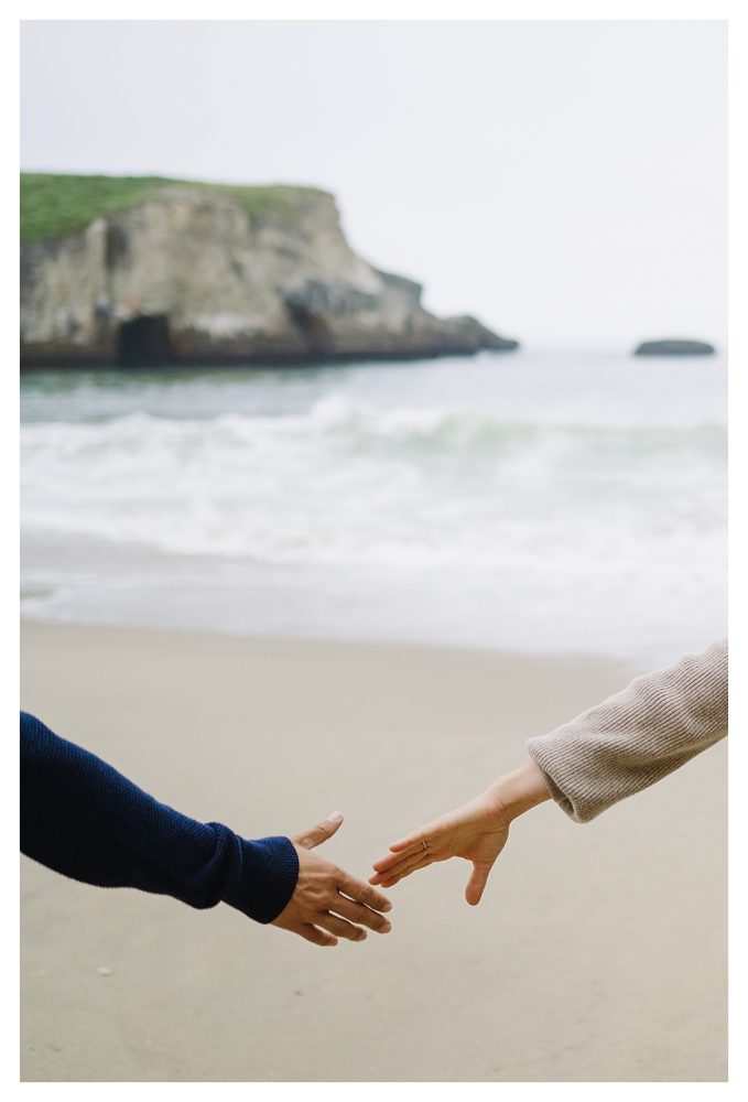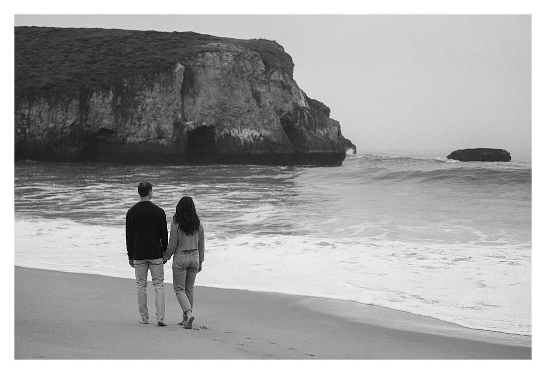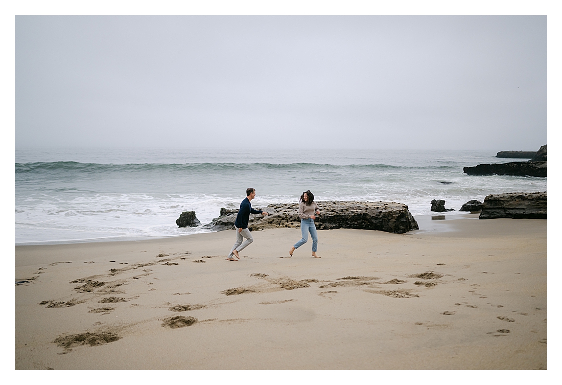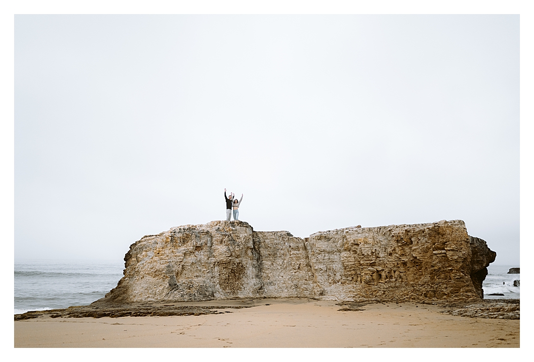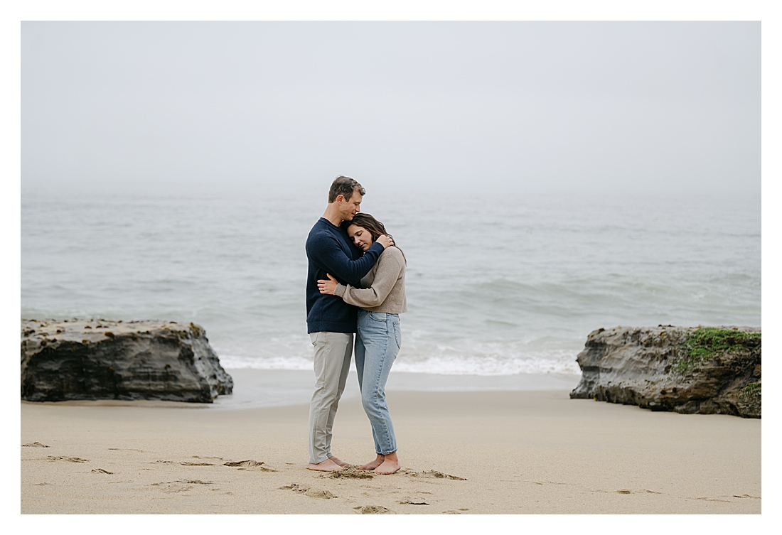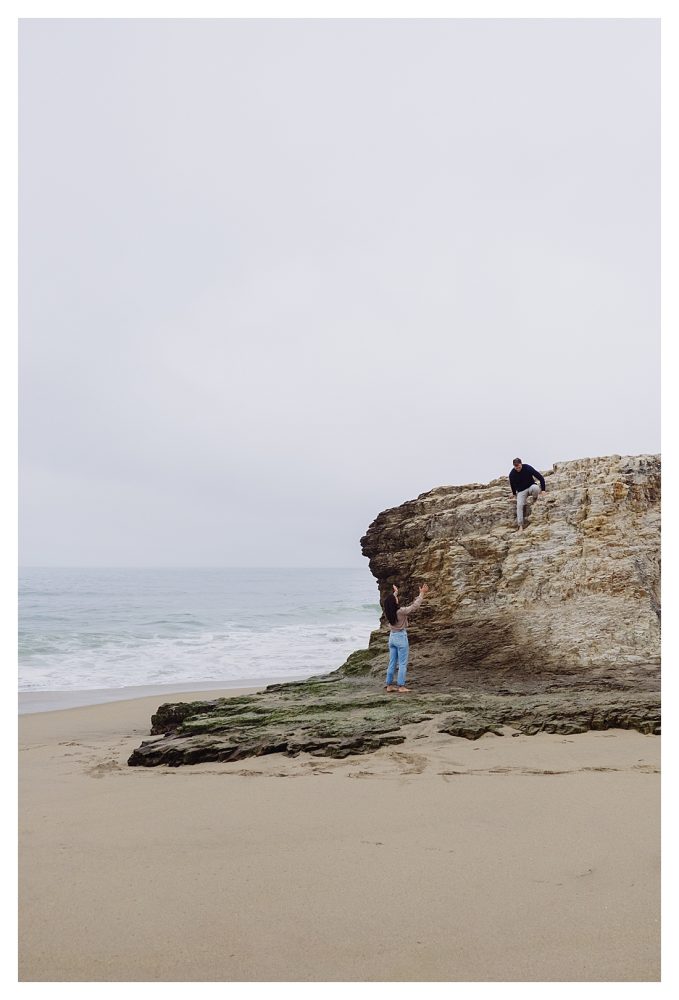 Nicole and Kyle met me at one of the prettiest beaches near Santa Cruz for their engagement session. We initially were going to meet at Shark Fin Cove, but I fell in love with this beach the day before when scouting the area. We planned for sunrise in case it was sunny and bright, but the misty fog rolling along the coast gave us the most romantic ambiance regardless of lighting. The early morning engagement session also allowed for them to head out and enjoy some biking in the Santa Cruz mountains after. I love that they planned a whole fun adventure together to celebrate their engagement vs just a posed photoshoot. Even their beach session was natural and enjoyable. We all loved every second of it!!