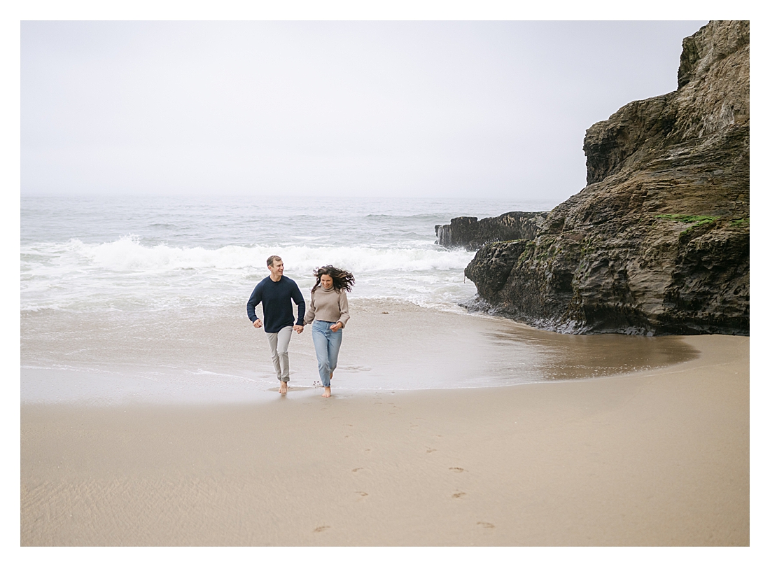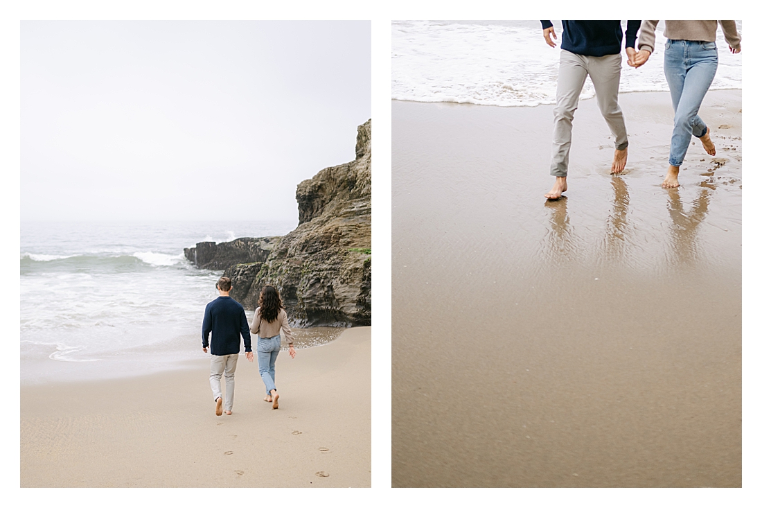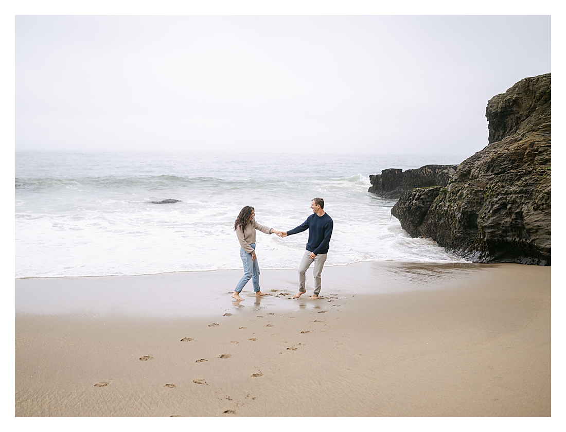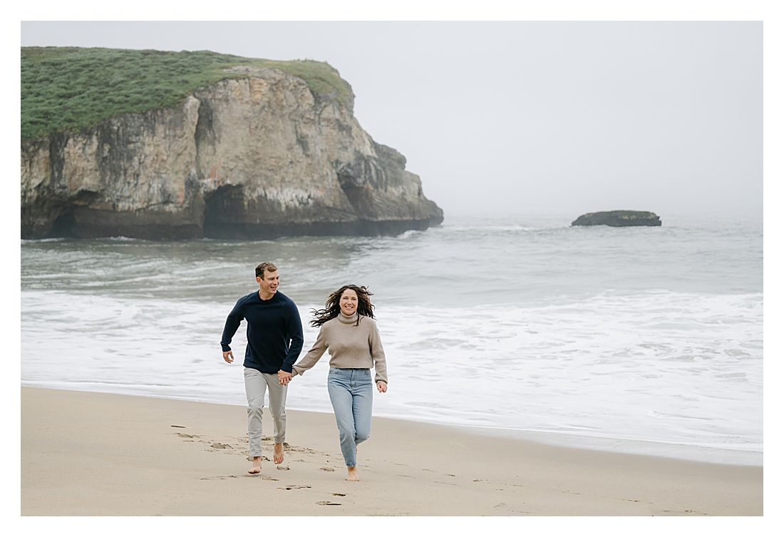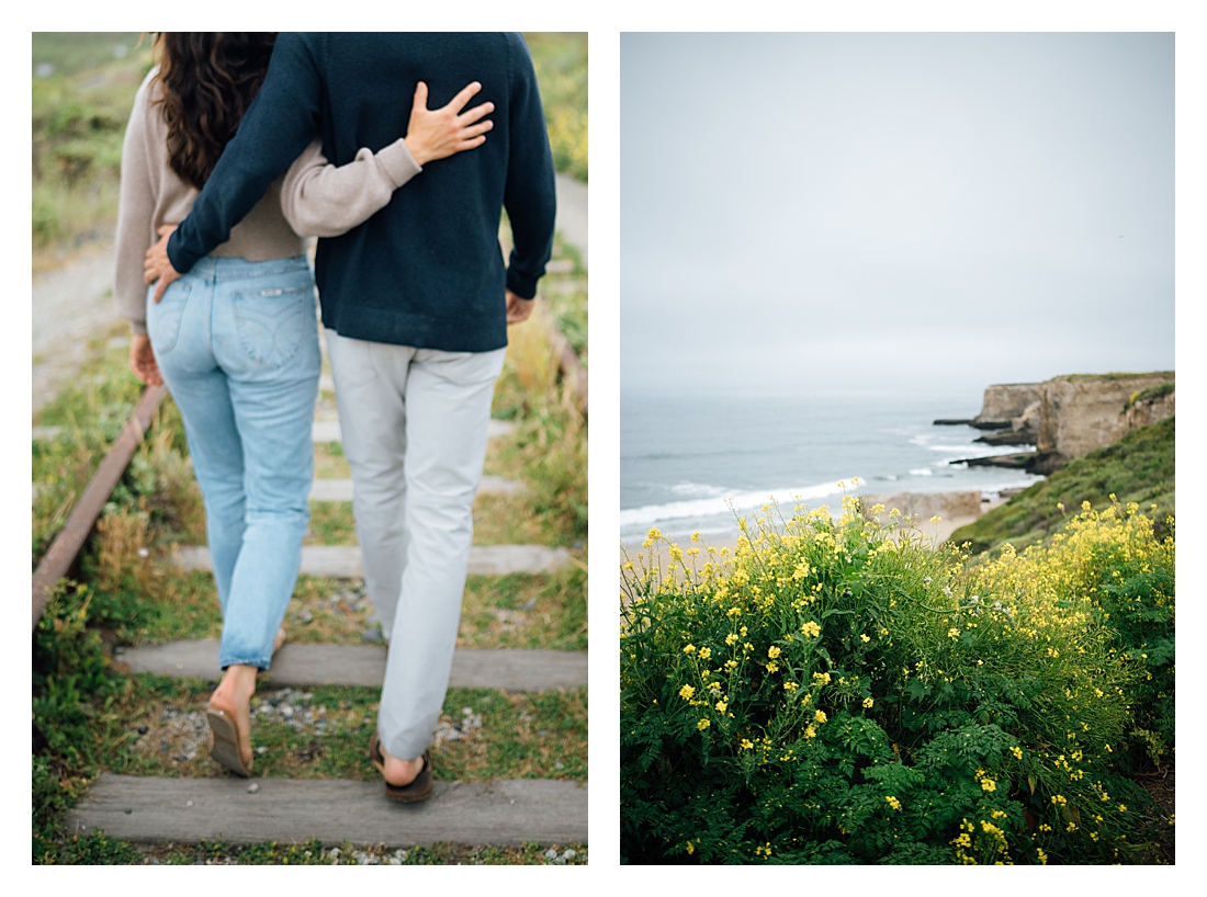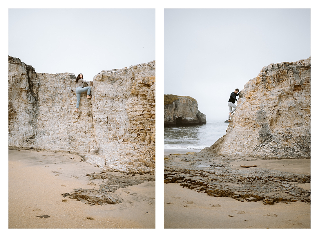 Nicole and Kyle met me at one of the prettiest beaches near Santa Cruz for their engagement session. We initially were going to meet at Shark Fin Cove, but I fell in love with this beach the day before when scouting the area. We planned for sunrise in case it was sunny and bright, but the misty fog rolling along the coast gave us the most romantic ambiance regardless of lighting. The early morning engagement session also allowed for them to head out and enjoy some biking in the Santa Cruz mountains after. I love that they planned a whole fun adventure together to celebrate their engagement vs just a posed photoshoot. Even their beach session was natural and enjoyable. We all loved every second of it!!