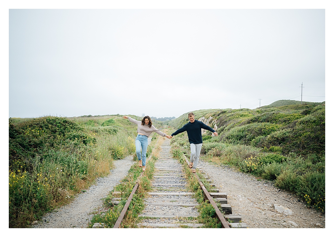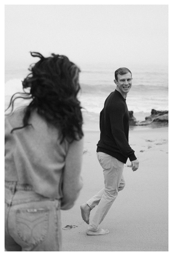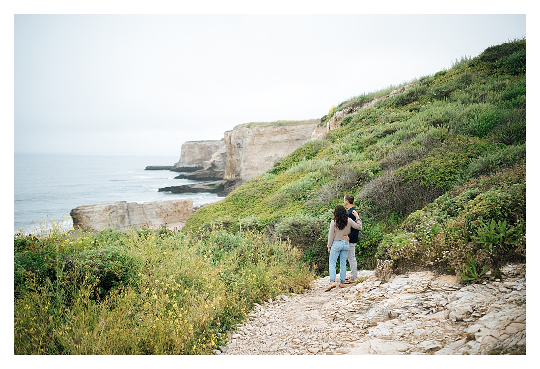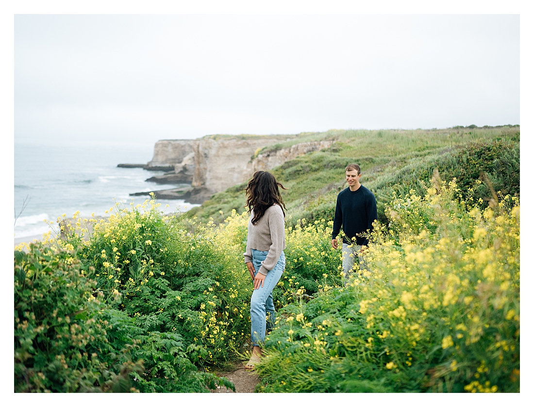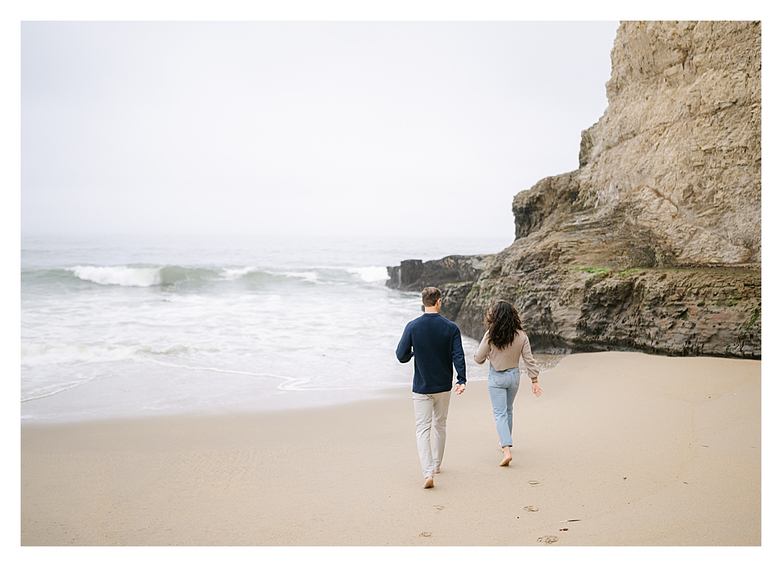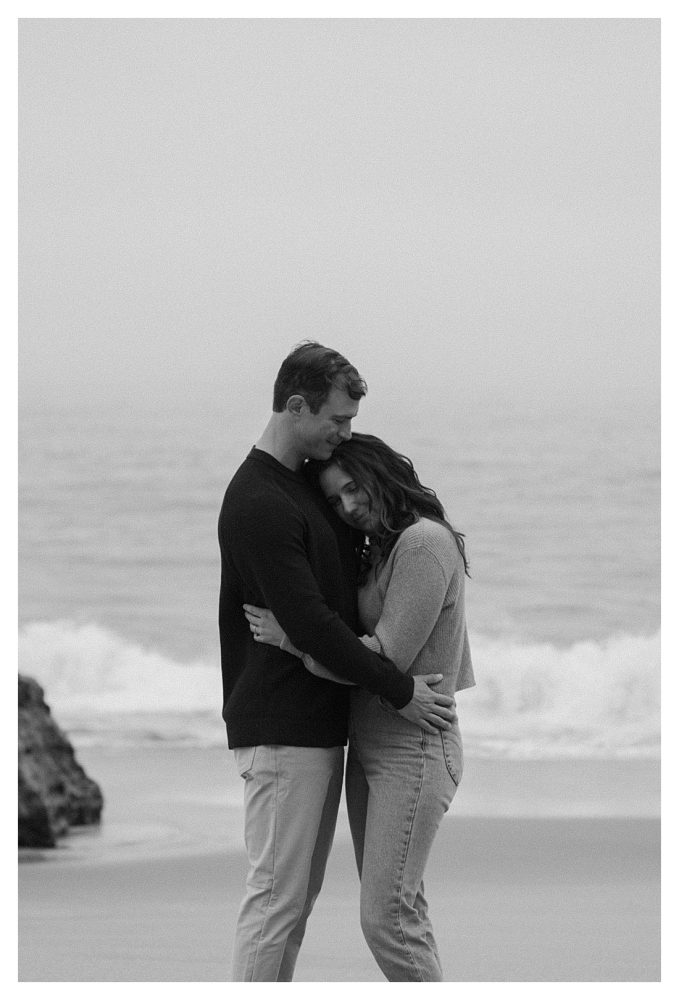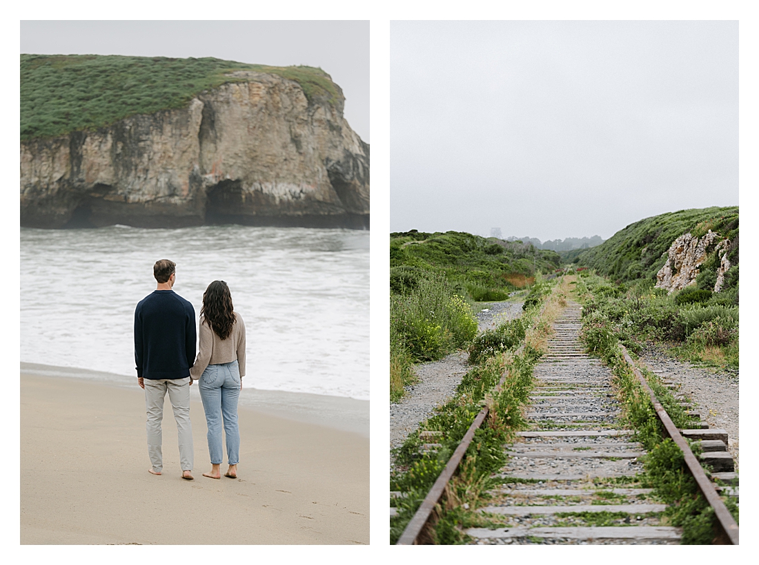 Nicole and Kyle met me at one of the prettiest beaches near Santa Cruz for their engagement session. We initially were going to meet at Shark Fin Cove, but I fell in love with this beach the day before when scouting the area. We planned for sunrise in case it was sunny and bright, but the misty fog rolling along the coast gave us the most romantic ambiance regardless of lighting. The early morning engagement session also allowed for them to head out and enjoy some biking in the Santa Cruz mountains after. I love that they planned a whole fun adventure together to celebrate their engagement vs just a posed photoshoot. Even their beach session was natural and enjoyable. We all loved every second of it!!