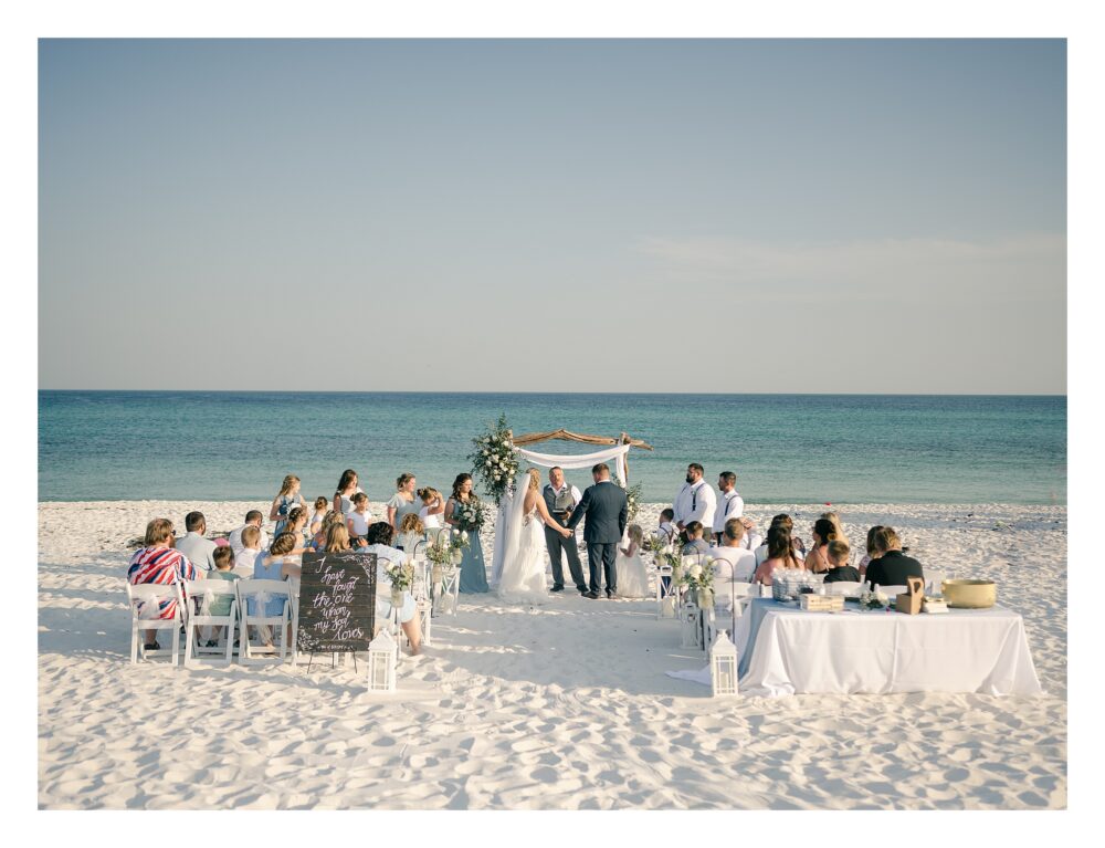 When you’ve dated for 13 years and already raised 5 beautiful, smart, confident and well mannered daughters, how do you get married? You gather the crew and make a vacation out of it!! Nicole and Andy brought their girls and immediate family to Pensacola Beach, Florida for a small destination wedding. They endured the heat to avoid the crowds. By endure…I mean, over 100 degrees in full sun. You’d never know it by these smiles and happy faces though. They remained true to the meaning of marriage through it all. The kids were overjoyed to see mom and dad officially become husband and wife. And the cool ocean water helped keep the guests happy:)