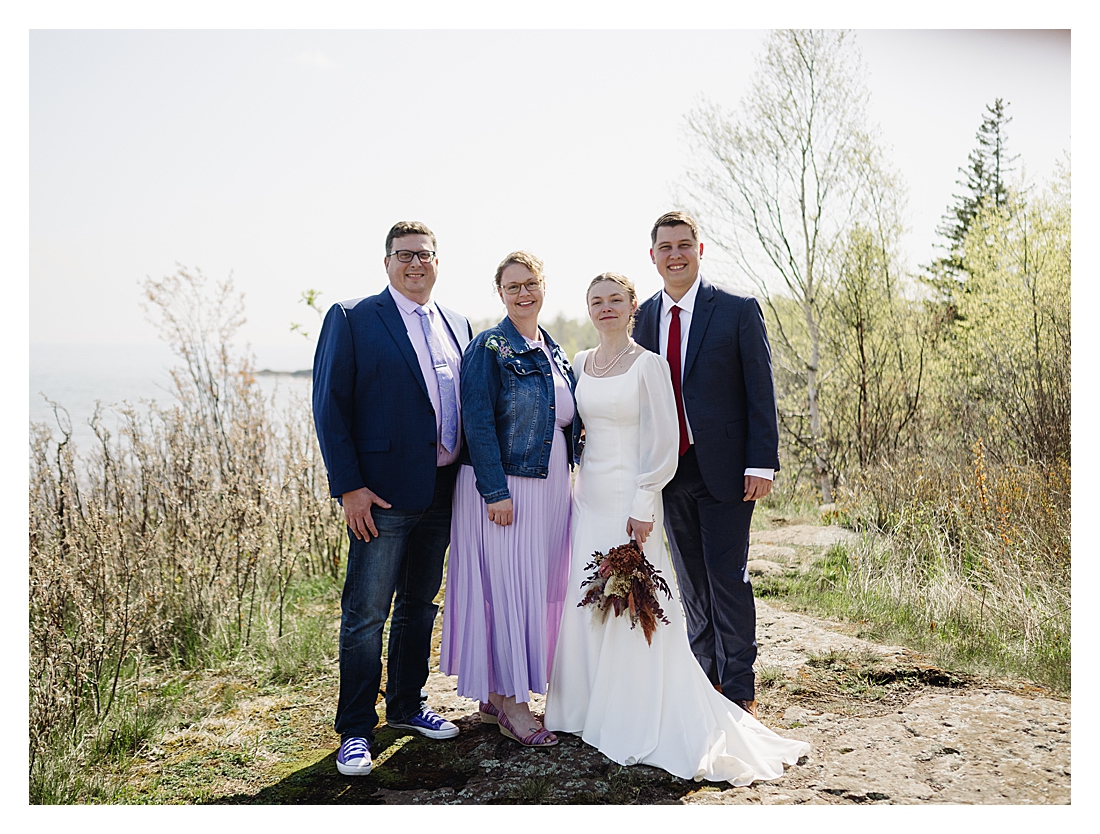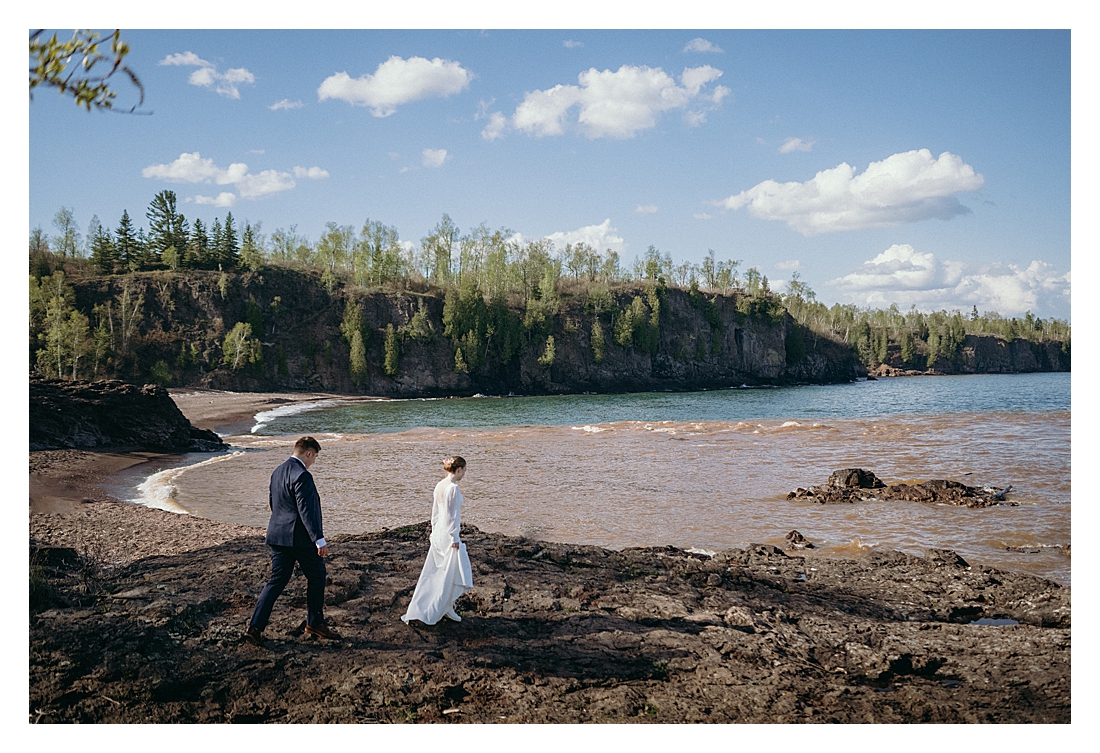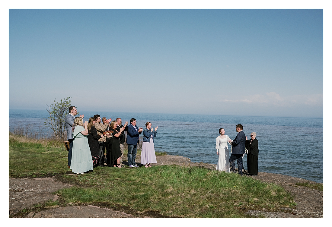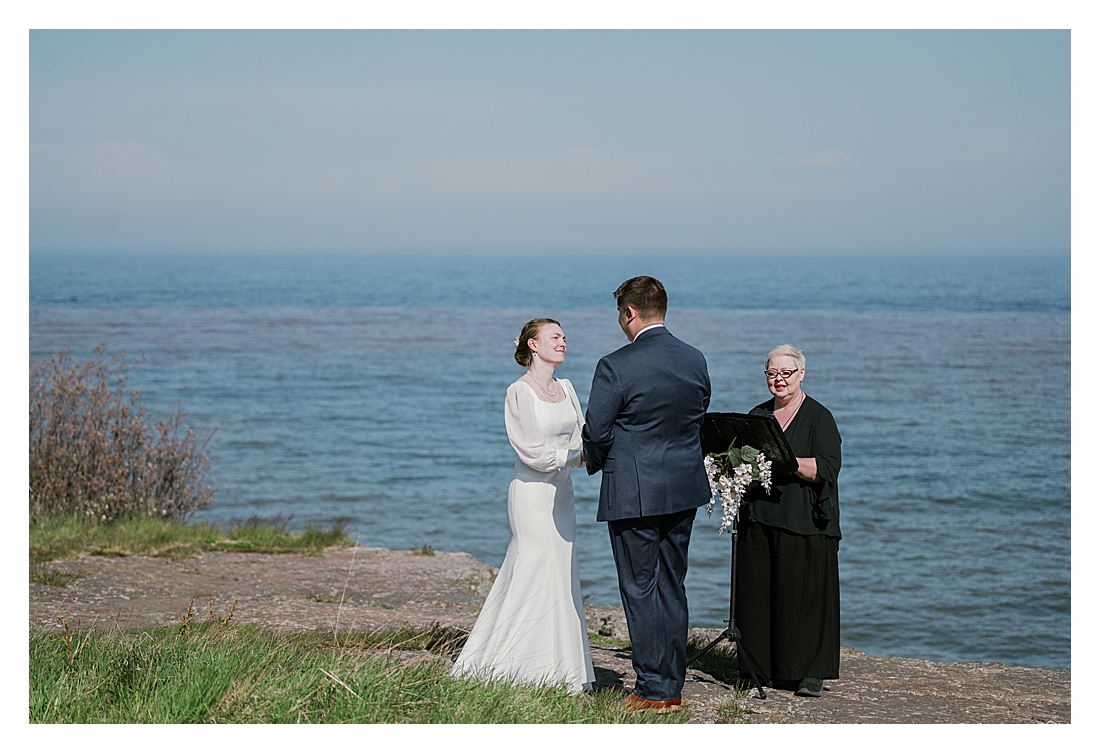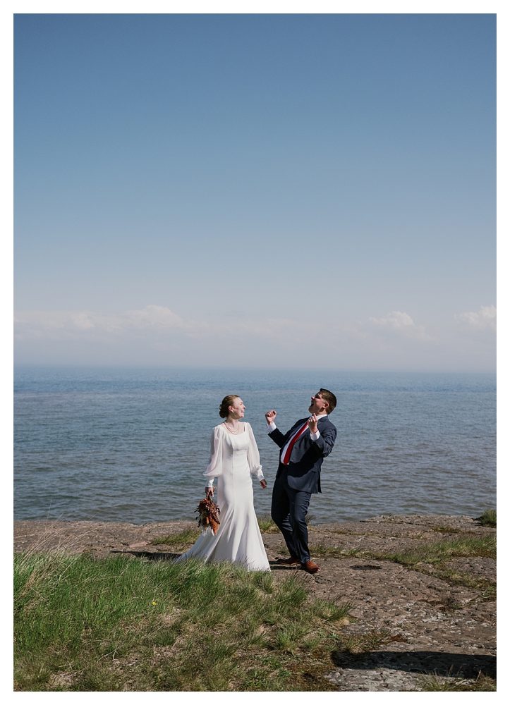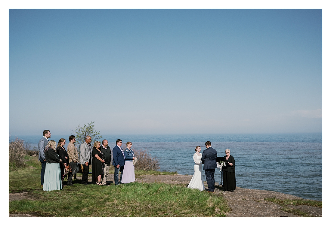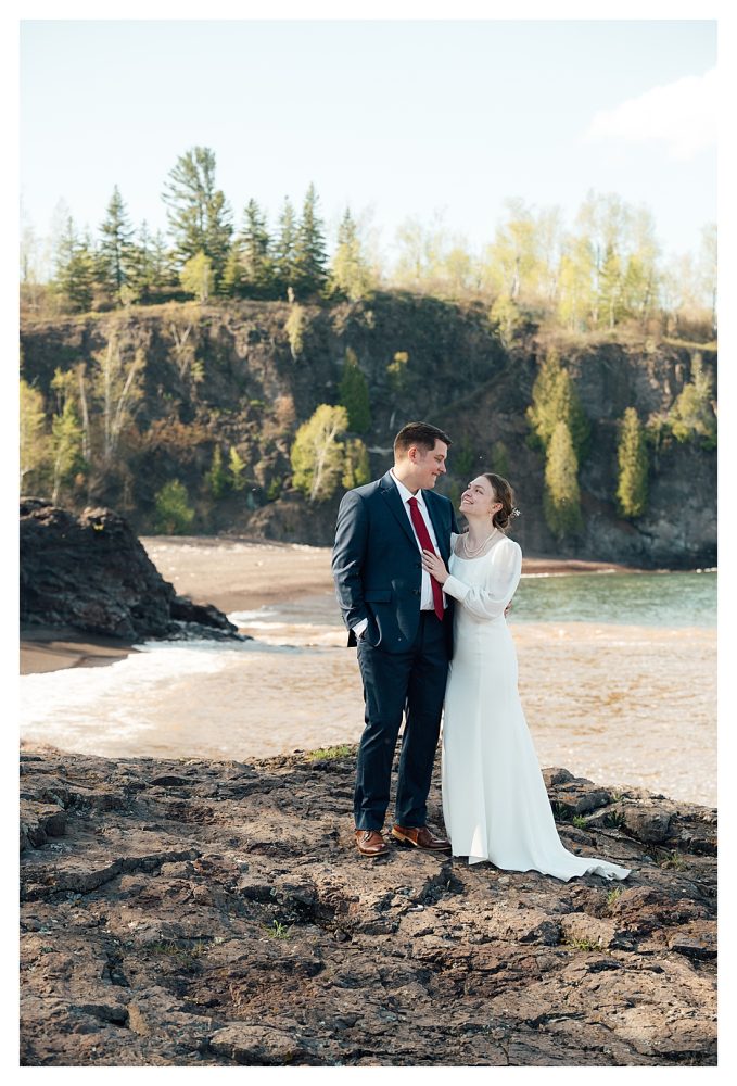 Faith and Bobby mutually decided a small intimate wedding at Gooseberry Falls State Park was the perfect for for them. They both love the scenic views of the North Shore along Lake Superior, and its proximity to their family members who could get there easily under 3 hours from the Cities. The two of them exchanged vows in a private area on the cliffs surrounded by only their immediate family members and best friends who served as witnesses. It was a couple hours from the time they shared their first look to the final photo, and it served for the perfect amount of time to accomplish their ultimate goal of becoming husband and wife, while also being present and truly connecting with each other and their guests.