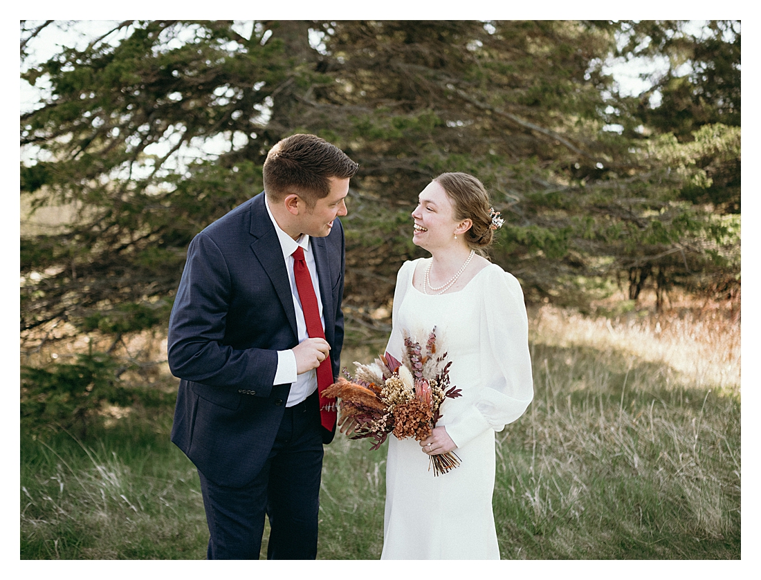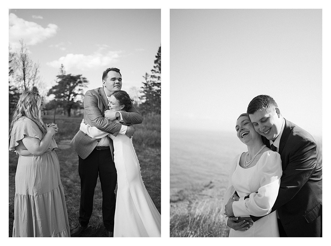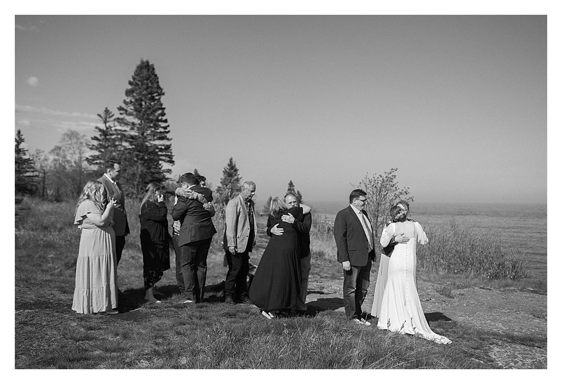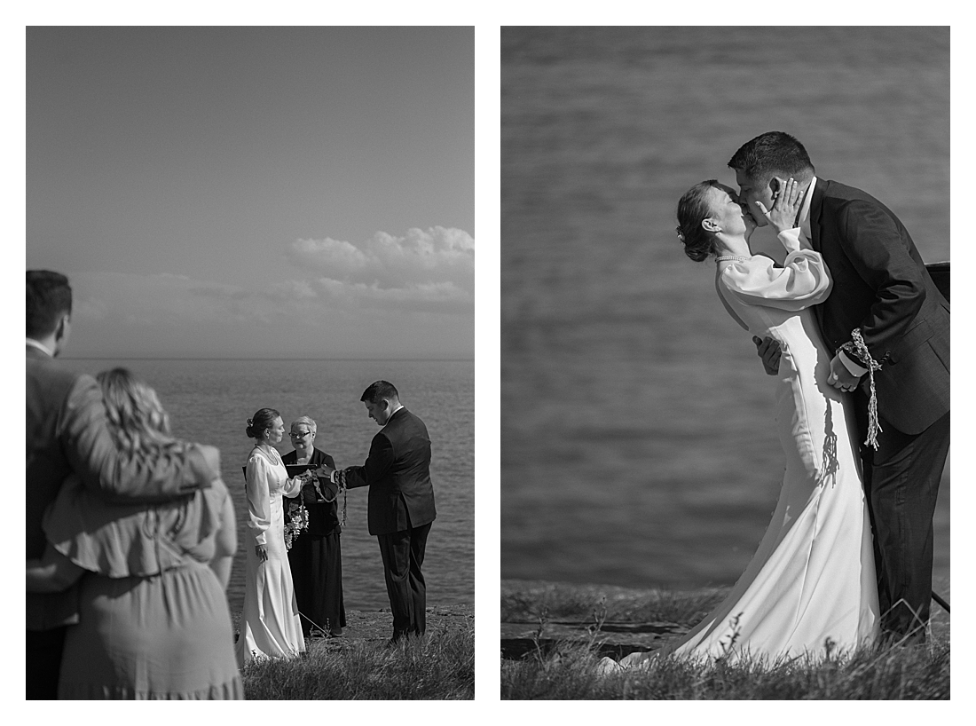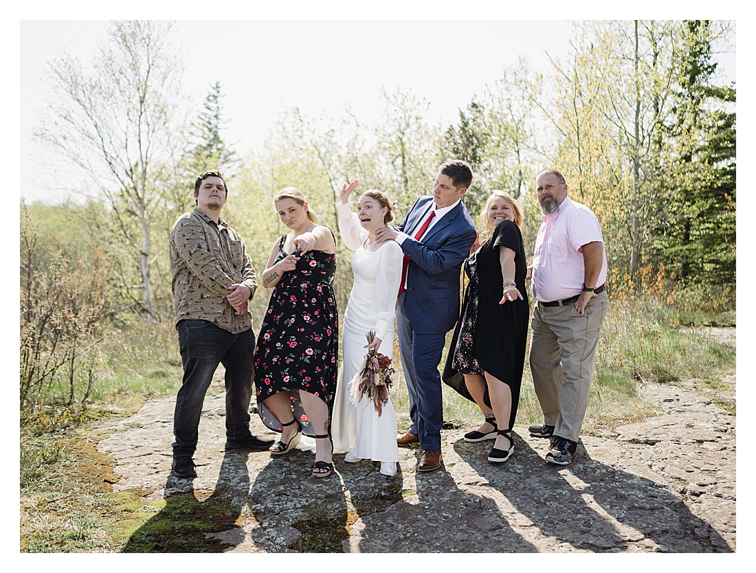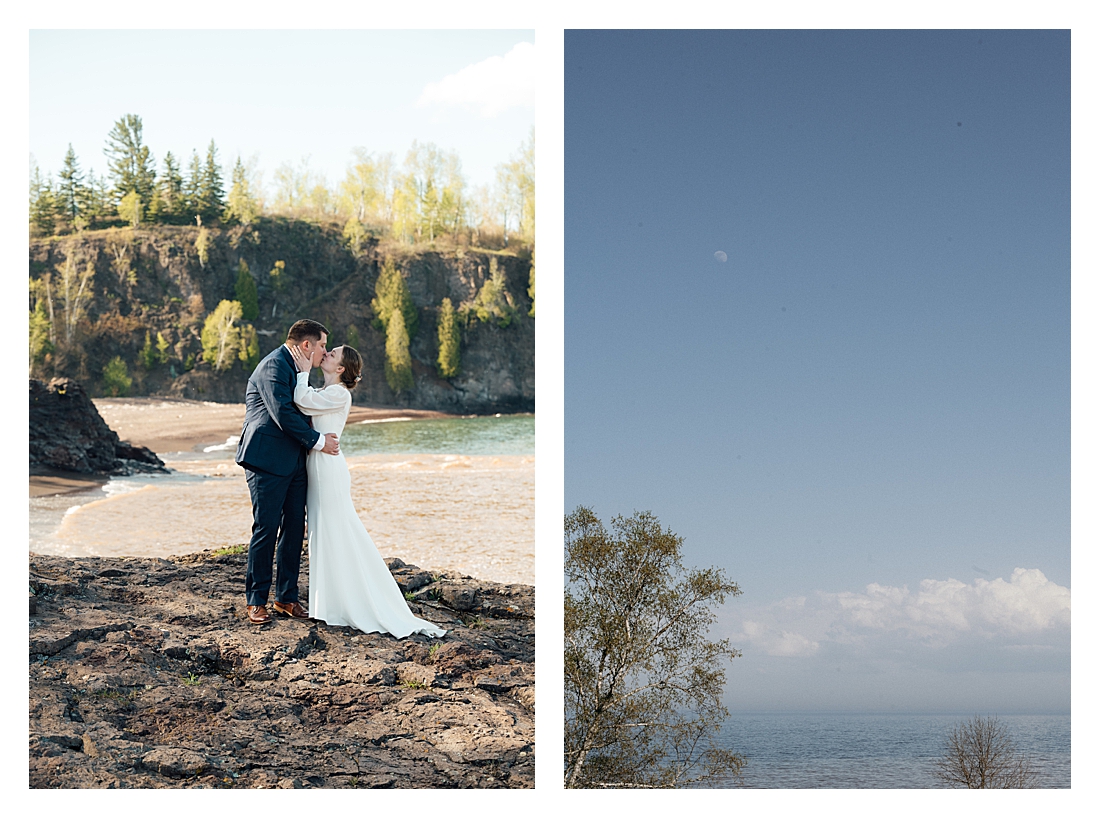 Faith and Bobby mutually decided a small intimate wedding at Gooseberry Falls State Park was the perfect for for them. They both love the scenic views of the North Shore along Lake Superior, and its proximity to their family members who could get there easily under 3 hours from the Cities. The two of them exchanged vows in a private area on the cliffs surrounded by only their immediate family members and best friends who served as witnesses. It was a couple hours from the time they shared their first look to the final photo, and it served for the perfect amount of time to accomplish their ultimate goal of becoming husband and wife, while also being present and truly connecting with each other and their guests.