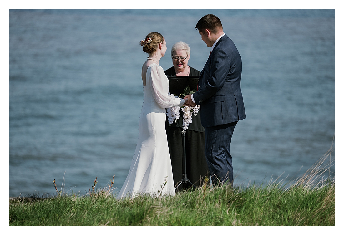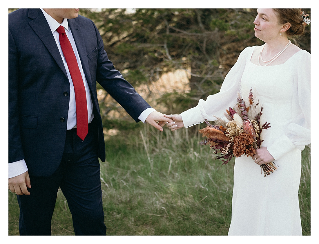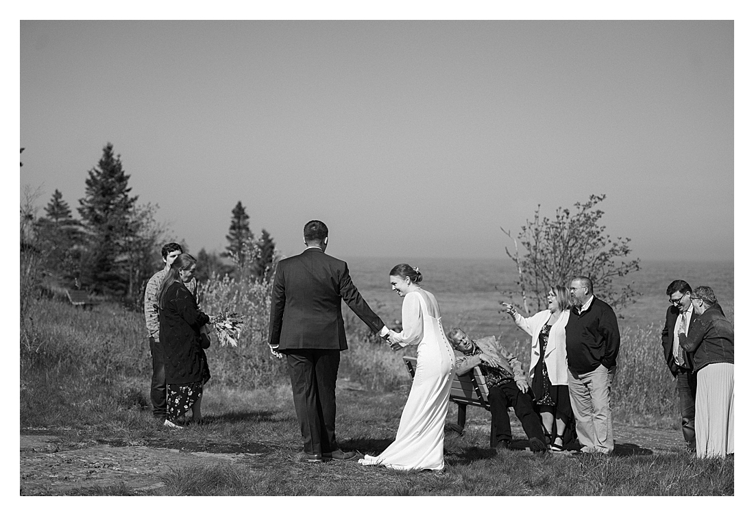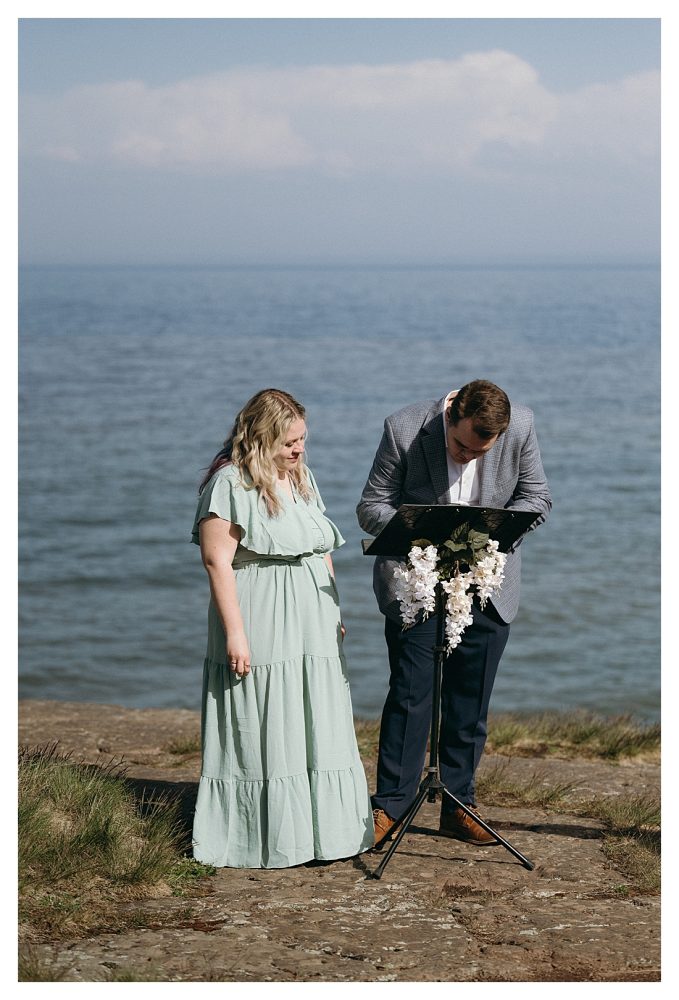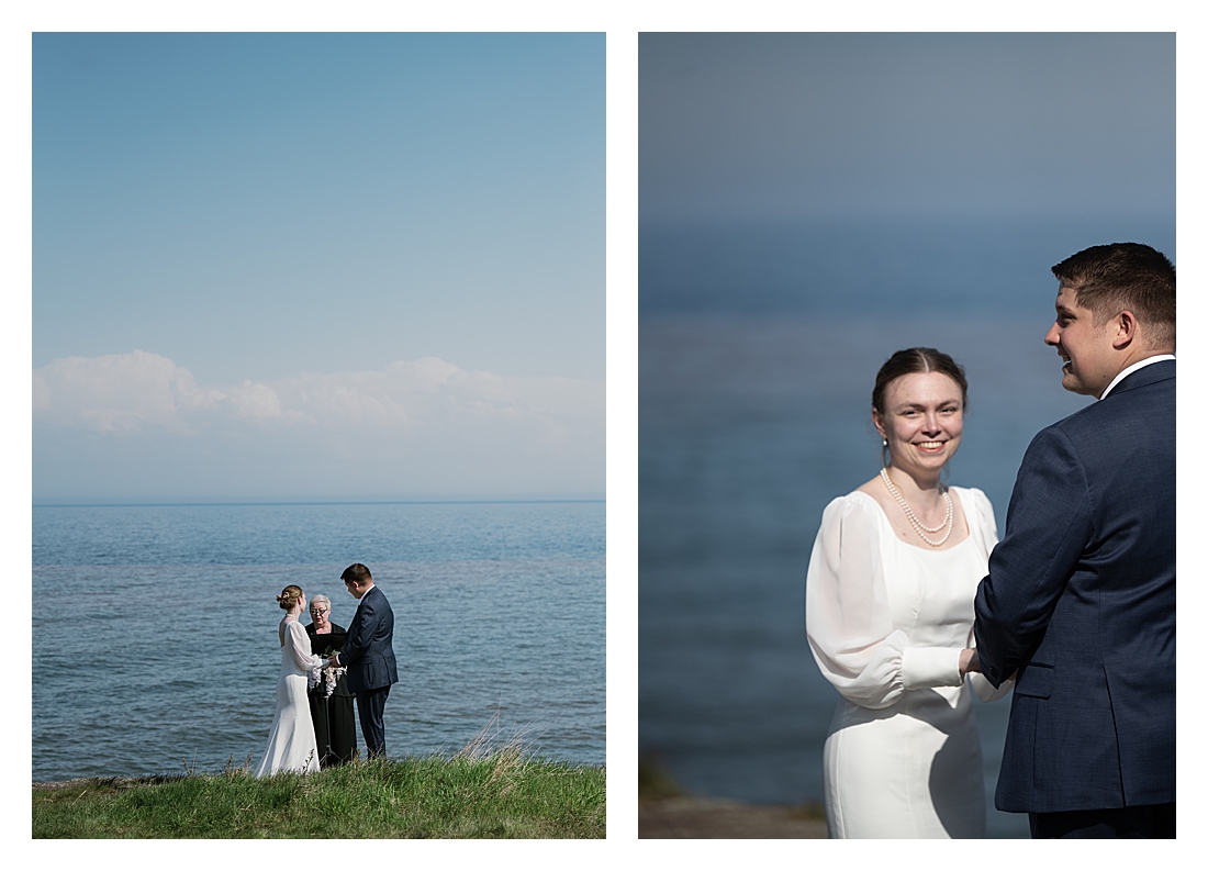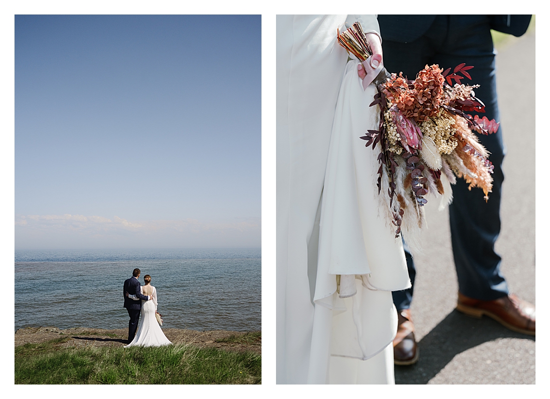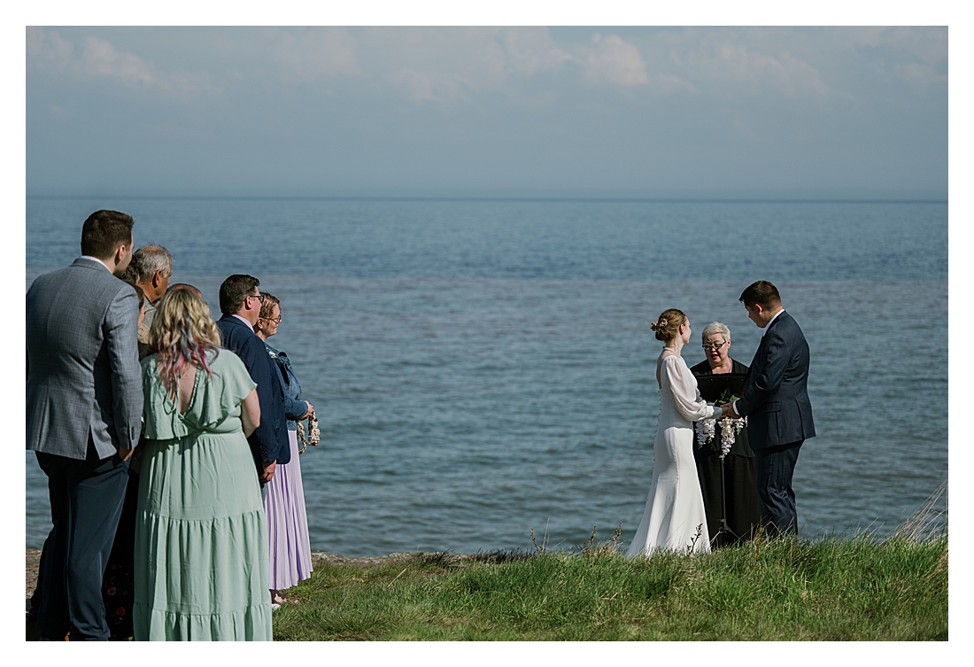 Faith and Bobby mutually decided a small intimate wedding at Gooseberry Falls State Park was the perfect for for them. They both love the scenic views of the North Shore along Lake Superior, and its proximity to their family members who could get there easily under 3 hours from the Cities. The two of them exchanged vows in a private area on the cliffs surrounded by only their immediate family members and best friends who served as witnesses. It was a couple hours from the time they shared their first look to the final photo, and it served for the perfect amount of time to accomplish their ultimate goal of becoming husband and wife, while also being present and truly connecting with each other and their guests.