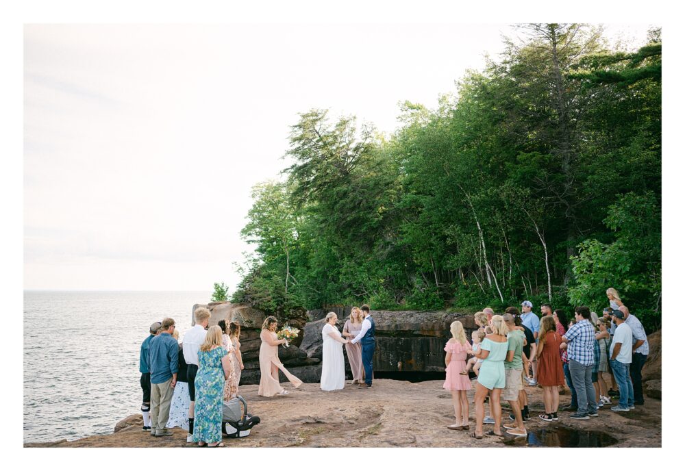 Taylor and Brandon originally planned a destination wedding at the Grand Tetons, but after a beautiful surprise pregnancy, they decided a small wedding on Madeline Island would be the perfect fit. They live in southern Wisconsin so it was a destination that was drivable for their family, but still felt exciting and adventurous. It was also fun because none of them had ever explored Madeline Island before!
