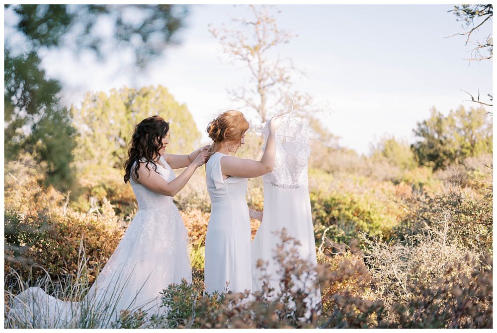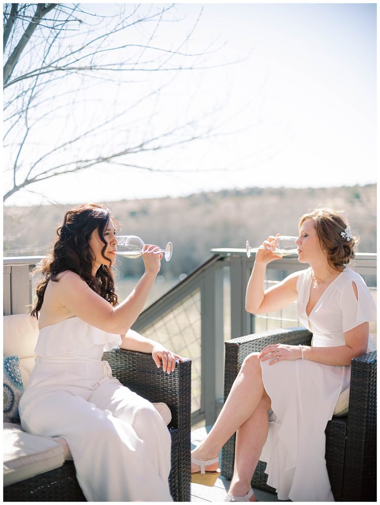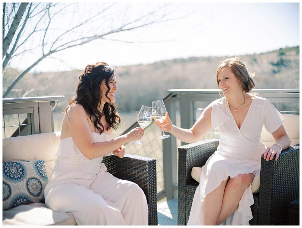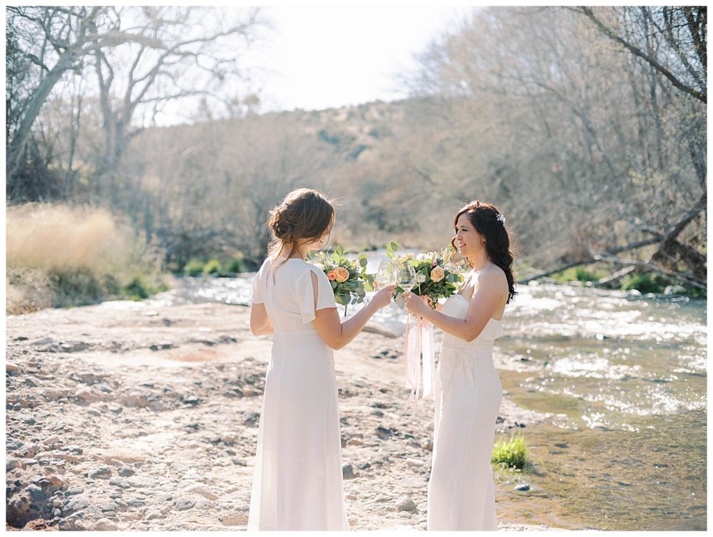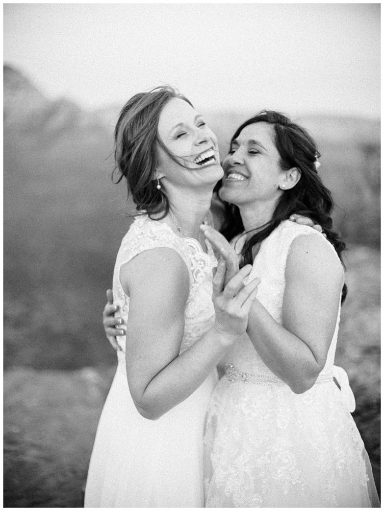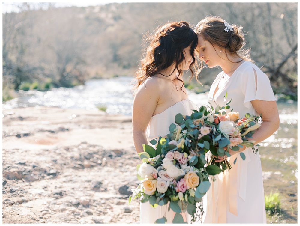 “Our day was perfect. We have done this very same hike several times in the past, but never could have imagined that one day we would do it in wedding dresses! Being just the two of us, this was a day that we could truly focus 100% of our energy on our love for each other. But the encouragement that we got from perfect strangers throughout the day was such a welcome surprise that filled us with pride and gratitude. In fact, one of the most touching moments of the day was when we went down to take photos by the creek at the winery and were greeted by two groups of cheering supporters. Their energy was contagious, and they made us feel like queens on the most important day of our lives.”