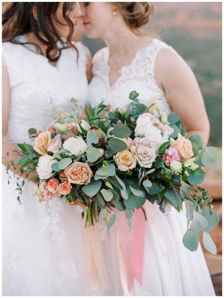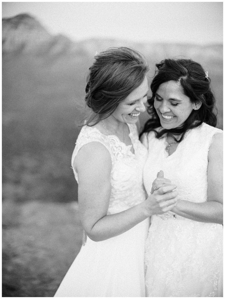 “The process of wedding planning as an LGBTQ couple (a relatively private couple at that!) was filled with moments that exposed our insecurities. My first question when I reached out to Trisha was “are you LGBTQ friendly?” I’ll never forget her response…“I’m sorry you even had to ask.” This made us feel safe and understood. We were in good hands. Wedding planning is very personal, and we needed to prepare ourselves for the vulnerability we would feel as we embarked on this journey. From getting the marriage license, to wedding dress shopping for two brides, to sharing an intimate moment on top of a mountain with onlookers passing by. This process challenged us, but it also opened our eyes. It opened our eyes to the good in this world and reminded us to assume the best in people. We were embraced, loved, and supported in every step along the way. Now wife and wife, we walk forward stronger, more confident, and so proud to represent the LGBTQ community.”