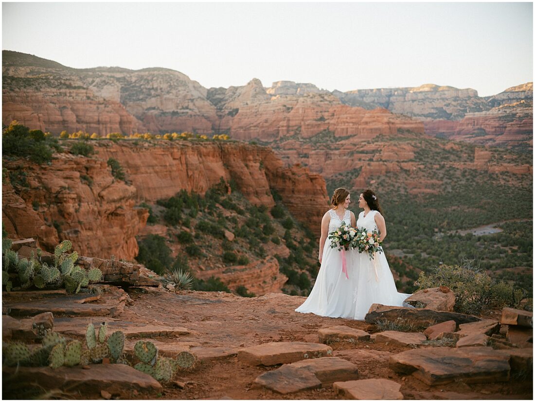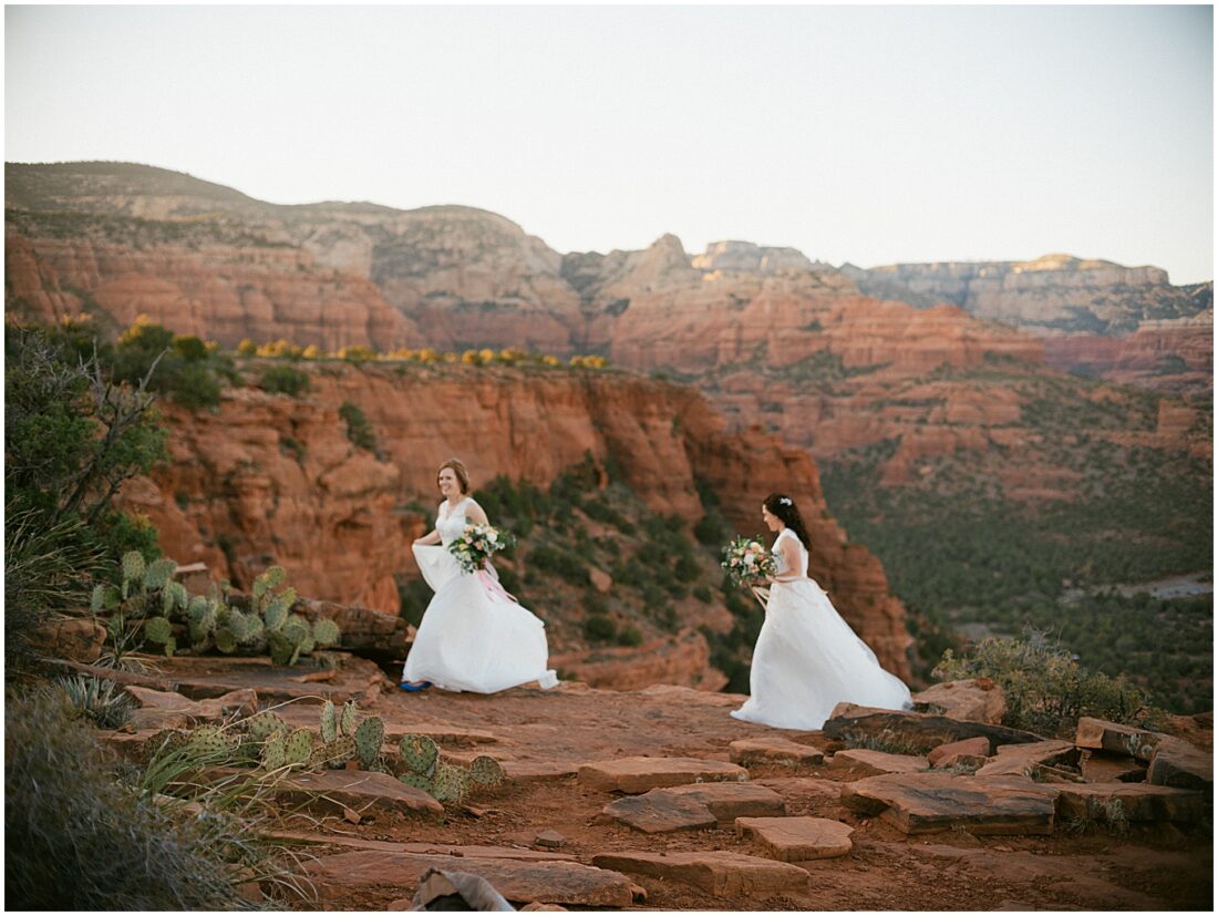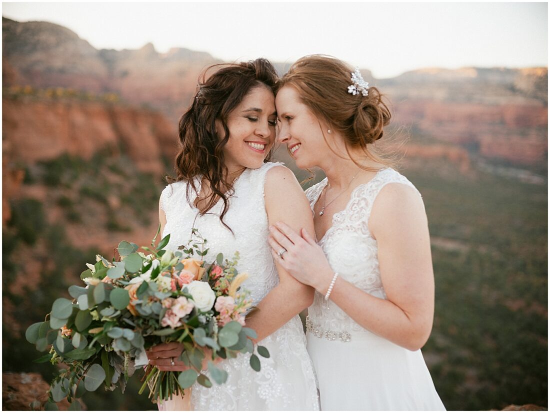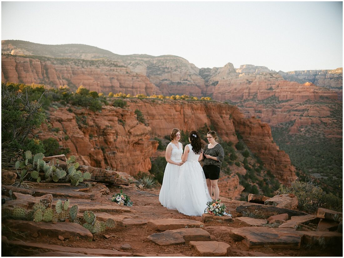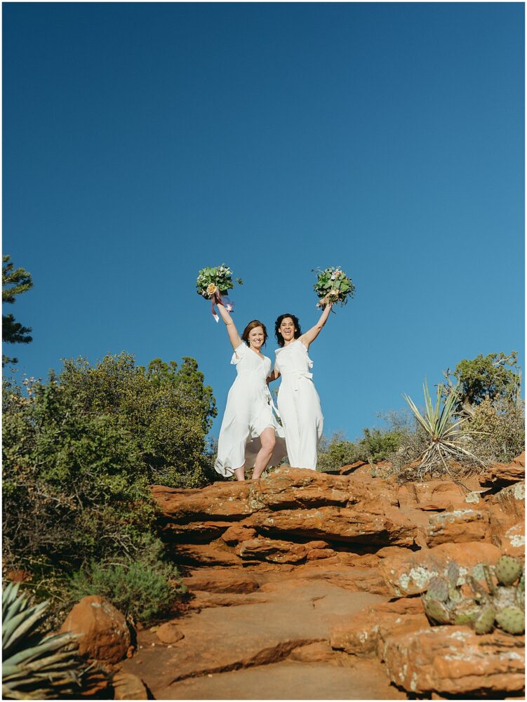 Stephanie and Stephanie (yes you read that right;) have been on a whirlwind adventure since they met 8 years ago. Being a same-sex couple from a traditional Midwest State, Wisconsin, made wedding planning seem a bit overwhelming. Their number one goal was to find an LGBTQ friendly wedding photographer that would make them feel confident and comfortable. They also wanted to honor their matrimony with a fun, unforgettable adventure, which led them to Sedona, Arizona. And to lucky me!! I am a Minnesota based Elopement Planner and Photographer with an all-inclusive Sedona Elopement Package because I love it there in the Winter and Spring!!