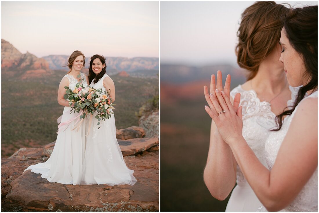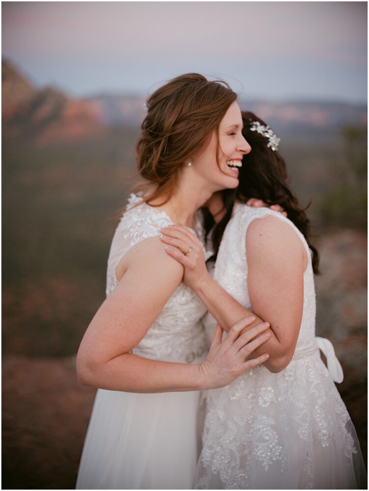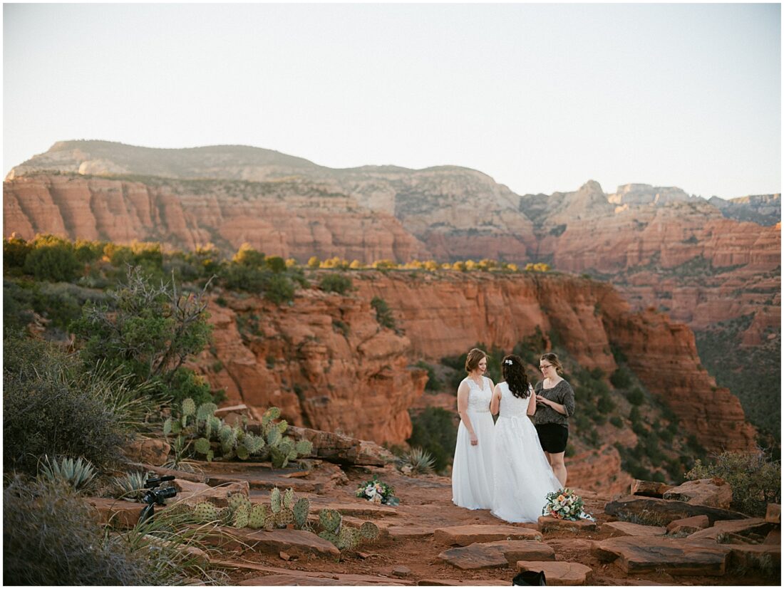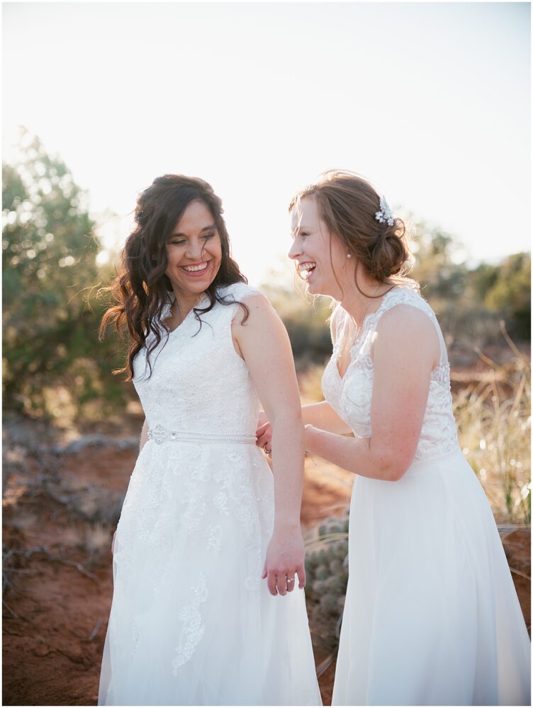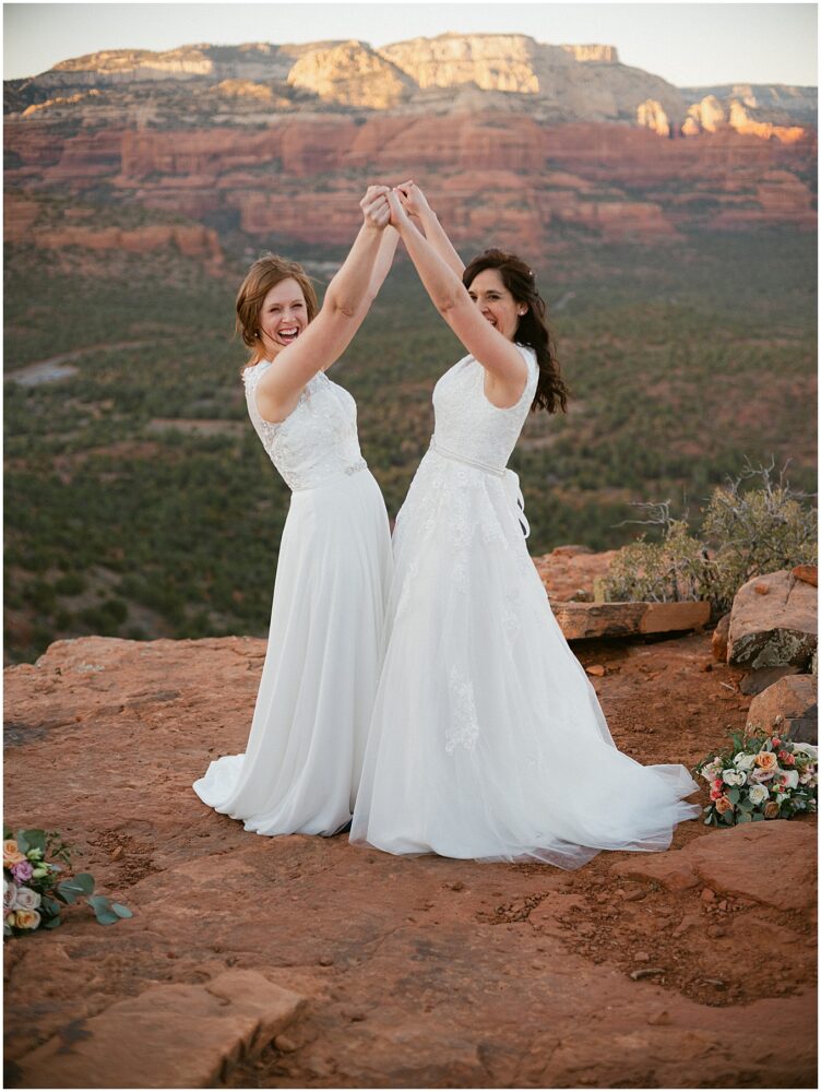 Stephanie and Stephanie (yes you read that right;) have been on a whirlwind adventure since they met 8 years ago. Being a same-sex couple from a traditional Midwest State, Wisconsin, made wedding planning seem a bit overwhelming. Their number one goal was to find an LGBTQ friendly wedding photographer that would make them feel confident and comfortable. They also wanted to honor their matrimony with a fun, unforgettable adventure, which led them to Sedona, Arizona. And to lucky me!! I am a Minnesota based Elopement Planner and Photographer with an all-inclusive Sedona Elopement Package because I love it there in the Winter and Spring!!