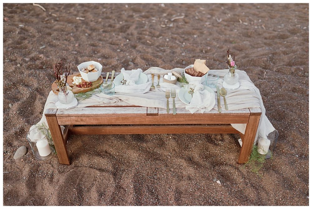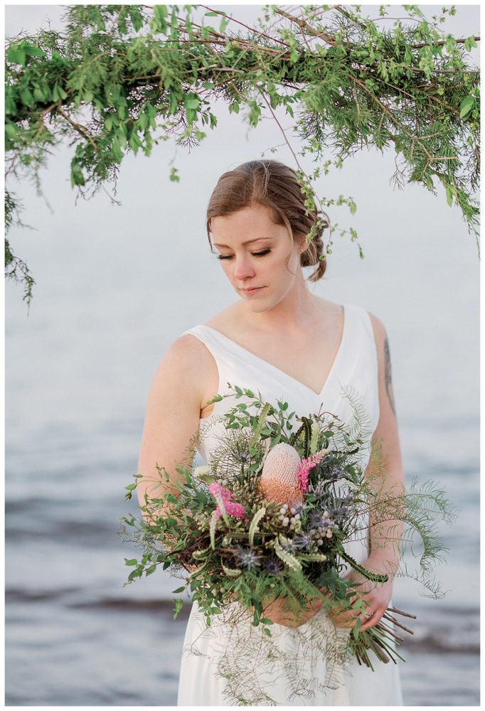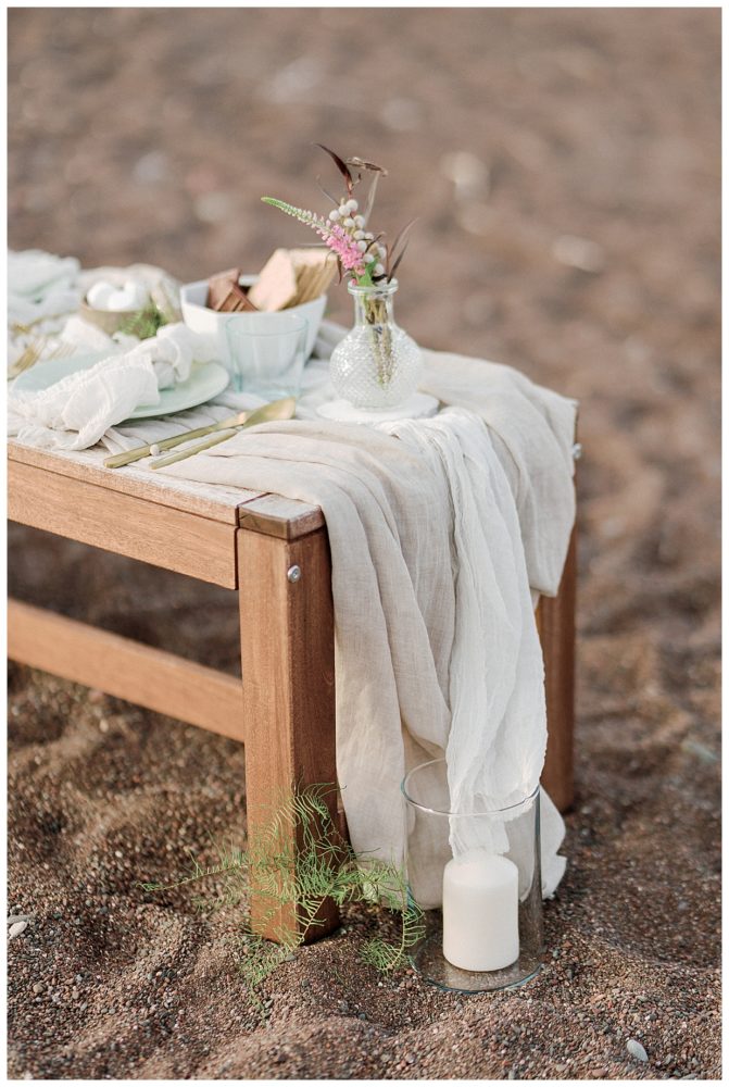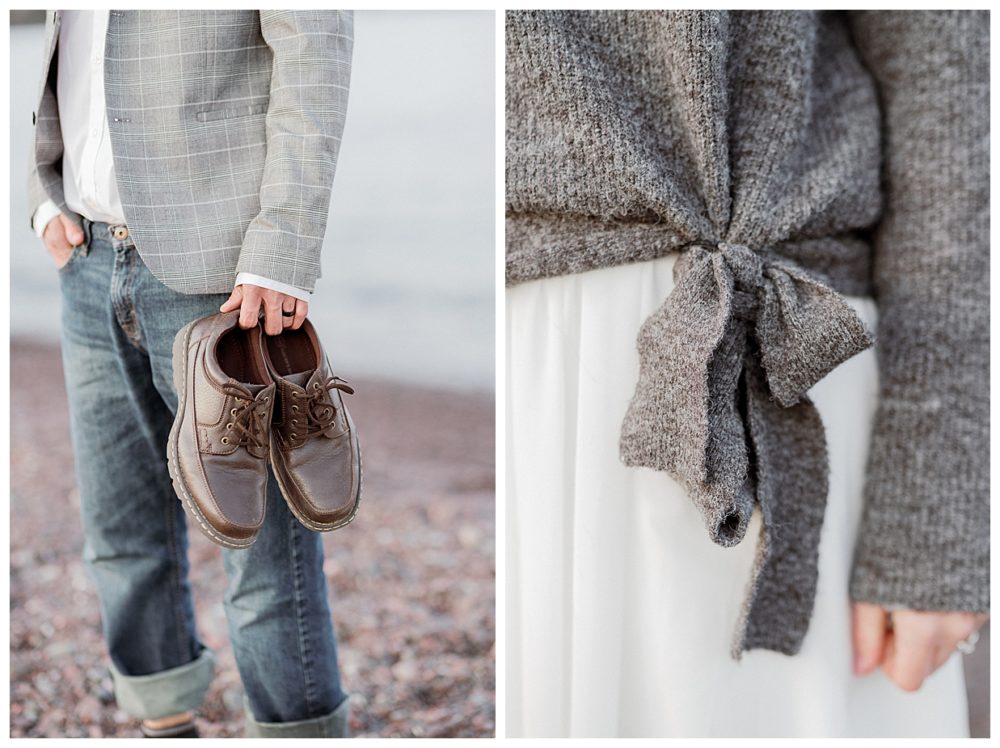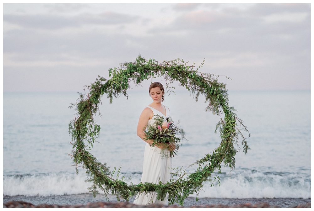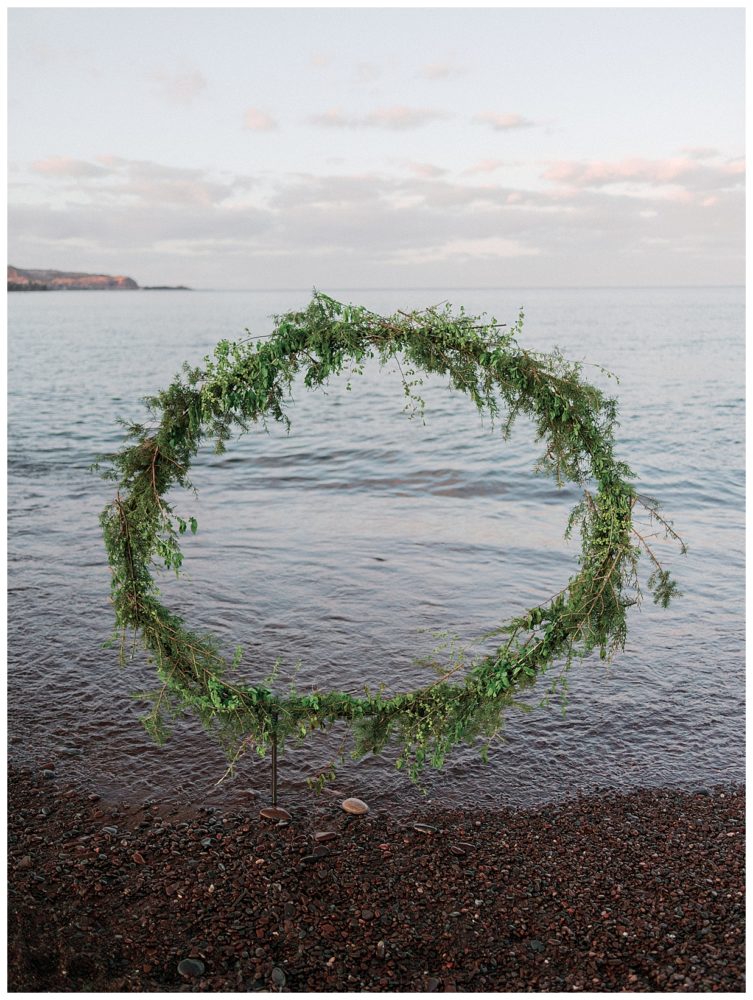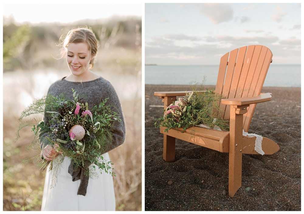 Samantha and Justin headed out to the beach just a couple hours before sunset. They enjoyed a nice walk with their high energy Bernese Mountain Dogs before enjoying a simple picnic overlooking Lake Superior. Thanks to Project Celebration, we had some fun in the water next to a beautiful floral arch. It was a great opportunity to find out who was tougher being the water was just a couple weeks thawed after a long winter. Samantha won that contest…Justin was in just long enough for some laughs, a kiss, and a “toughen up” comment from his bride. Okay…to be fair, Samantha kept her waterproof boots on and Justin was barefoot:)